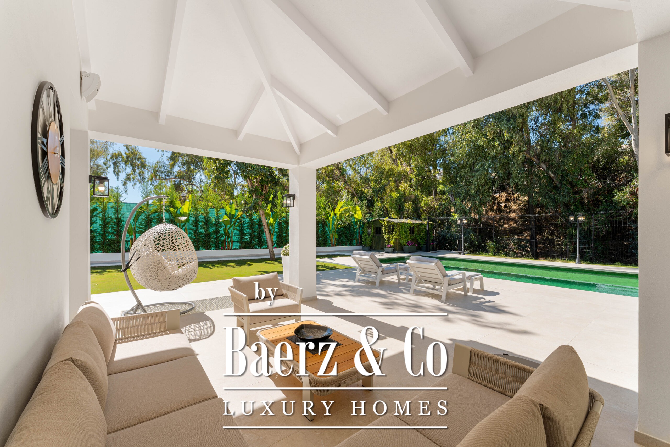 Villa Nueva Andalucía Marbella is een toonbeeld van verfijnd design en ingetogen luxe en biedt royale, eigentijdse leefruimtes in het serene hart van La Cerquilla. Deze in 2025 gerenoveerde villa met vijf slaapkamers combineert functioneel ontwerp met elegante, hoogwaardige interieurafwerking en weerspiegelt een moderne levensstijl waarin licht en comfort centraal staan. Gelegen in de prestigieuze Golfvallei van Marbella, bevindt het pand zich op korte afstand van Los Naranjos, Las Brisas en Aloha Golf Club en zijn uitstekende voorzieningen en gastronomische restaurants, waaronder de befaamde eetgelegenheden van Puente Romano, binnen enkele minuten bereikbaar.