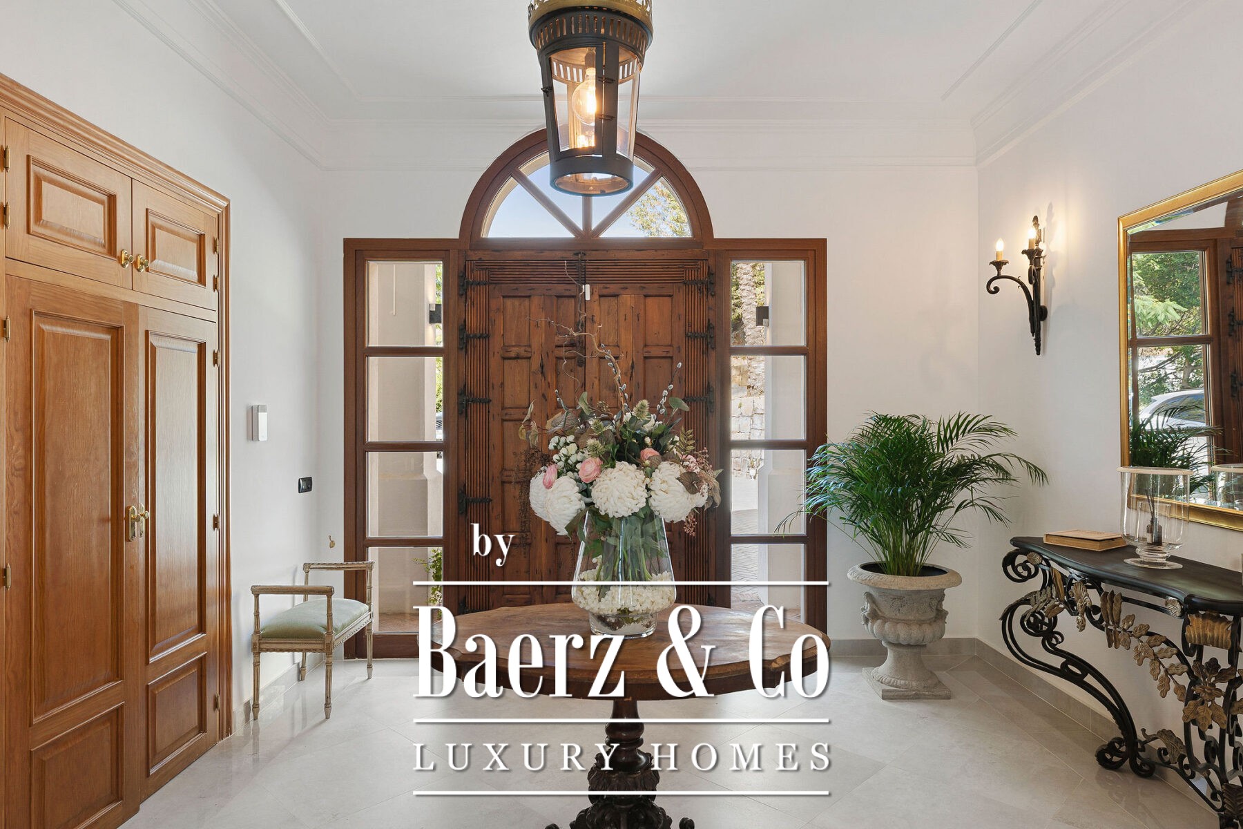 Buiten wordt de entree gemarkeerd door vijfentwintig volwassen palmbomen, omringd door volgroeide mediterrane tuinen met jacaranda’s, sinaasappel- en citroenbomen. Het privézwembad is naadloos geïntegreerd en nodigt uit tot zowel ontspanning als spektakel. Residenten genieten van volledige beveiliging, alarmsystemen en permanente bewaking binnen het afgesloten domein. De nabijheid van golfbanen, de voorzieningen van Marbella en de stranden van de Costa del Sol zorgen voor een moeiteloze verbinding tussen privacy en levensstijl. Deze villa is een toevluchtsoord én een blijvende investering, waarbij El Madroñal absolute discretie en een subliem uitzicht biedt.