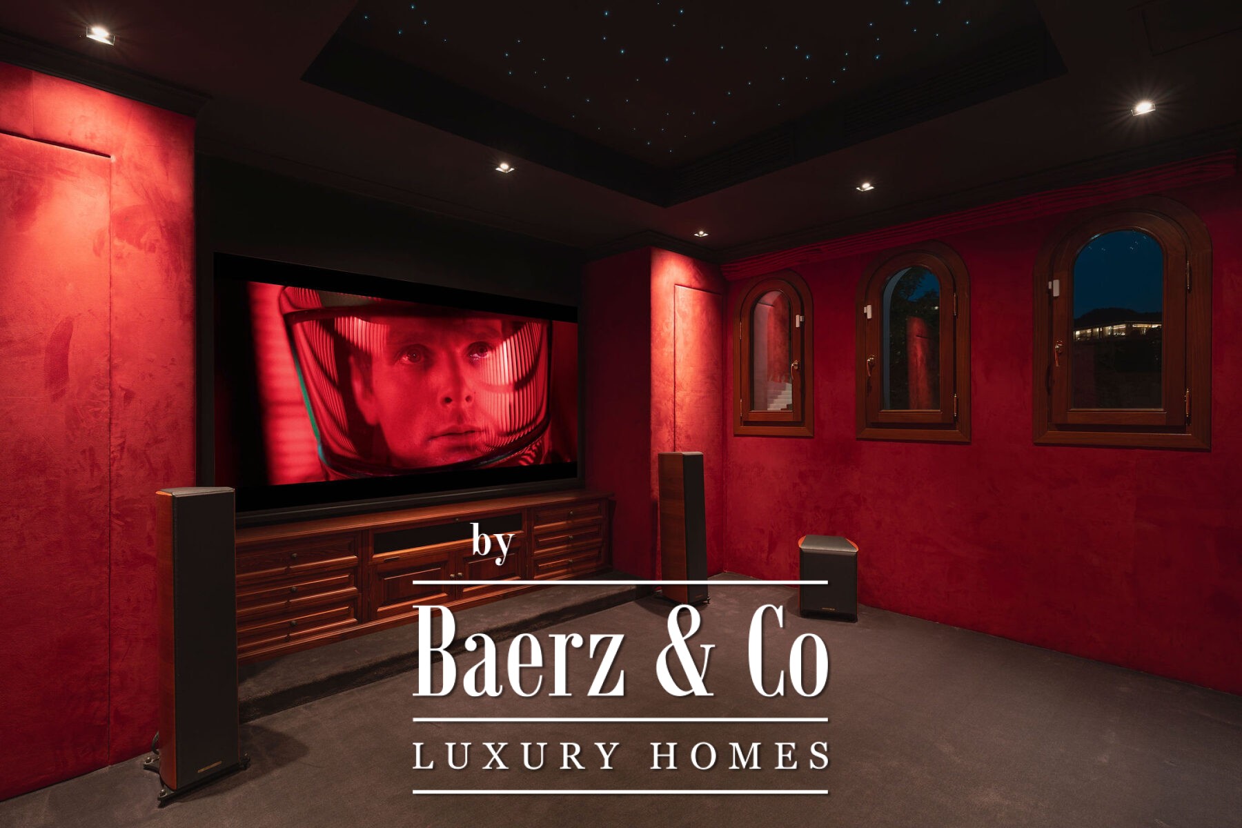 Het interieur ademt mediterrane elegantie, gekenmerkt door hoge plafonds, gracieuze bogen en open ruimtes die vloeiend overlopen van formeel naar informeel wonen. De vier slaapkamers en vier badkamers zijn zo gesitueerd dat privacy en comfort samengaan, terwijl de master suite beschikt over een inloopkast. Vloerverwarming, airconditioning voor zowel warm als koud, en een geïntegreerd surround sound systeem waarborgen gemoedsrust en welzijn. Daarnaast biedt de privé bioscoopruimte en de TV-lounge ultieme flexibiliteit voor ontspanning of gezelschap.