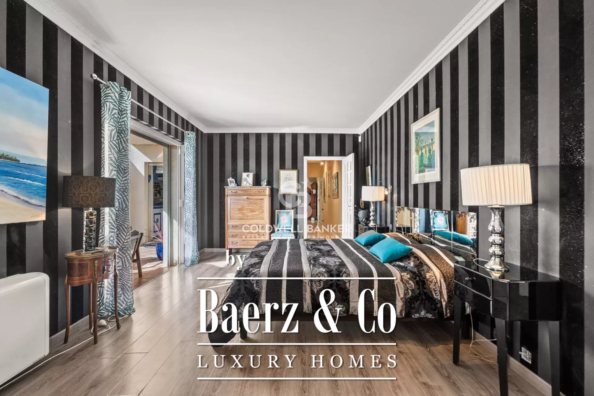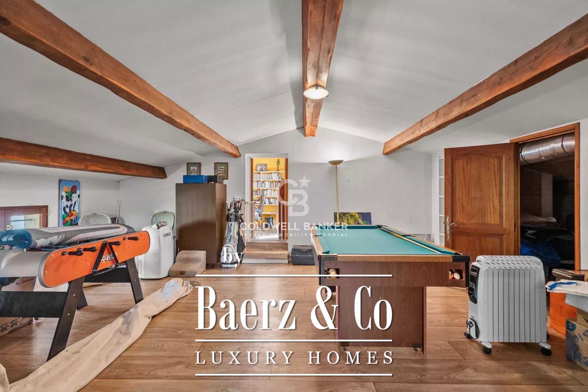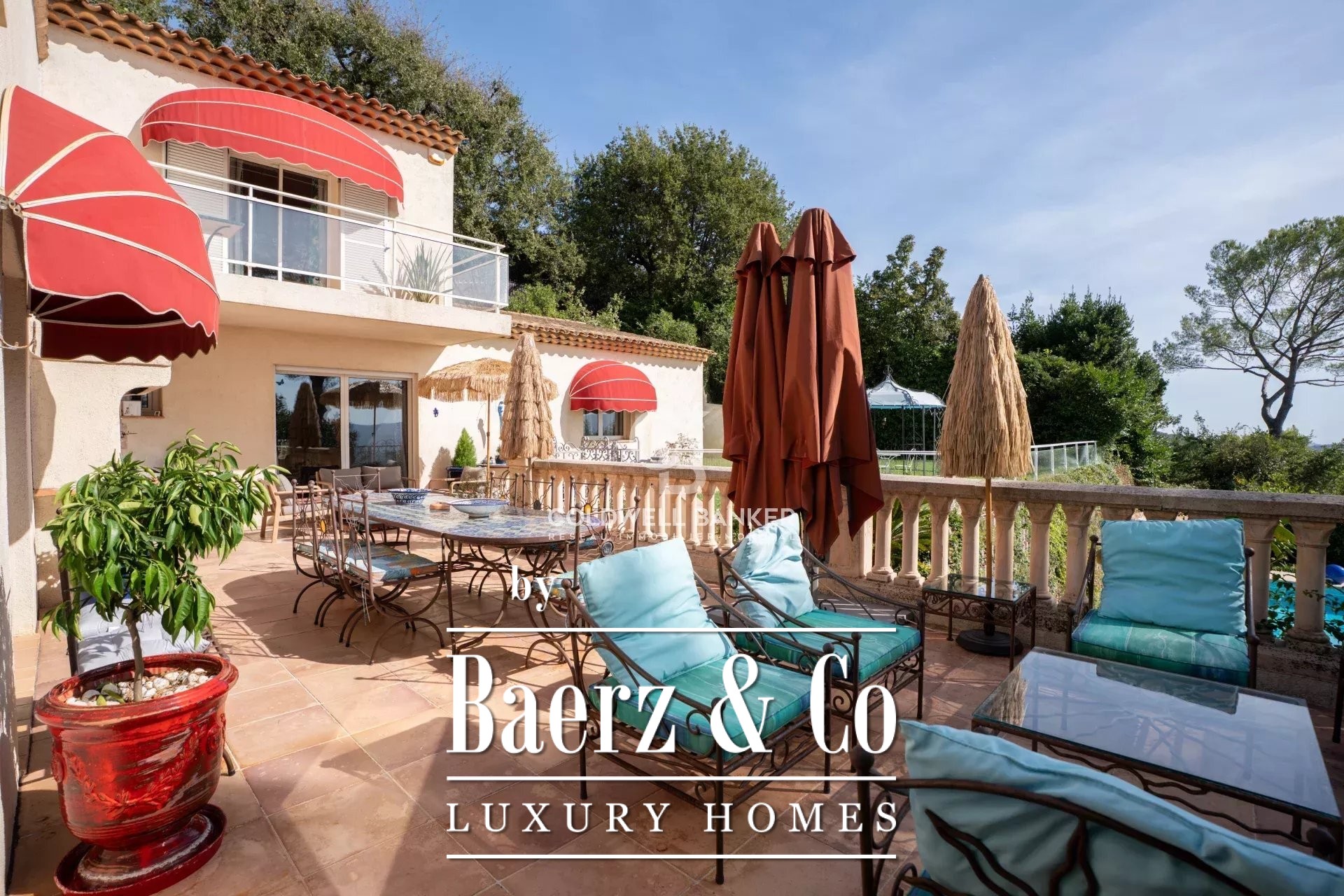 Brede terrassen vloeien over in de aangelegde tuin, die wordt geaccentueerd door een imposant zwembad. De villa van 370 m² is verder voorzien van airconditioning, een open haard, dubbele beglazing, een alarmsysteem en een elektrische poort voor optimale veiligheid, plus doordachte voorzieningen. Een carport voor vier auto’s en een afgesloten garage van 60 m², eenvoudig om te bouwen tot gasten- of beheerderswoning, zorgen voor extra autonomie. Deze luxe villa te koop in Mougins biedt een ingetogen toevluchtsoord met zeezicht en blijvende kwaliteit.