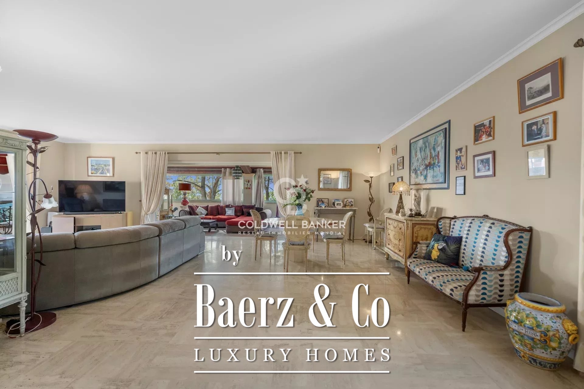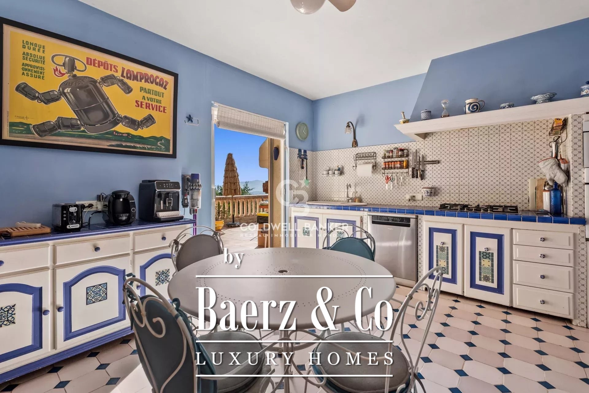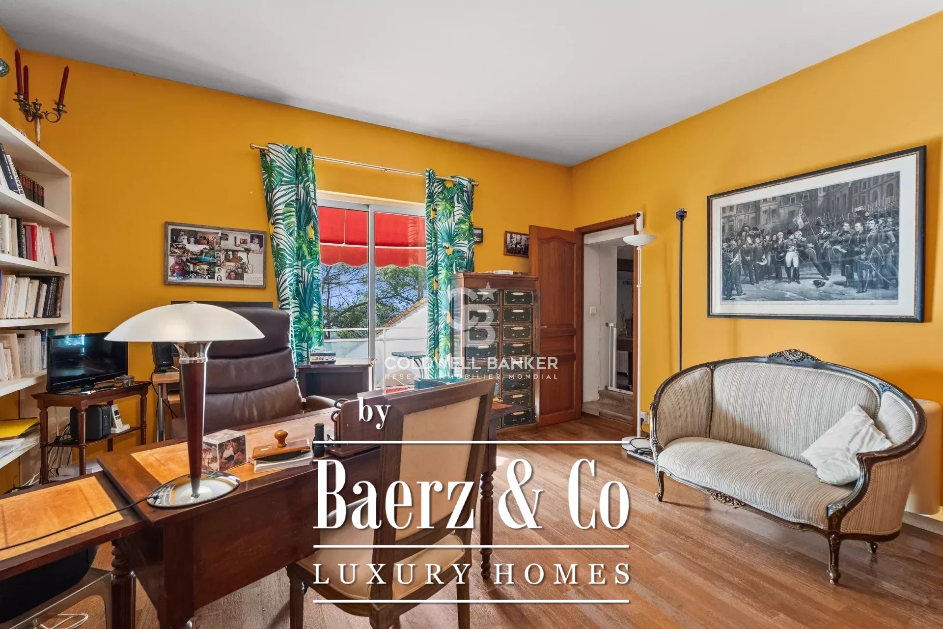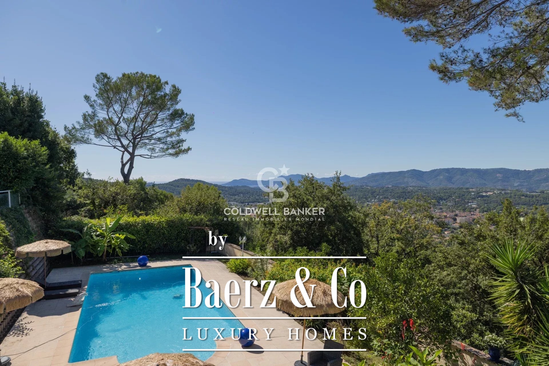 Brede terrassen vloeien over in de aangelegde tuin, die wordt geaccentueerd door een imposant zwembad. De villa van 370 m² is verder voorzien van airconditioning, een open haard, dubbele beglazing, een alarmsysteem en een elektrische poort voor optimale veiligheid, plus doordachte voorzieningen. Een carport voor vier auto’s en een afgesloten garage van 60 m², eenvoudig om te bouwen tot gasten- of beheerderswoning, zorgen voor extra autonomie. Deze luxe villa te koop in Mougins biedt een ingetogen toevluchtsoord met zeezicht en blijvende kwaliteit.