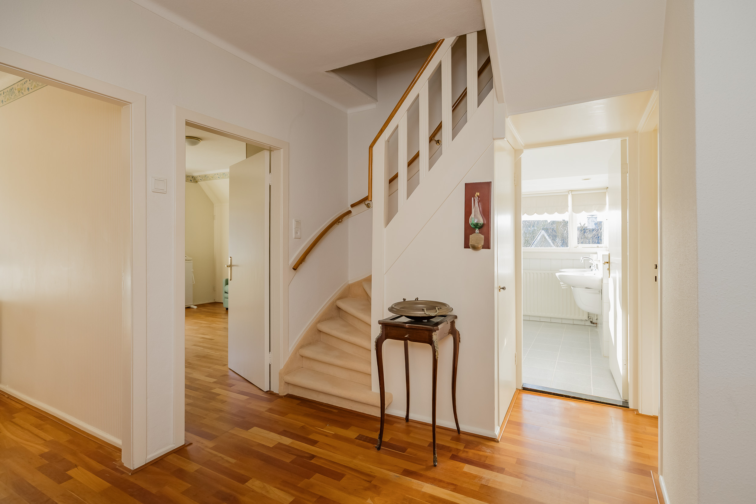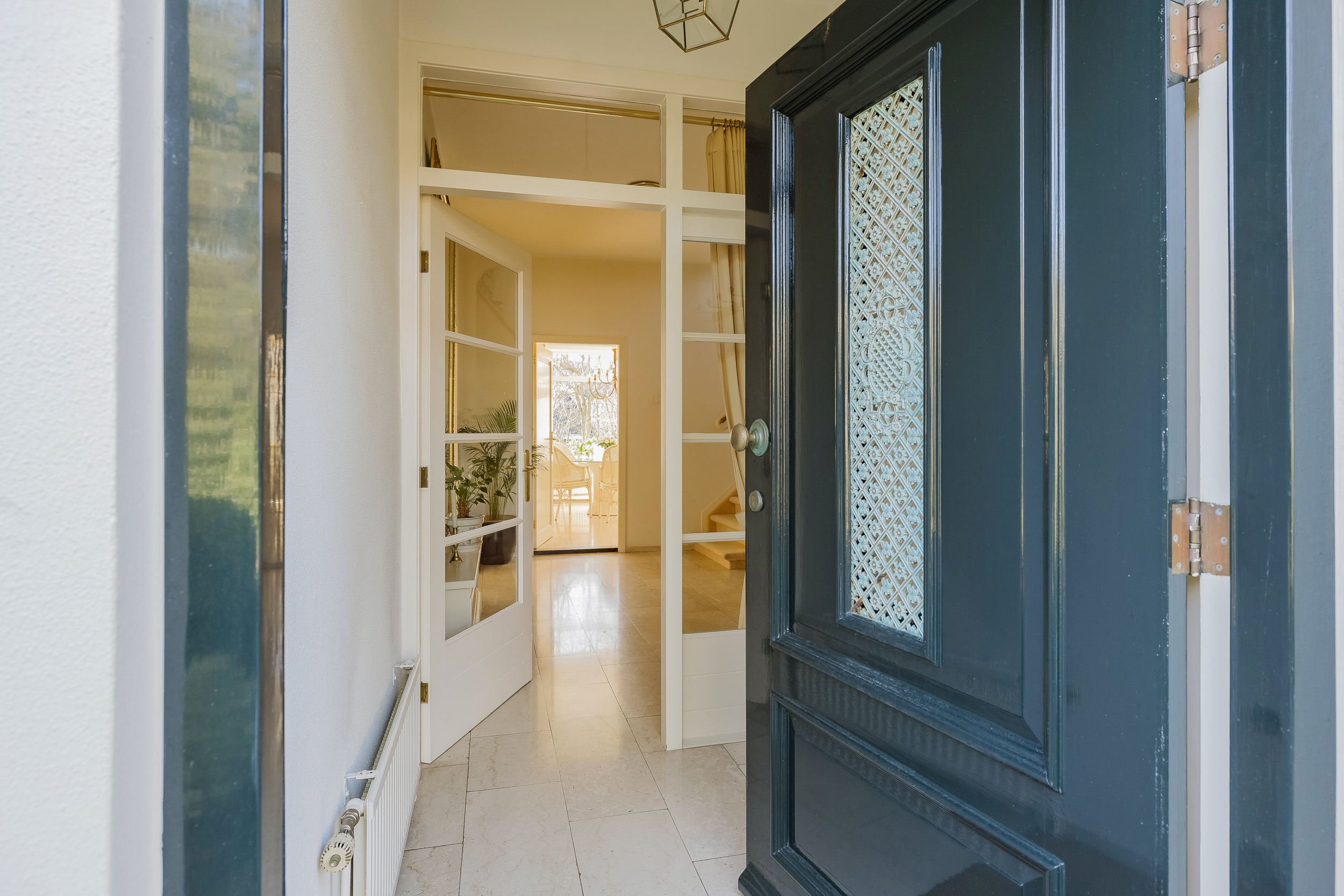 Entree met vestibule en ruime hal, van waaruit alle kamers toegankelijk zijn.