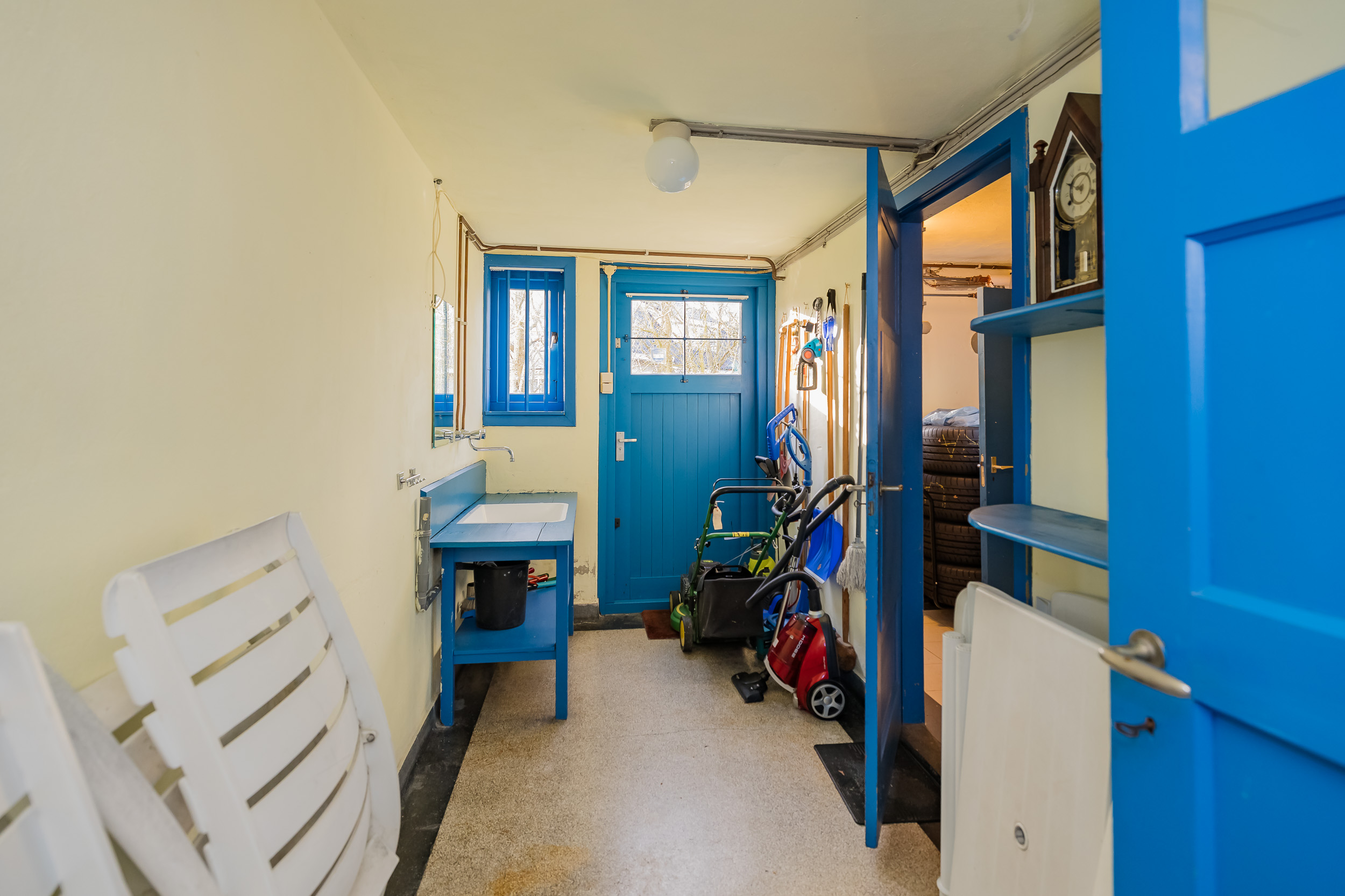 De woning is volledig onderkelderd. Hier bevinden zich de sauna met danarium, de karaktervolle wijnkelder opgebouwd met lavasteen, royale bergruimten, de garage met openslaande deuren en een deur met directe toegang tot de tuin.