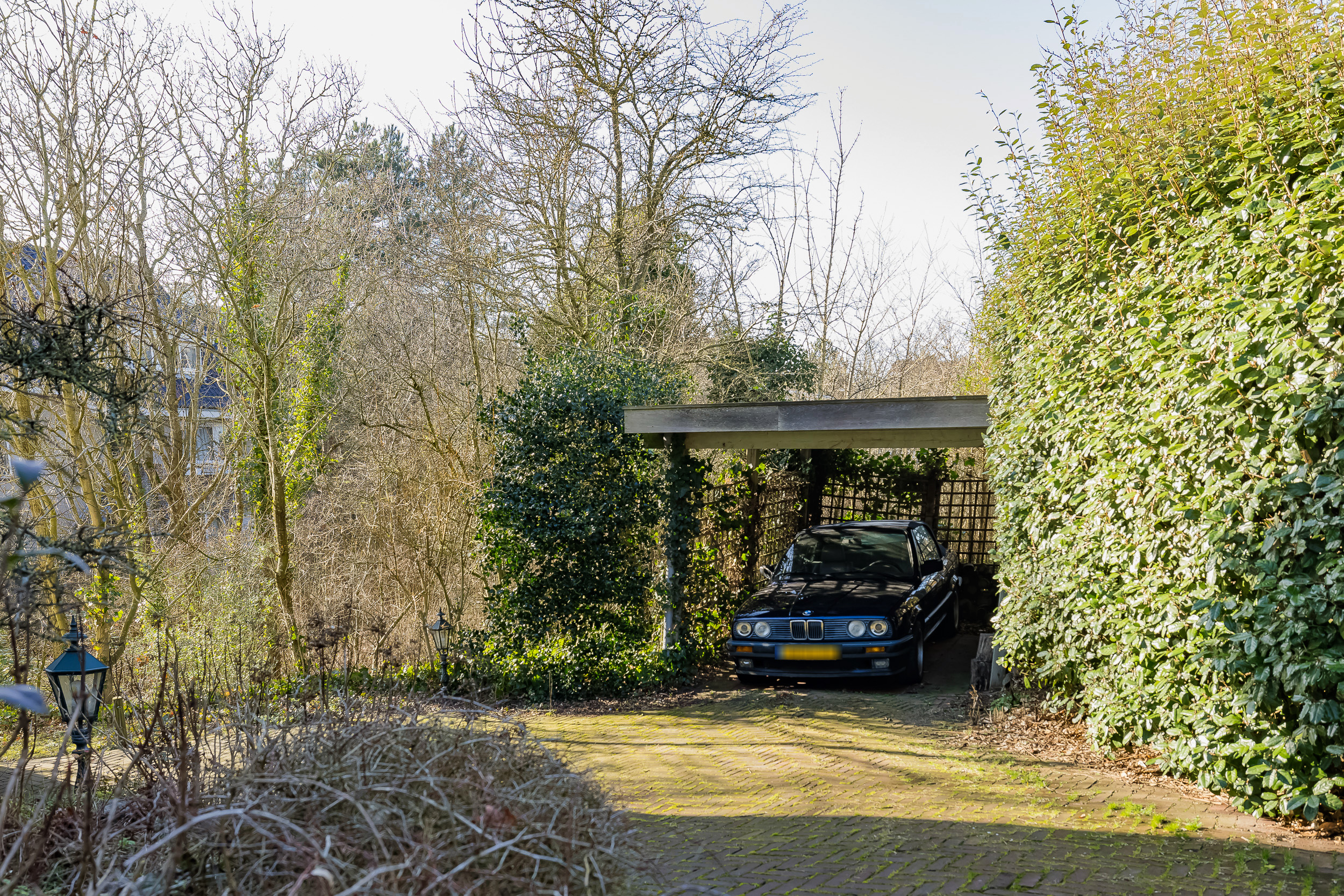 Parkeren is hier geen enkel probleem. Er is volop parkeergelegenheid op eigen terrein; op de oprit, op het pad naar de garage, in de garage en onder de carport. Bovendien op een eigen parkeerplaats naast het toegangshek.