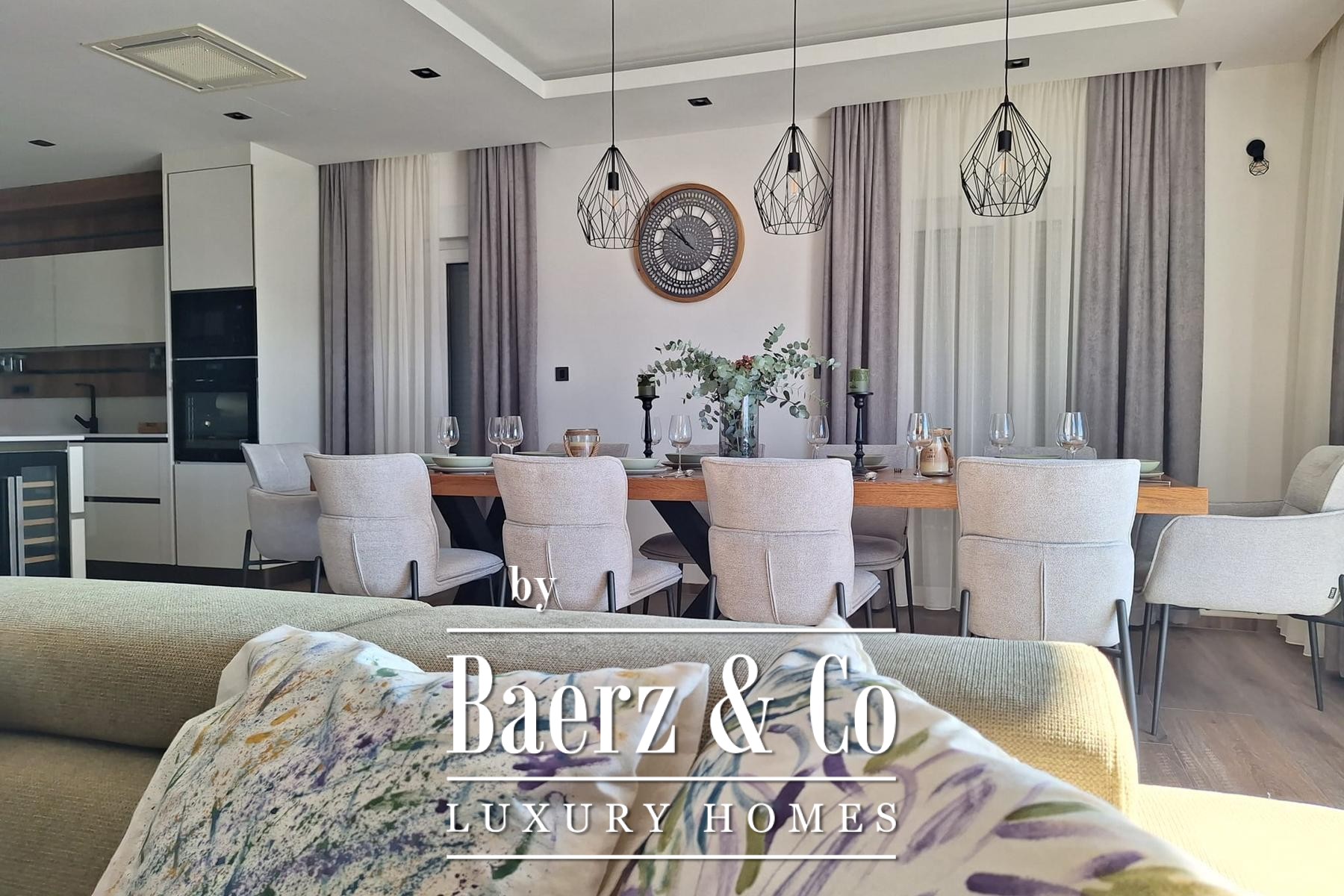 space • Laundry room Ground Floor • Spacious living room with open-plan kitchen and dining area • Bathroom • Guest toilet • Bedroom with en-suite bathroom First Floor • Four bedrooms • Each with private en-suite bathroom The exterior offers a generous terrace with a swimming pool, perfect for relaxing and enjoying the spectacular sea view. For more information or to arrange a viewing, please feel free to contact us.