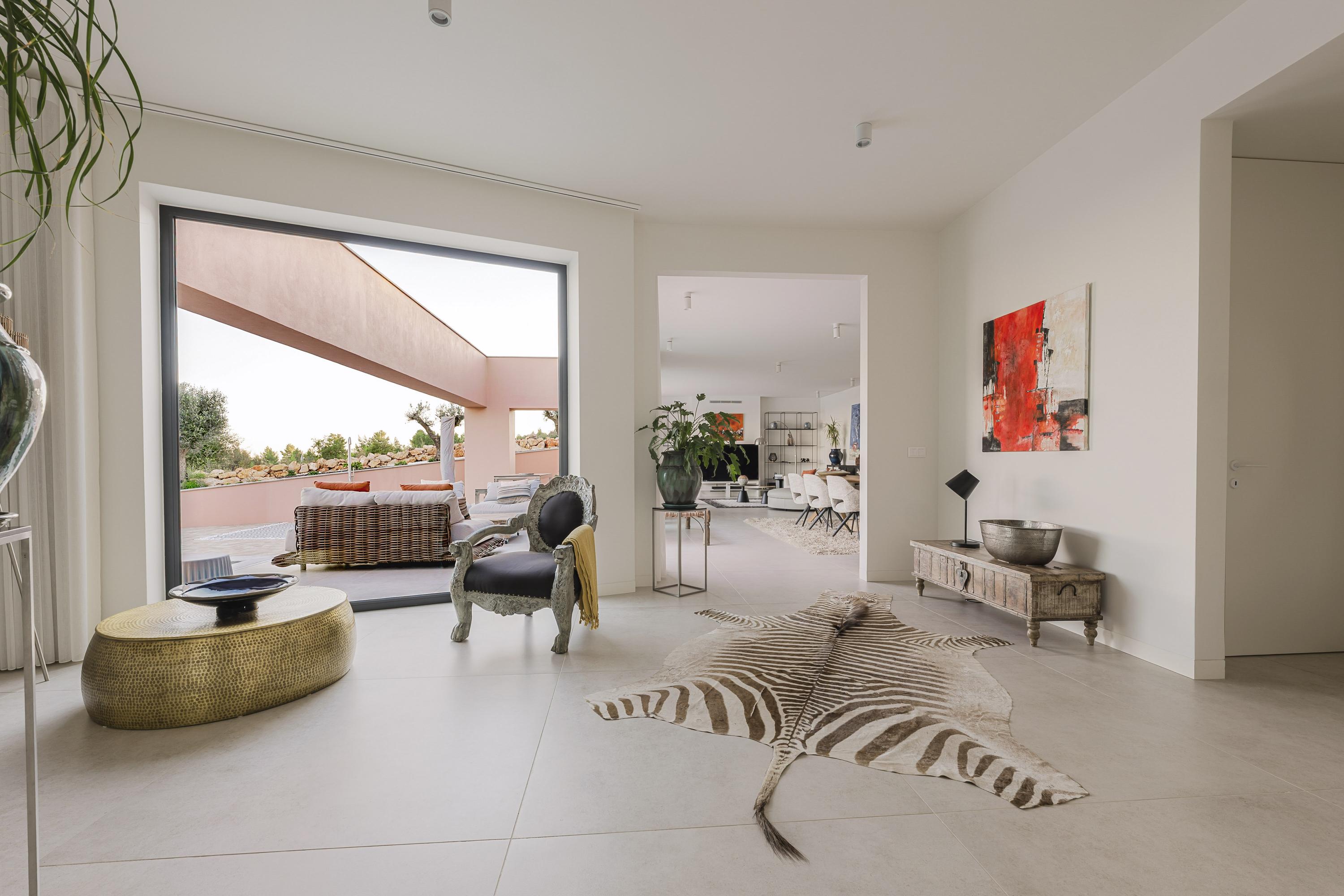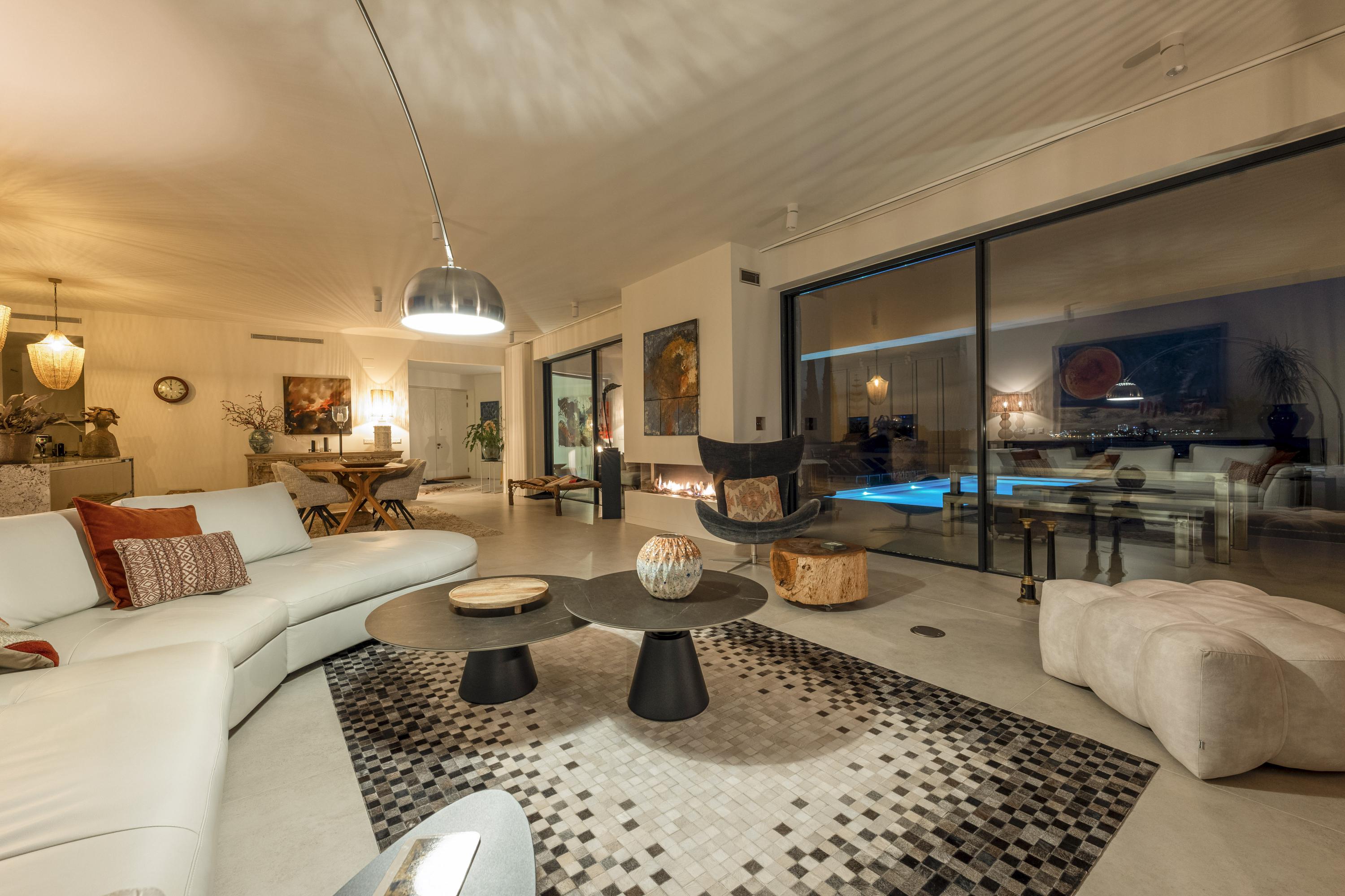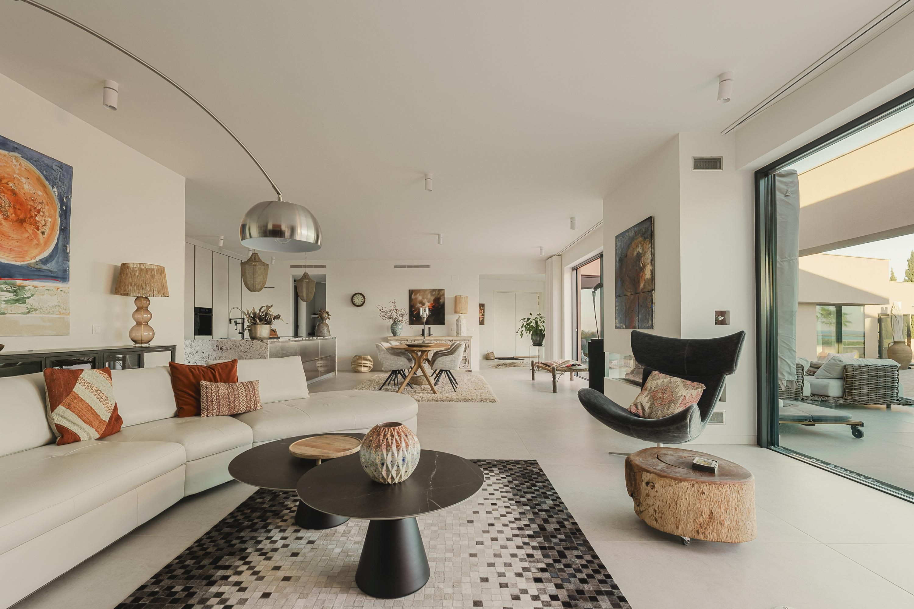 Licht, uitnodigend en met weids uitzicht over de Atlantische Oceaan en Palmares Golf. De naadloze overgang naar terras en zwembad creëert een moeiteloze binnen-buitenbeleving. Het voorste terras kan optioneel worden afgesloten met glas, waardoor een elegante all-season lounge of eetruimte ontstaat zonder het uitzicht te verliezen.