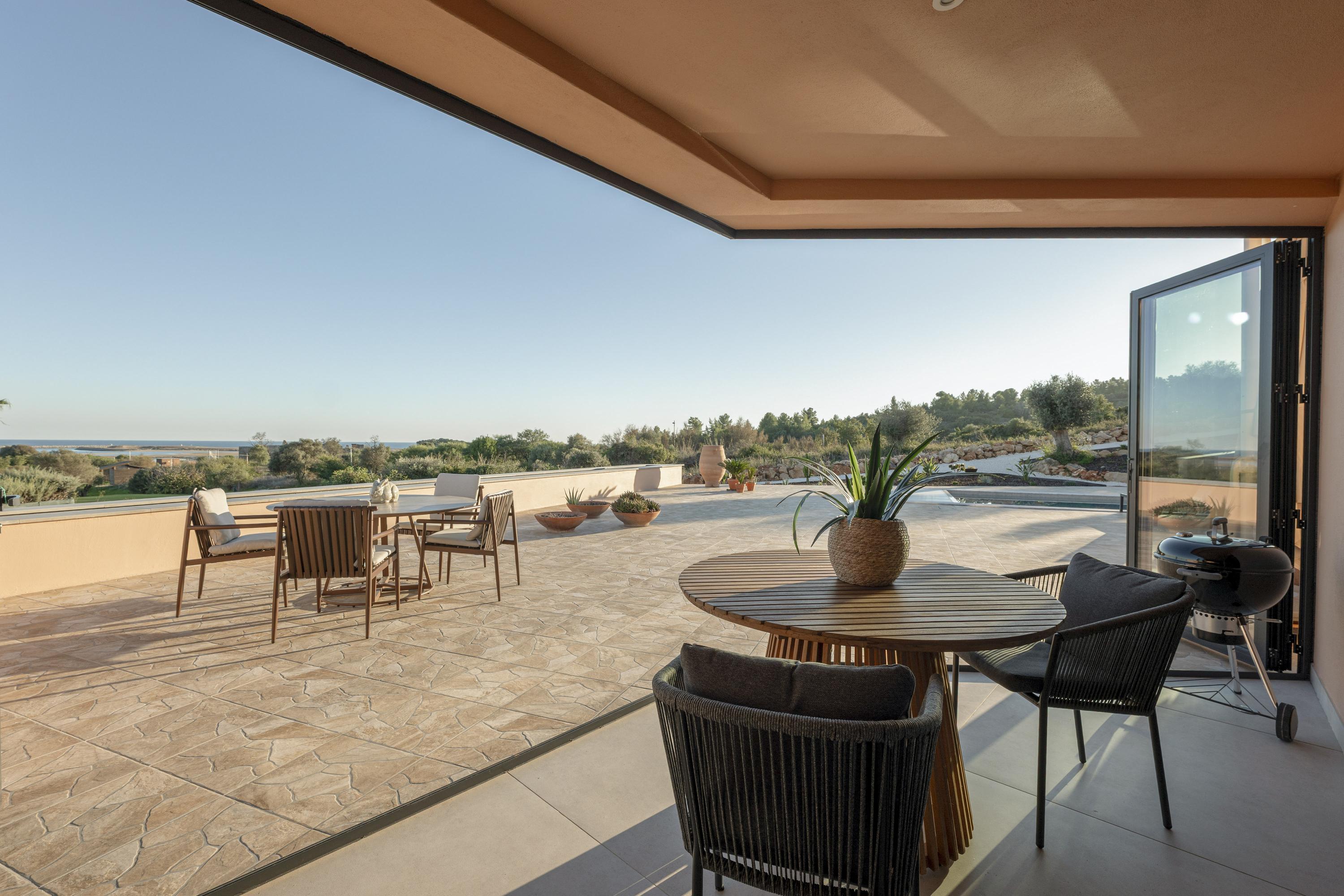 Licht, uitnodigend en met weids uitzicht over de Atlantische Oceaan en Palmares Golf. De naadloze overgang naar terras en zwembad creëert een moeiteloze binnen-buitenbeleving. Het voorste terras kan optioneel worden afgesloten met glas, waardoor een elegante all-season lounge of eetruimte ontstaat zonder het uitzicht te verliezen.
