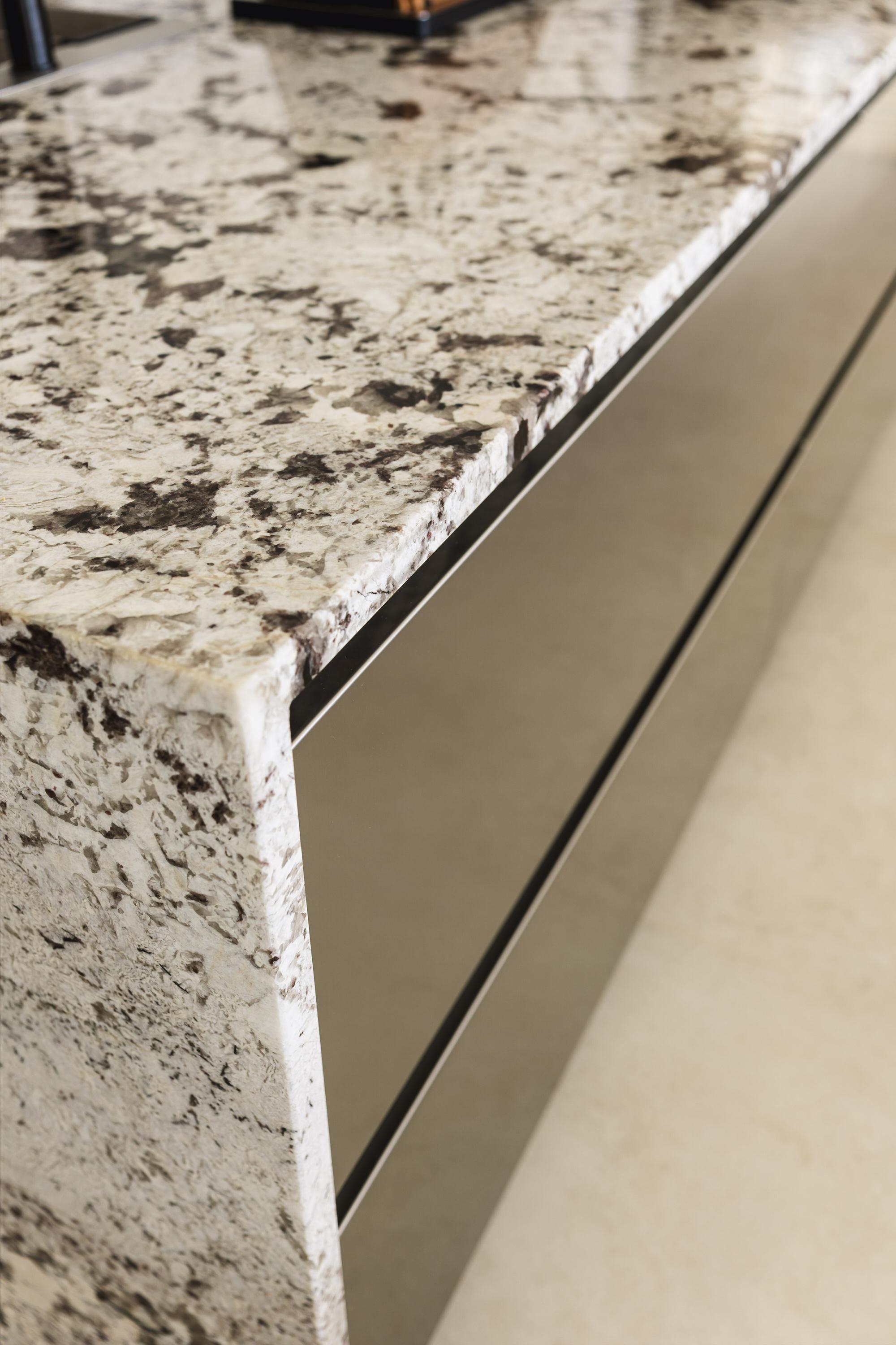 De hoofdkeuken vormt het warme en uitnodigende centrum van de woning — een ware droom voor kookliefhebbers. Italiaans design van het hoogste niveau, met natuurstenen werkbladen en een sculpturaal kookeiland als visueel en functioneel middelpunt.