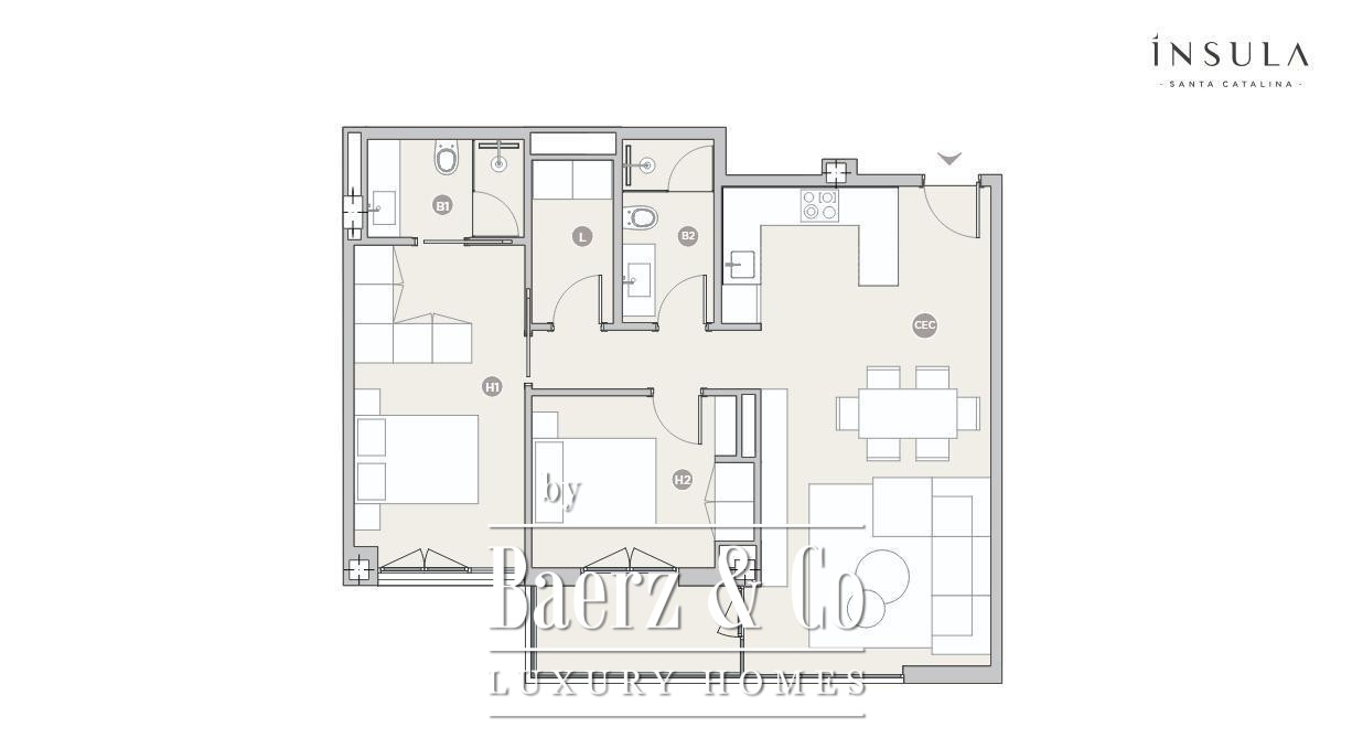Appartement Palma in Santa Catalina biedt een ingetogen toevluchtsoord in een van de meest gewilde stadswijken. Deze nieuw gerealiseerde residentie, voltooid in 2025, ademt stille klasse en combineert hoogwaardige materialen met verfijnde architectuur. Het appartement beslaat 111 m² en beschikt over twee stijlvolle slaapkamers en twee badkamers, ontworpen voor optimale privacy en comfort. De royale living loopt naadloos over in een terras dat direct grenst aan de keuken en lounge; een ideale plek om te genieten van het mediterrane licht dat het dagelijkse leven in de wijk kenmerkt.