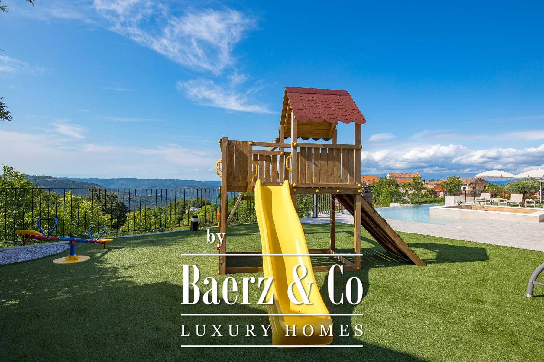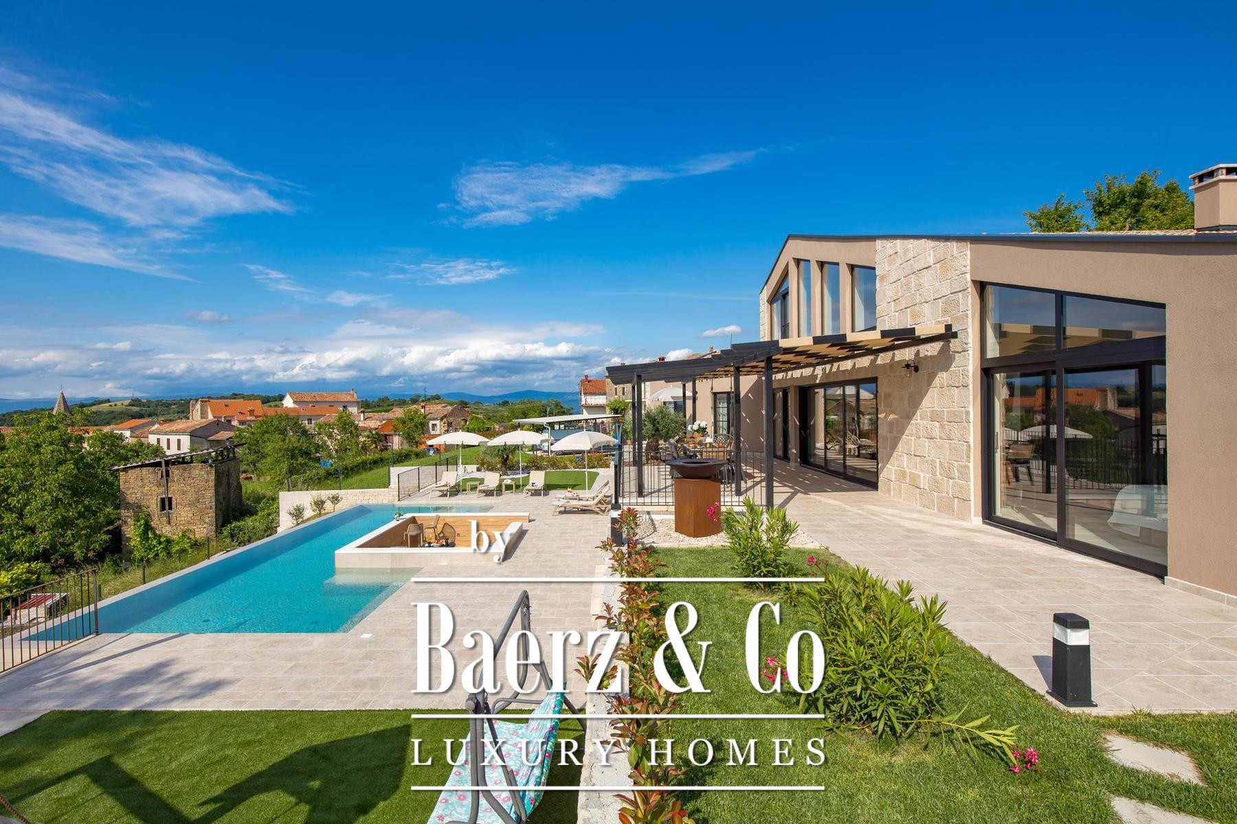 Buiten vindt u een driezijdig infinity zwembad, ontspanningsruimtes en zorgvuldig aangelegde tuin voor maximale privacy en rust. Vloerverwarming, acht airconditioningunits en een houtgestookte open haard zorgen voor comfort in elk seizoen. Overdekte parkeerplaatsen voor drie auto's maken het geheel compleet. Deze villa verenigt luxe, authenticiteit en de stille grandeur van Istrië. Deze luxe villa te koop in Pazin Okolica is uitermate geschikt als privéterugtrekking of voor een discrete investering.