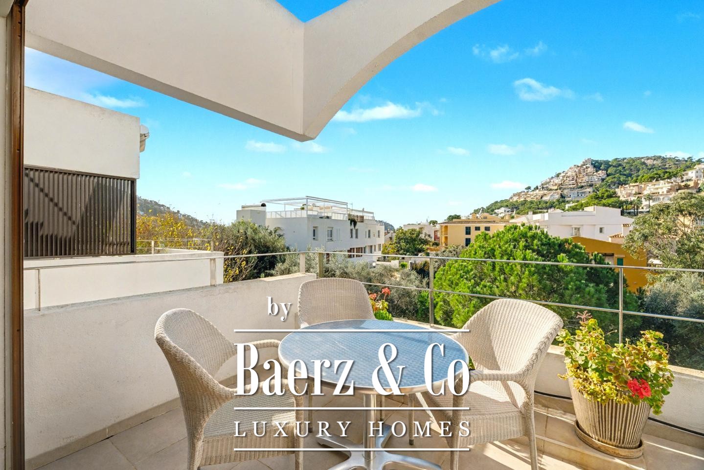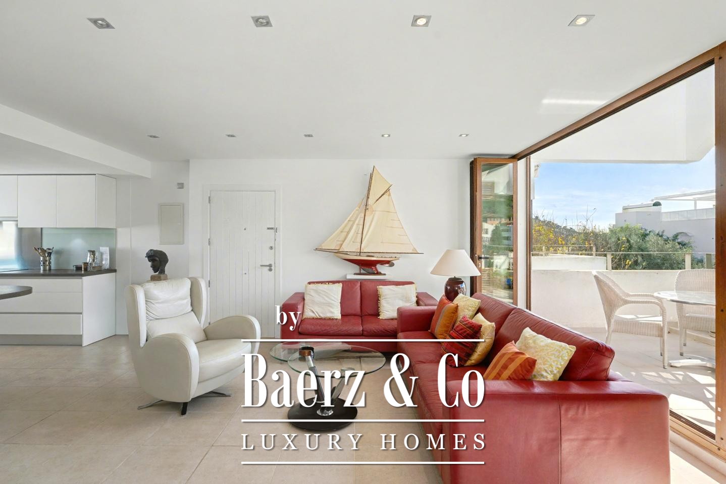 Dit penthouse in Port d'Andratx biedt een doordachte samensmelting van mediterrane rust en hedendaagse helderheid, gelegen in een rustige internationale enclave in het zuidwesten van Mallorca. De woning omvat 106 m², met twee tweepersoonsslaapkamers en twee badkamers, waarvan één en suite, allen vernieuwd in een moderne, ingetogen luxe stijl. De open leefruimte baadt in natuurlijk licht en loopt naadloos door naar twee terrassen—één intiem, de ander royaal van opzet voor dineren of ontspannen in de open lucht met uitzicht op de haven.