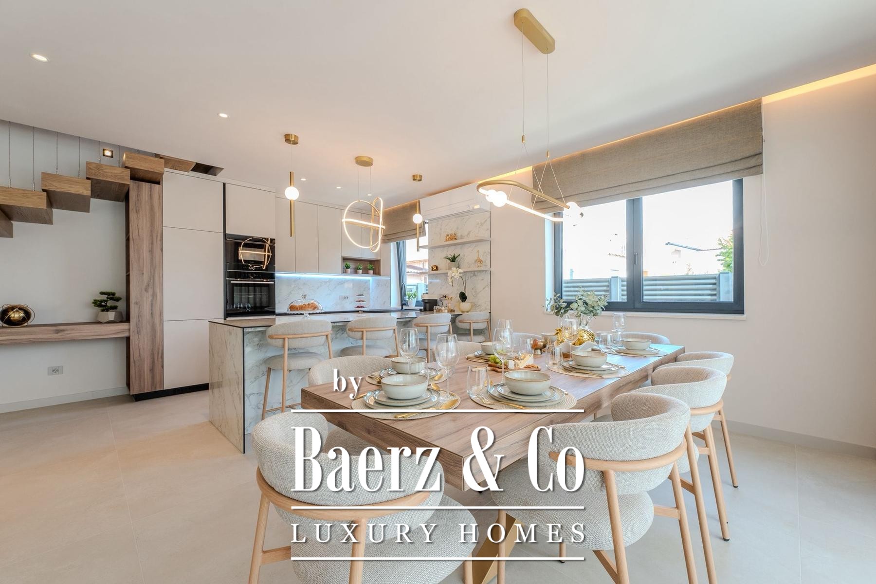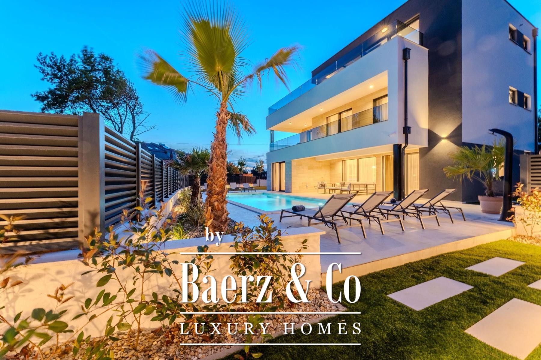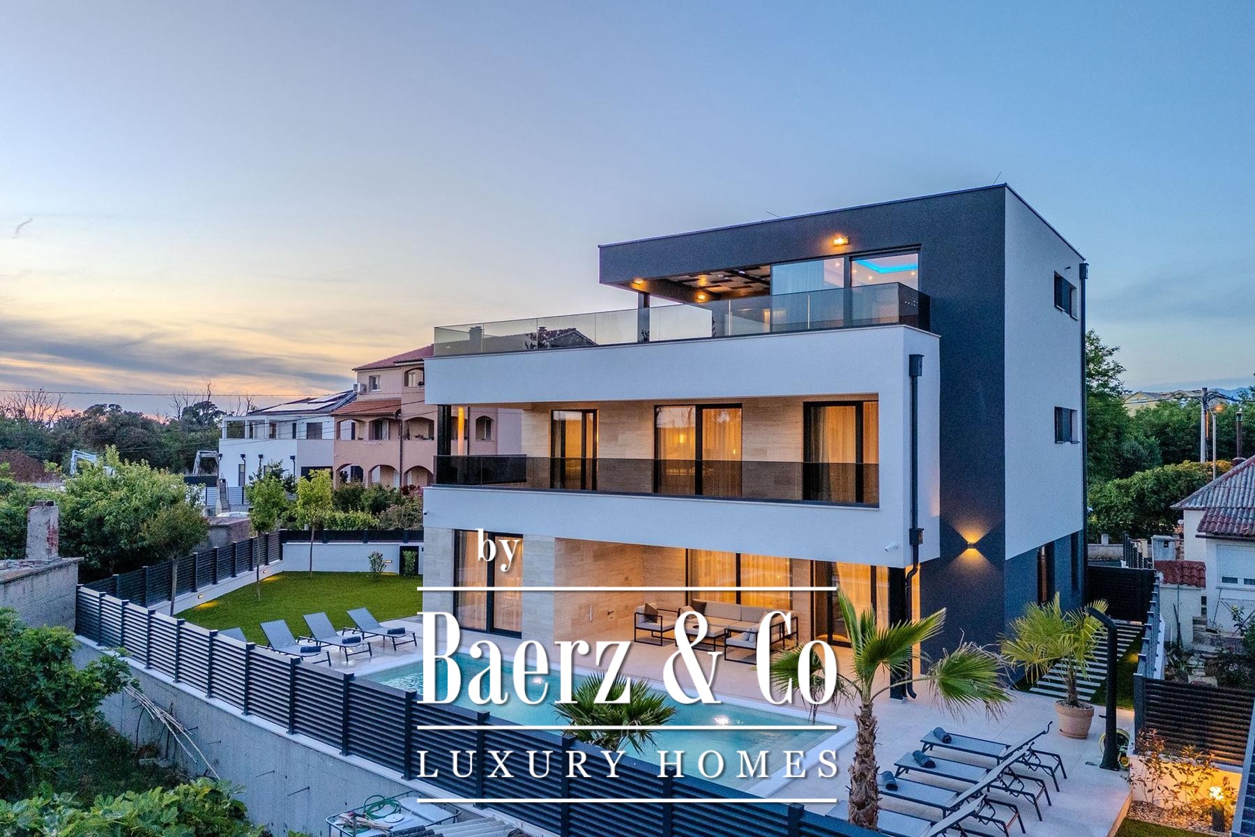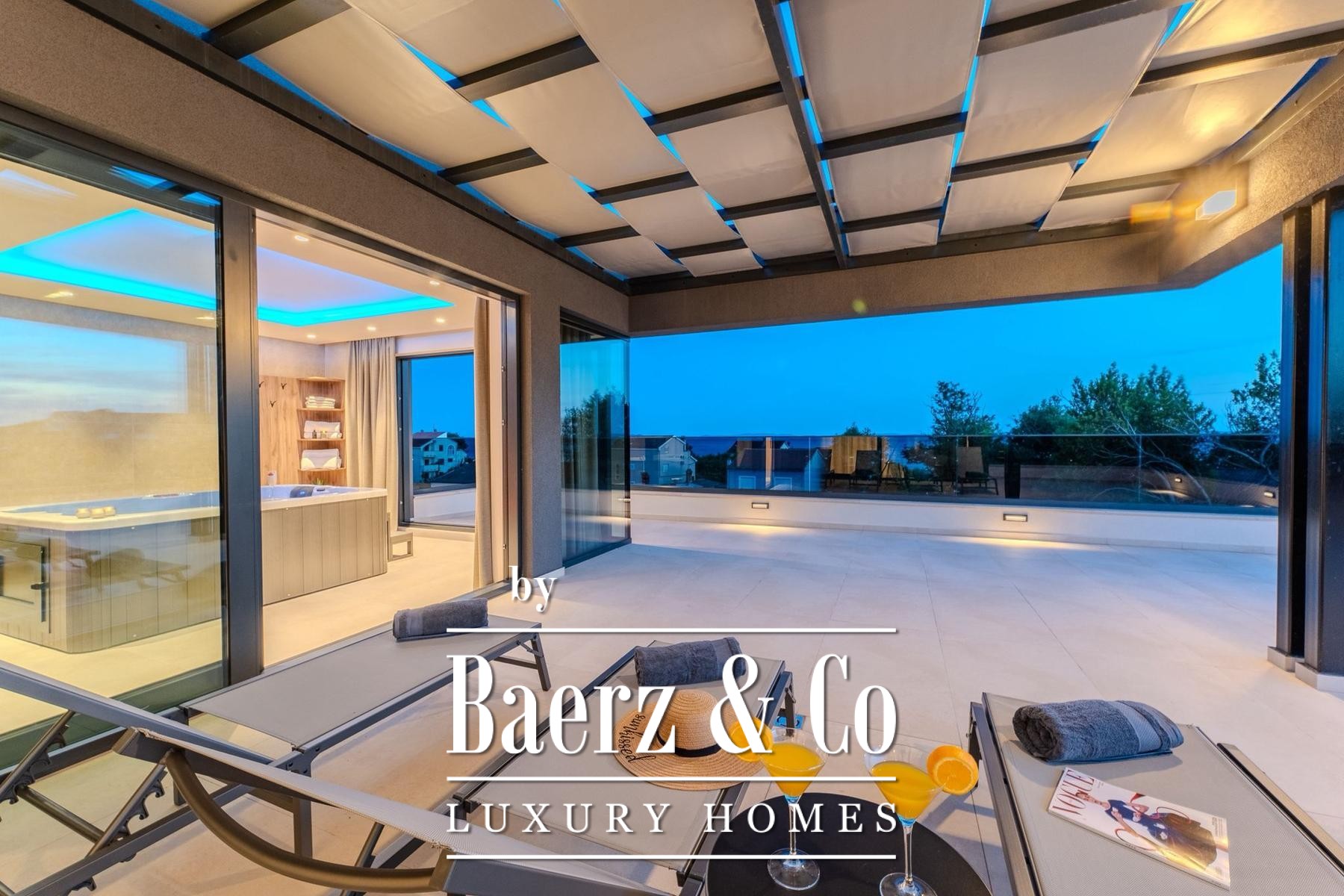 Overdekte en open terrassen vergroten de leefruimte, waar zon en schaduw harmonieus samenkomen. De fraai aangelegde tuin en zonneweide geven privacy, terwijl beveiligde parkeergelegenheid met cameratoezicht extra zekerheid biedt. Op slechts enkele passen van uitstekend onderhouden stranden combineert deze villa te koop in Privlaka architectonische elegantie met mediterrane ontspanning, geschikt als discrete gezinswoning of luxe vakantiewoning. Elk architectonisch detail staat garant voor functionaliteit en duurzame kwaliteit en creëert een sfeer van rust, comfort en licht.