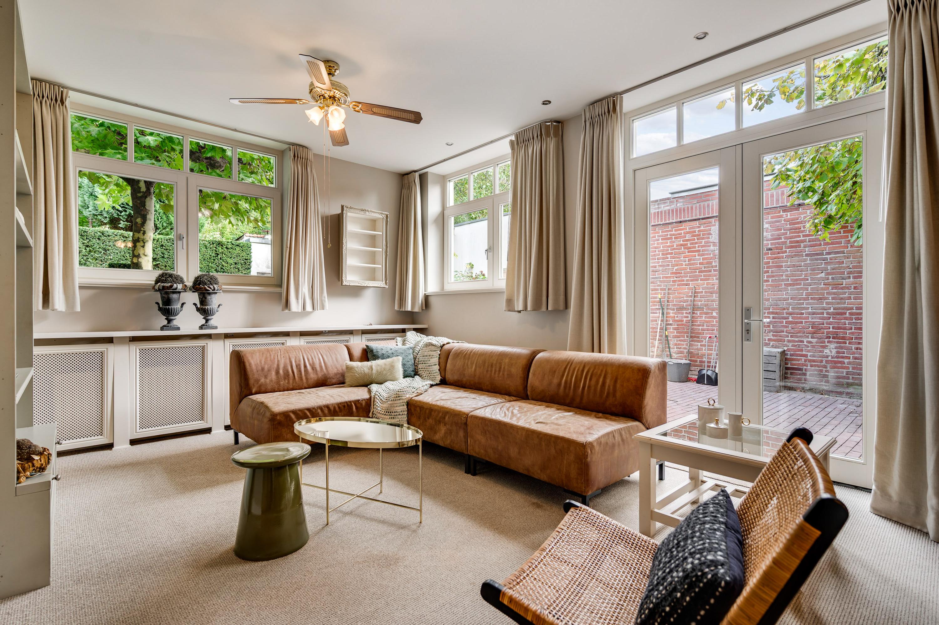 Bij binnenkomst wordt u direct omarmd door de warme sfeer en verfijnde afwerking. De imposante woonkamer van bijna tien meter lengte vormt het hart van het huis. Hier ligt een prachtige Versailles-parketvloer, die in combinatie met de design gashaard en de hoge raampartijen zorgt voor een ambiance van exclusieve rust. Via de openslaande tuindeuren loopt de ruimte naadloos over in het overkapte terras en de stijlvolle stadstuin – een privé-oase midden in de stad.