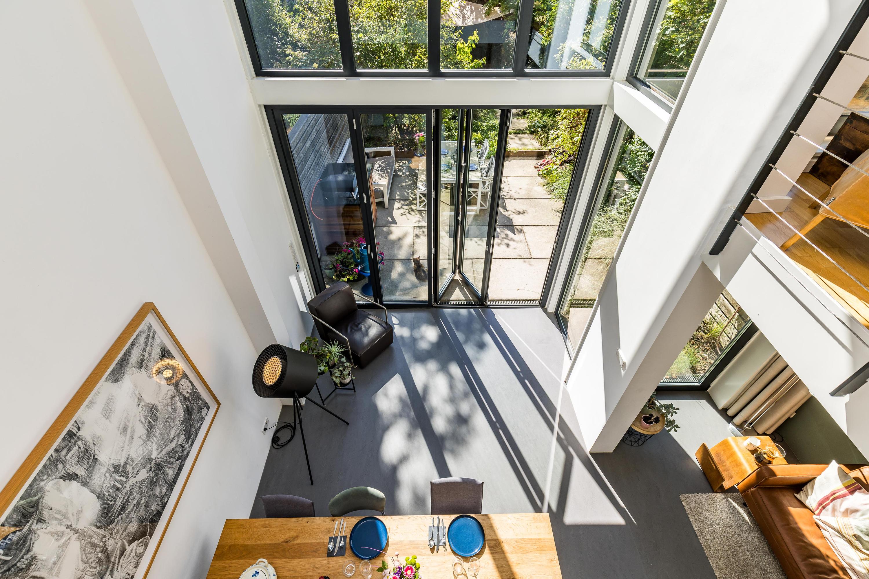 - achterzijde volledig voorzien van aluminium kozijnen met dubbel en triple glas