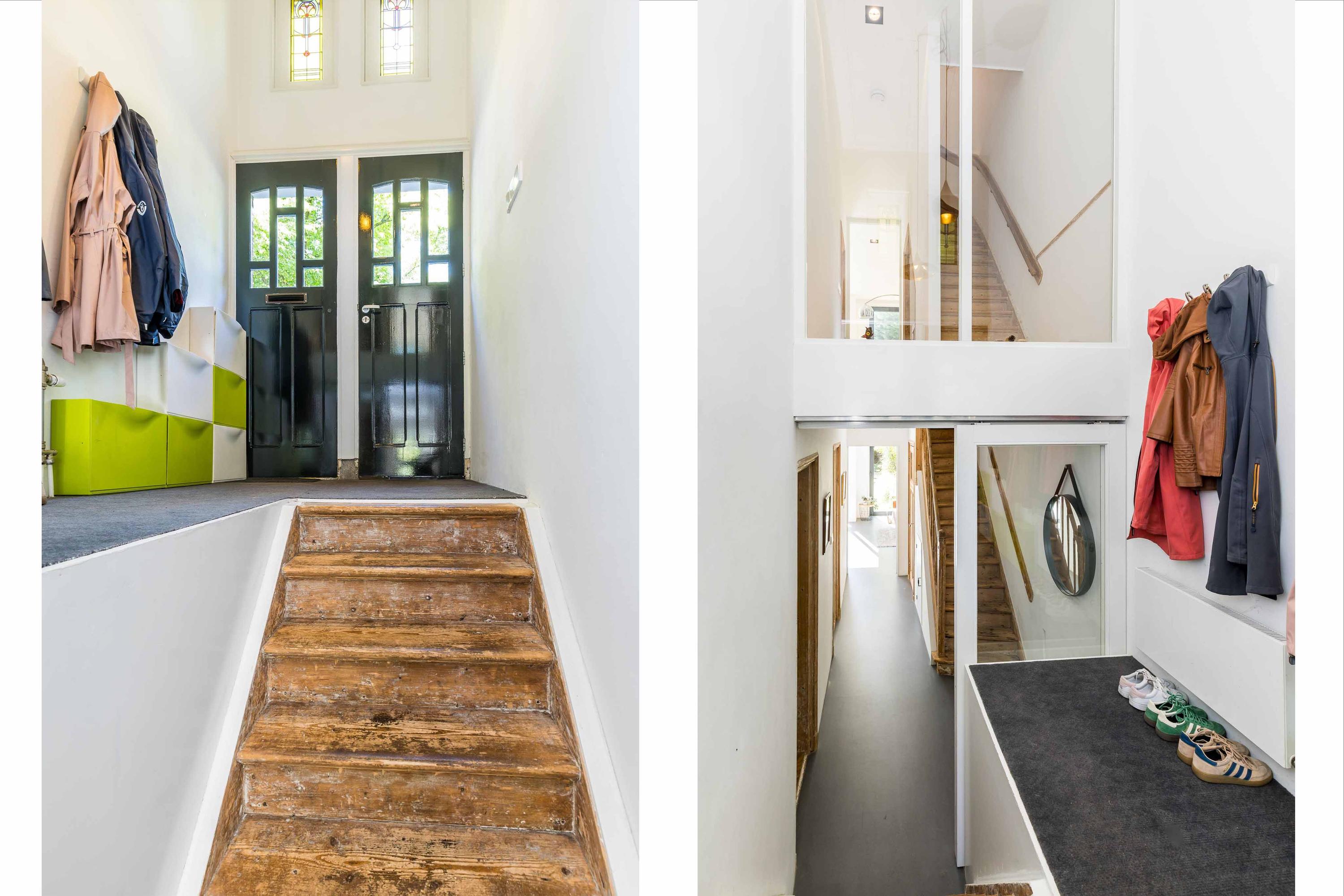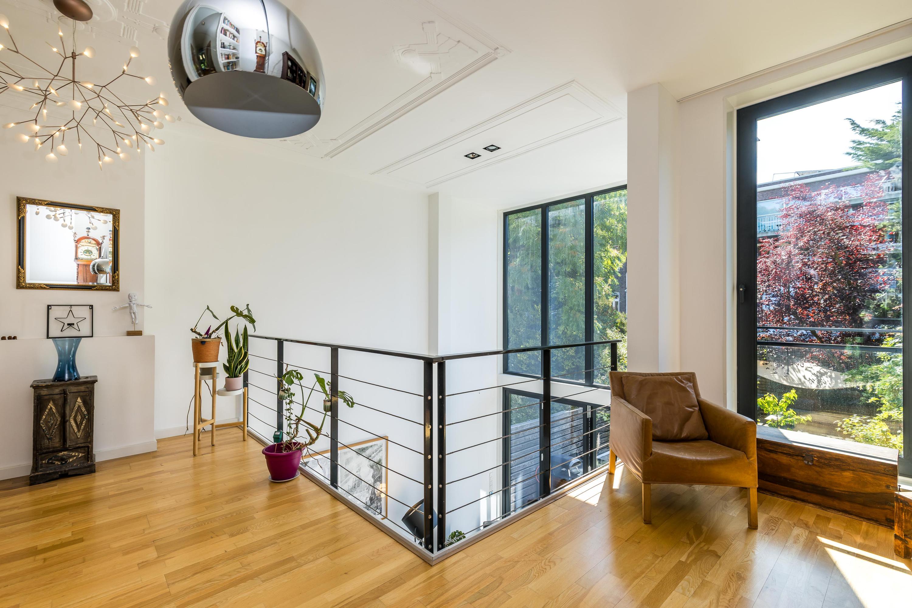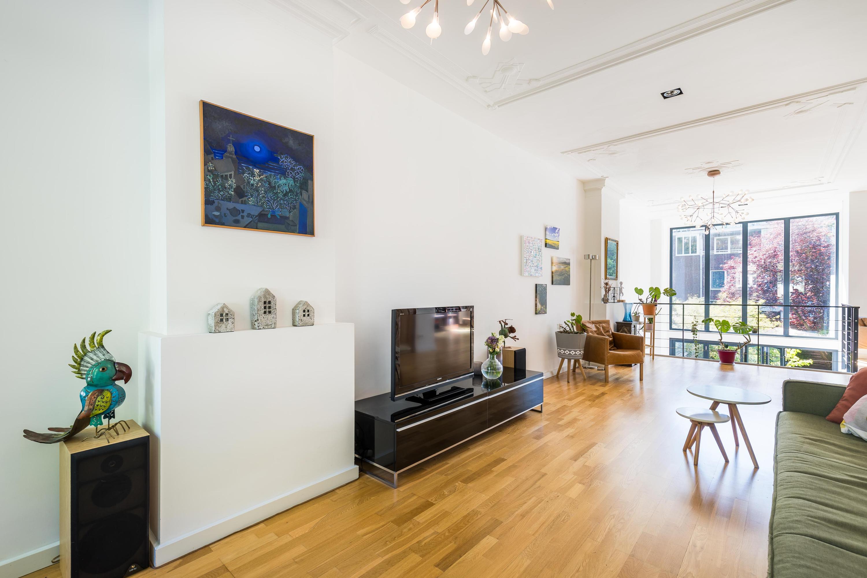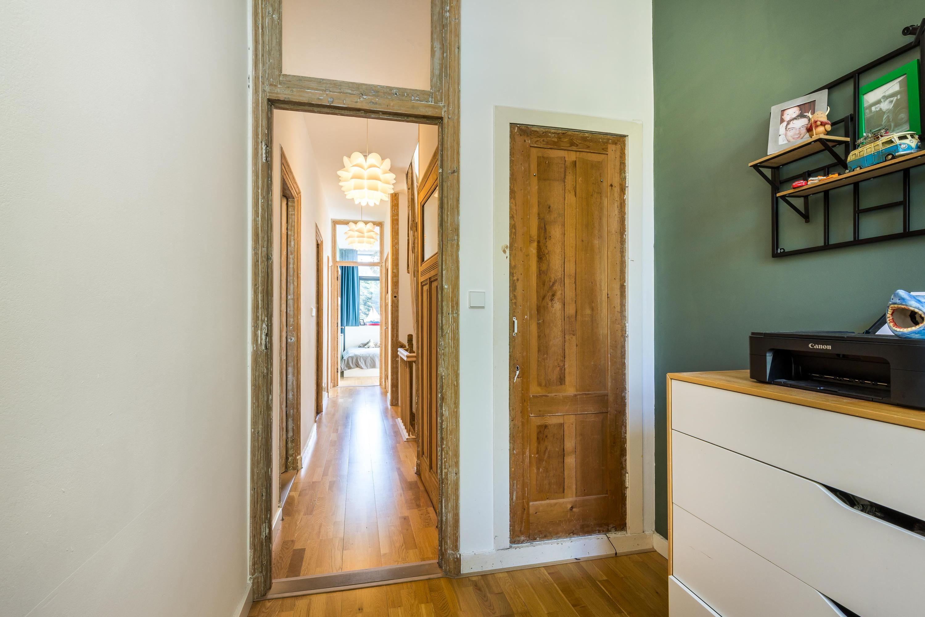 Overloop, toegang tot de ruime woonkamer met veel lichtinval door de spectaculaire vide aan de achterzijde en de raampartijen aan de voorzijde. Aan de voorzijde bevindt zich de knusse zitkamer met mooi uitzicht op de groene Bergselaan, terwijl de achterzijde een prachtig uitzicht biedt op de achtertuin.