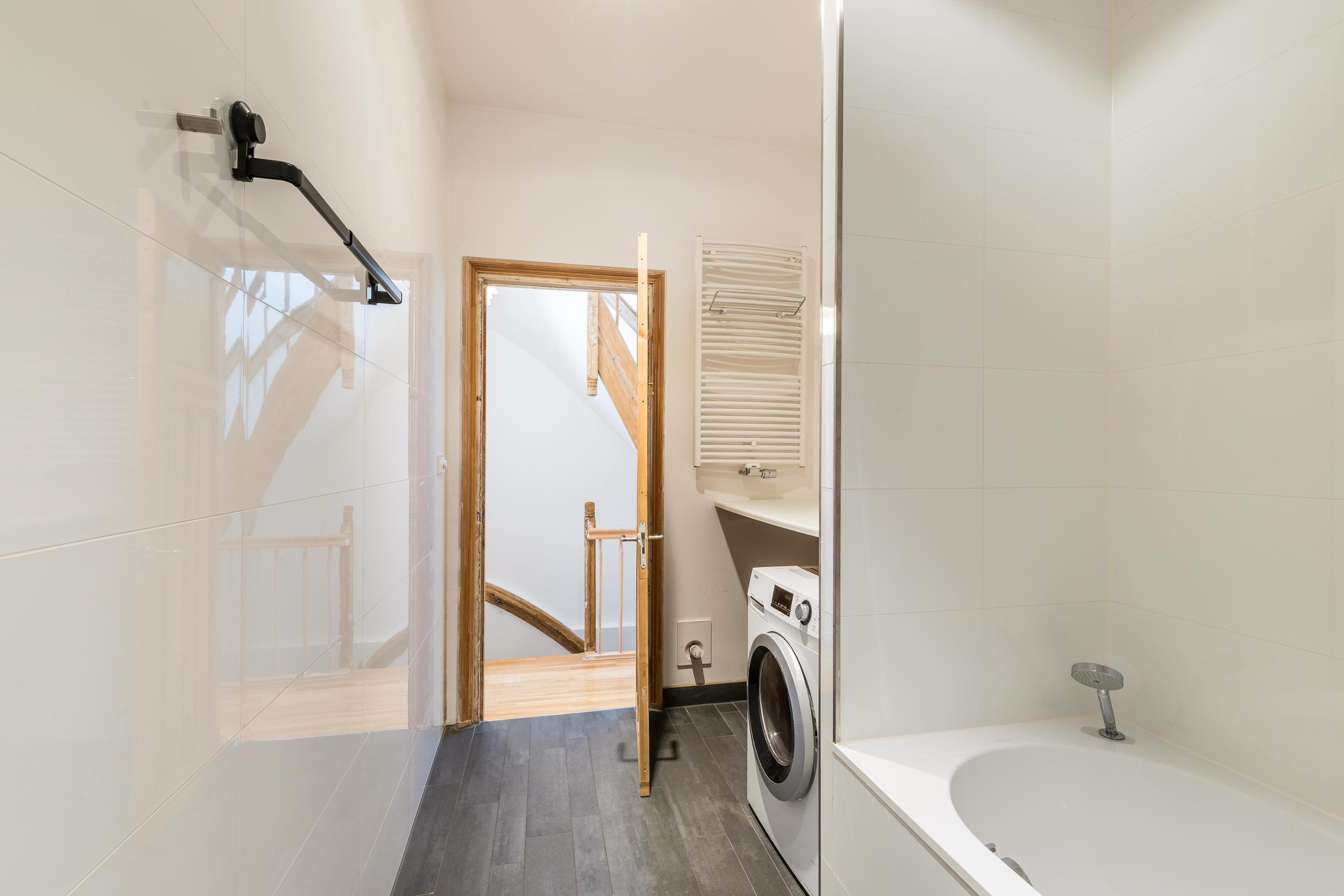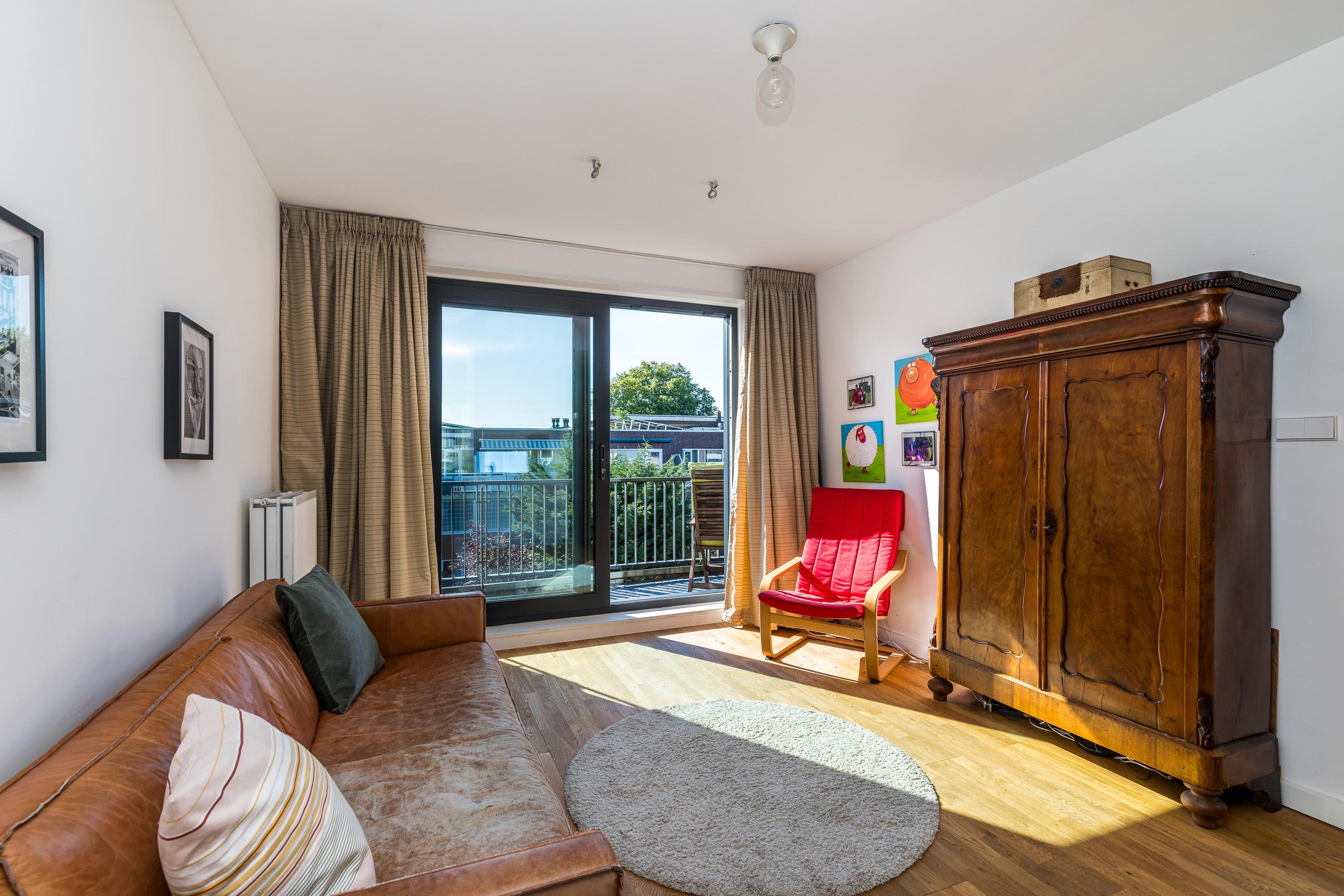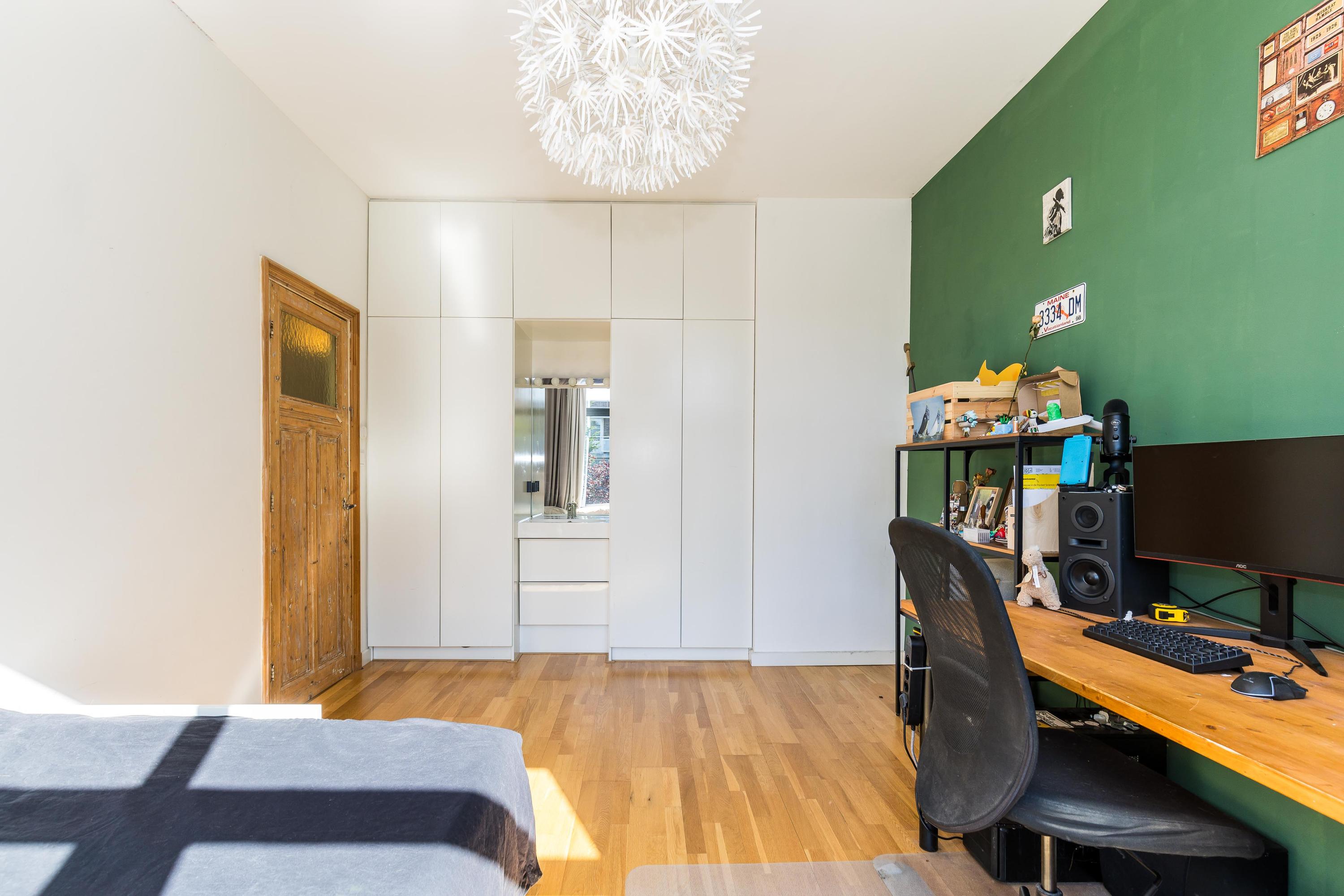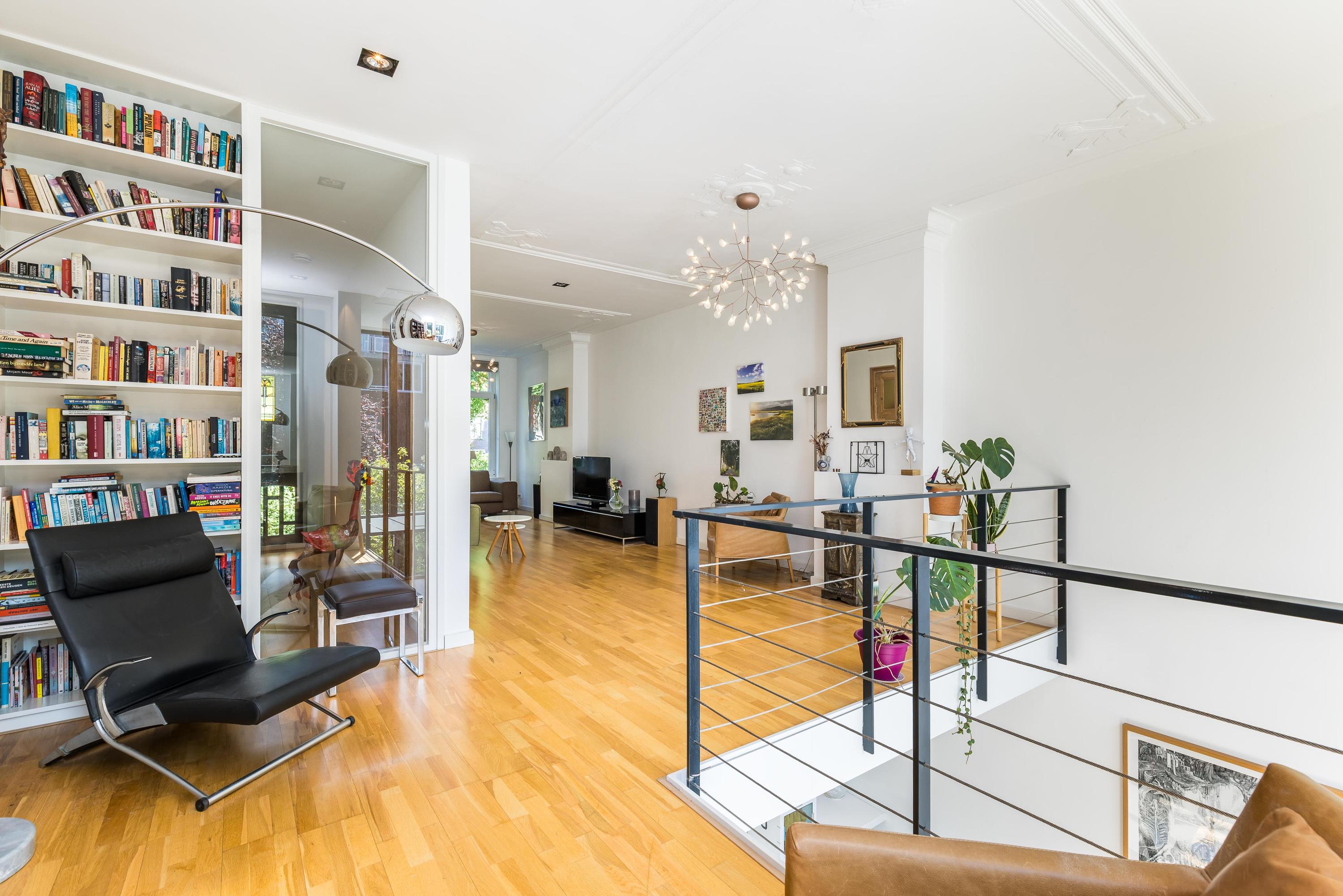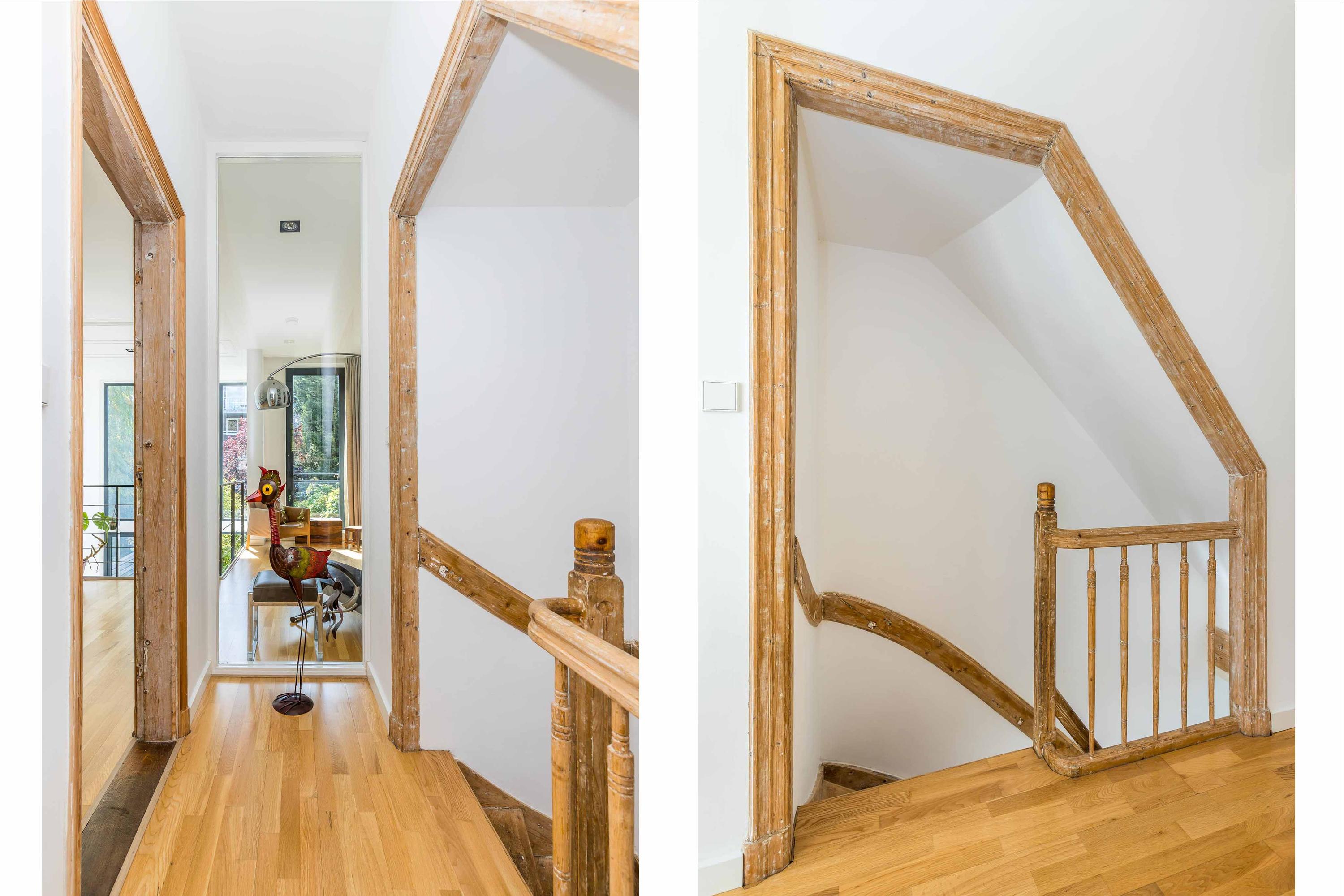 Overloop, toegang tot de ruime woonkamer met veel lichtinval door de spectaculaire vide aan de achterzijde en de raampartijen aan de voorzijde. Aan de voorzijde bevindt zich de knusse zitkamer met mooi uitzicht op de groene Bergselaan, terwijl de achterzijde een prachtig uitzicht biedt op de achtertuin.