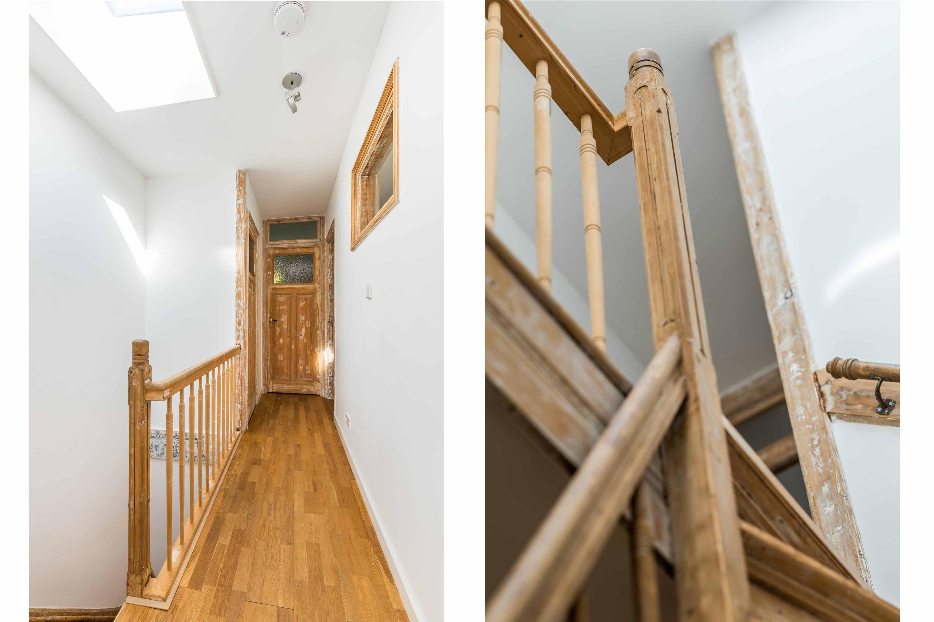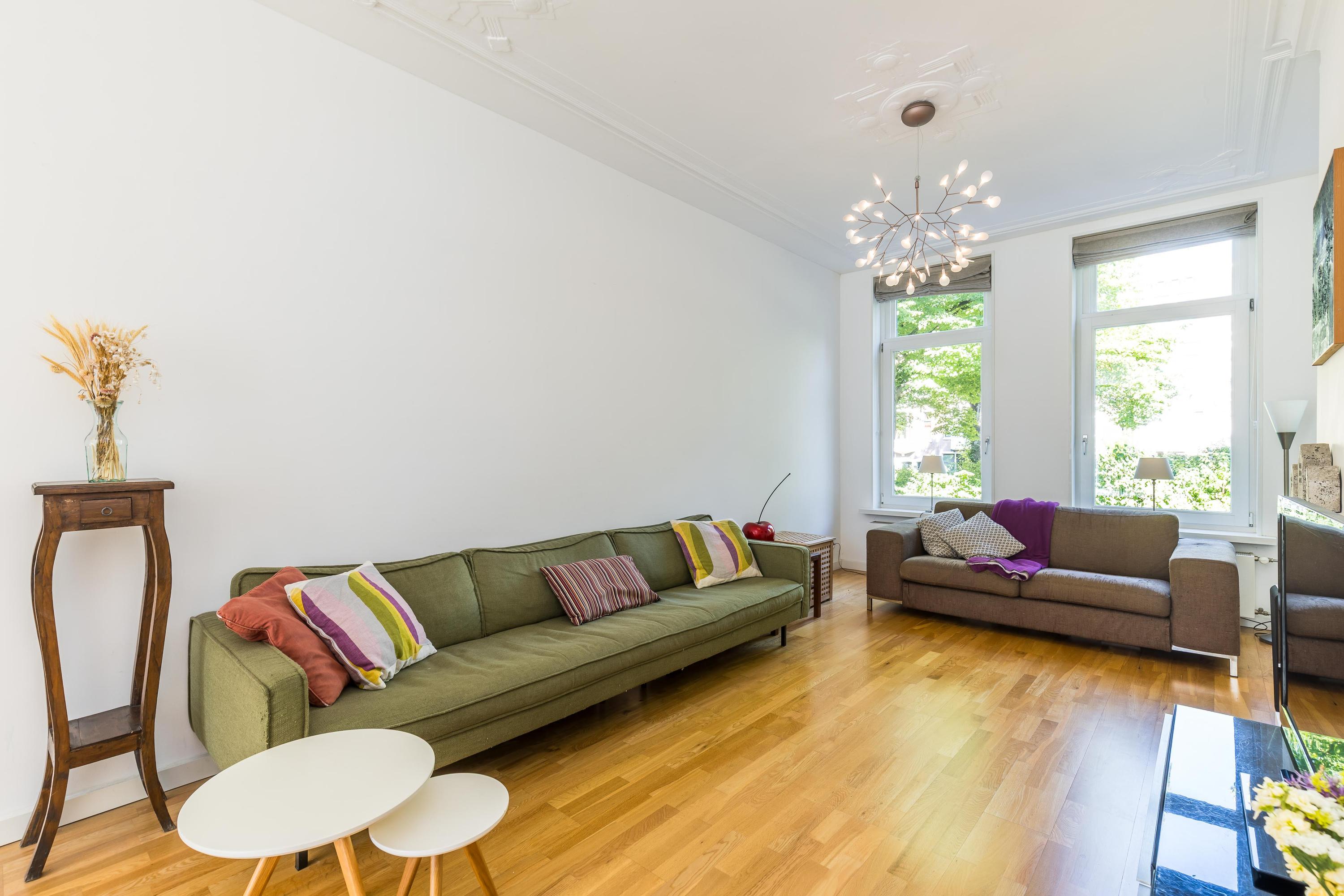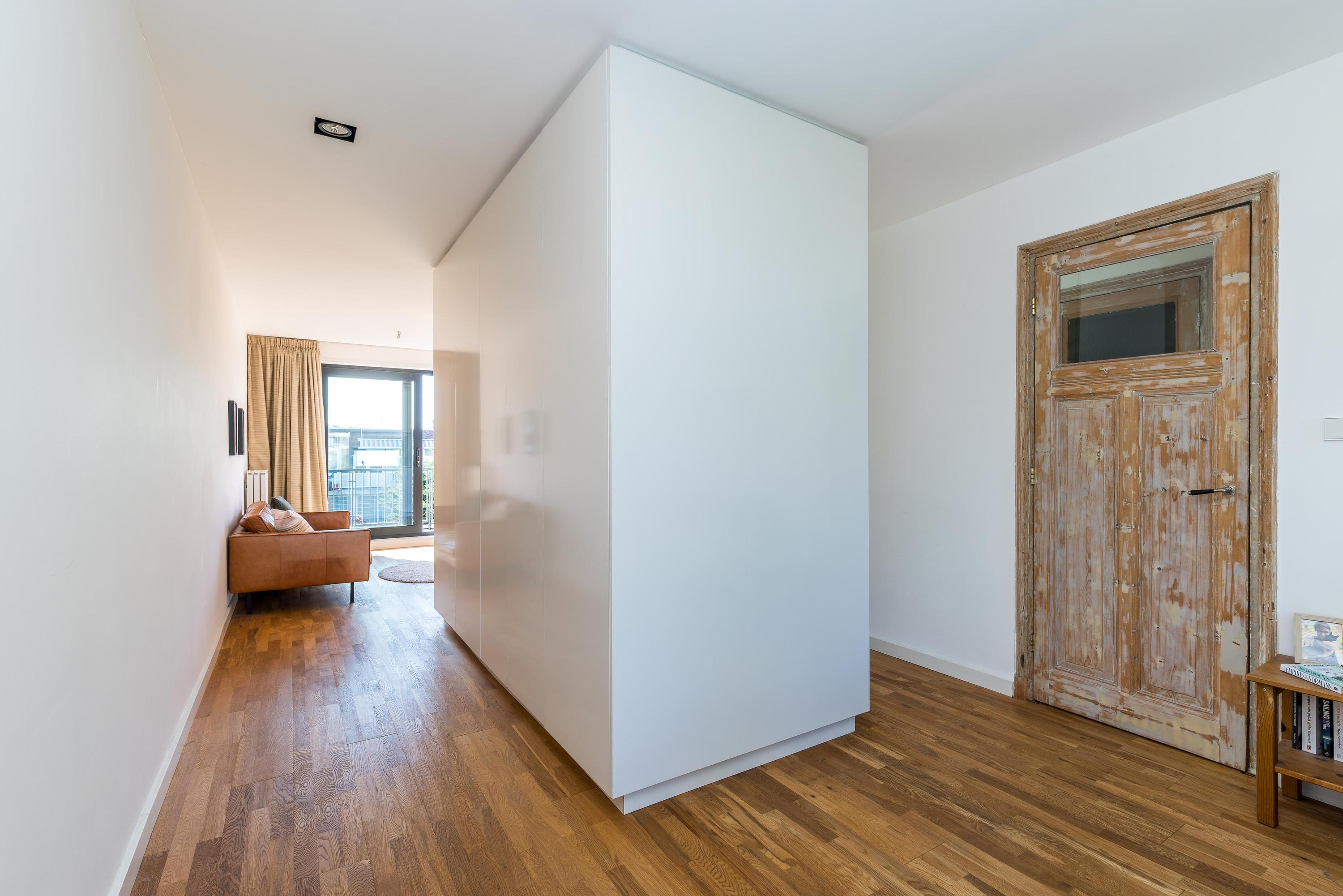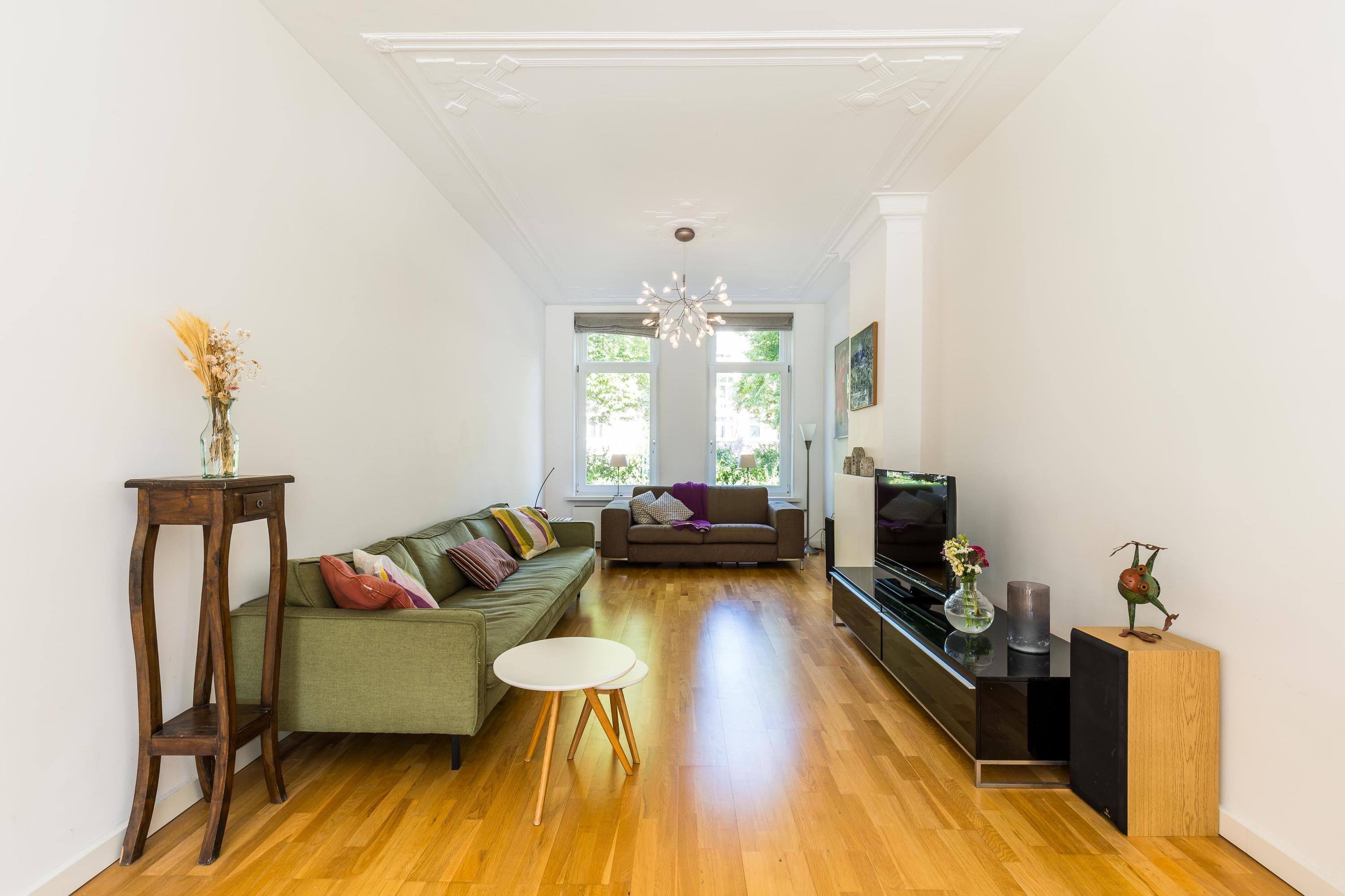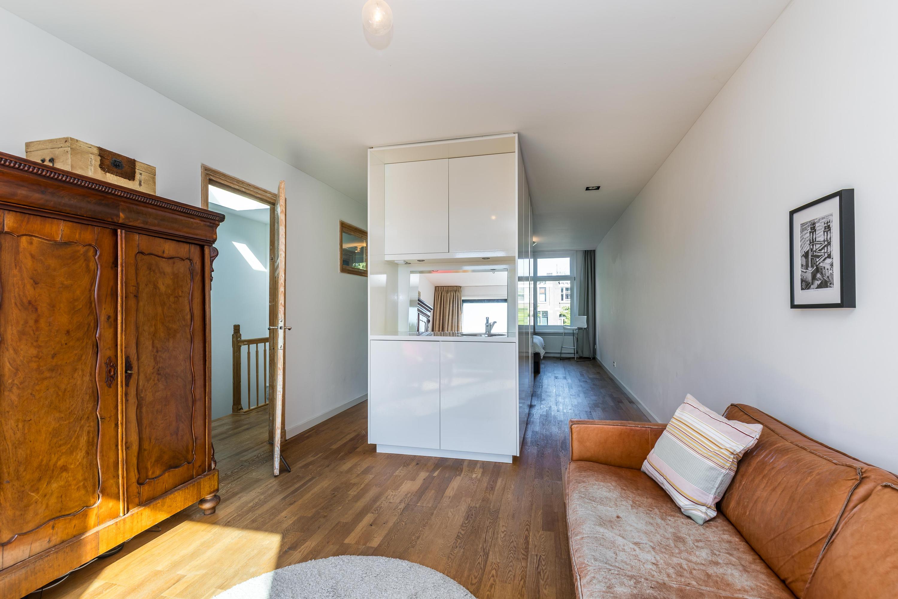 Overloop, toegang tot de ruime woonkamer met veel lichtinval door de spectaculaire vide aan de achterzijde en de raampartijen aan de voorzijde. Aan de voorzijde bevindt zich de knusse zitkamer met mooi uitzicht op de groene Bergselaan, terwijl de achterzijde een prachtig uitzicht biedt op de achtertuin.