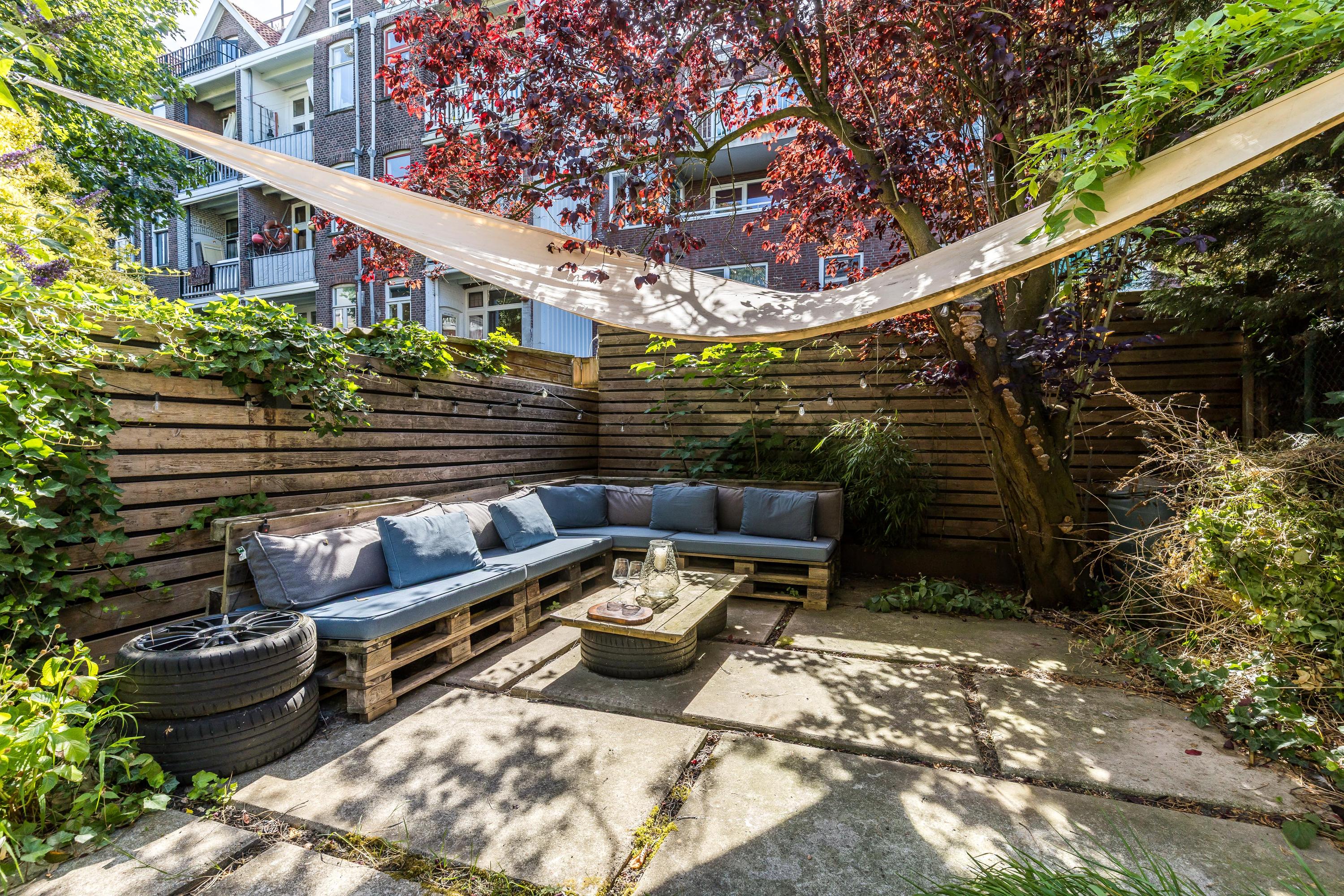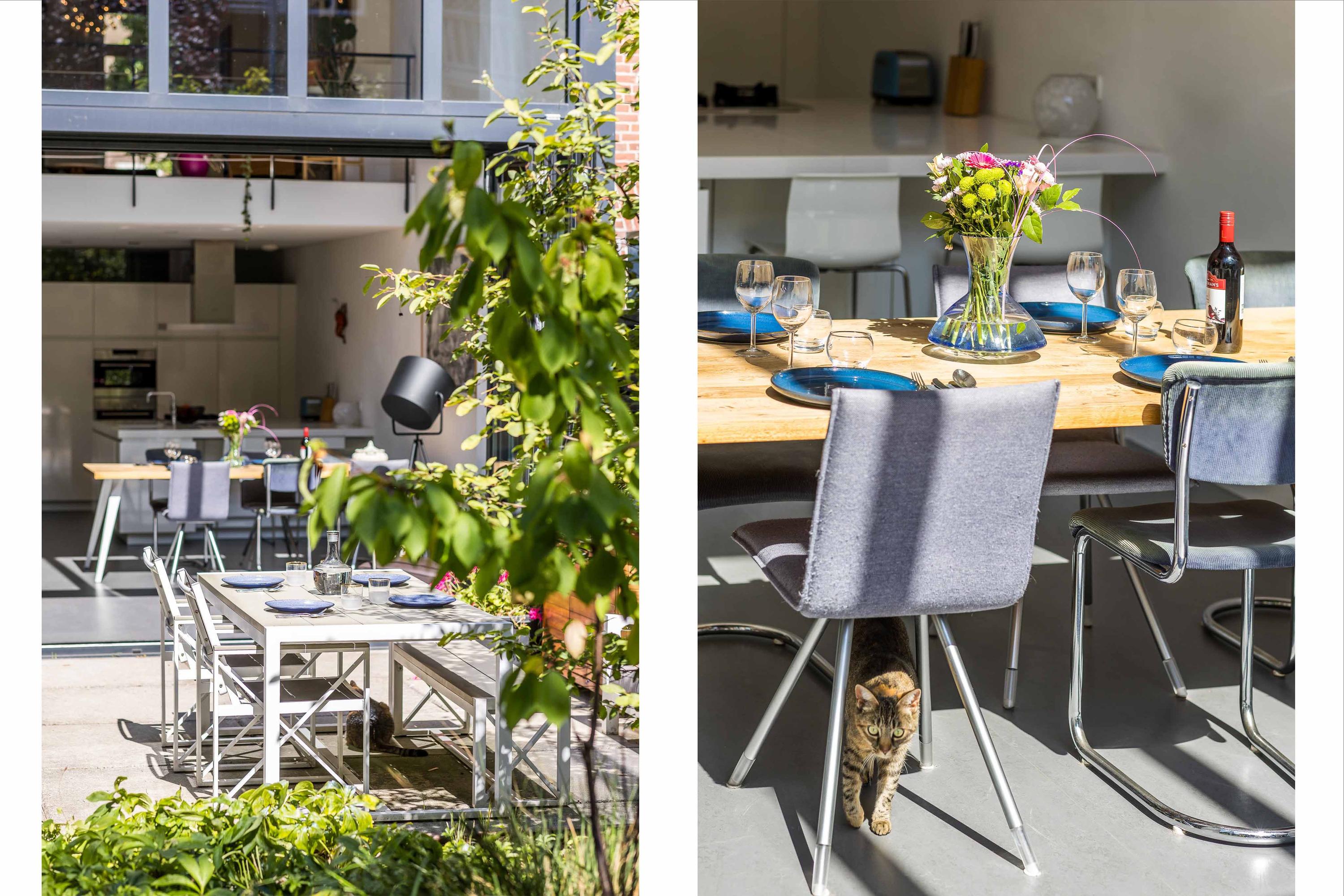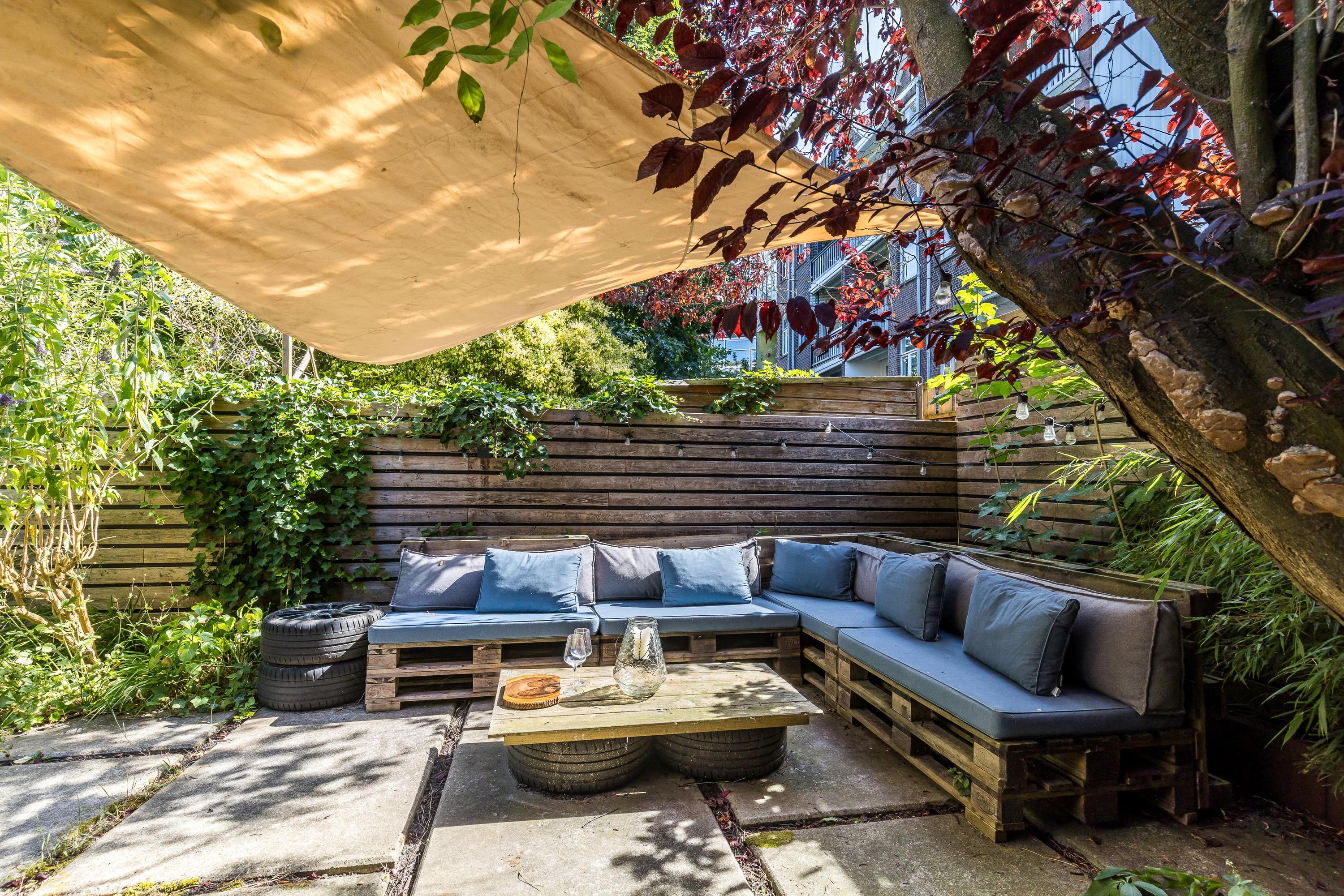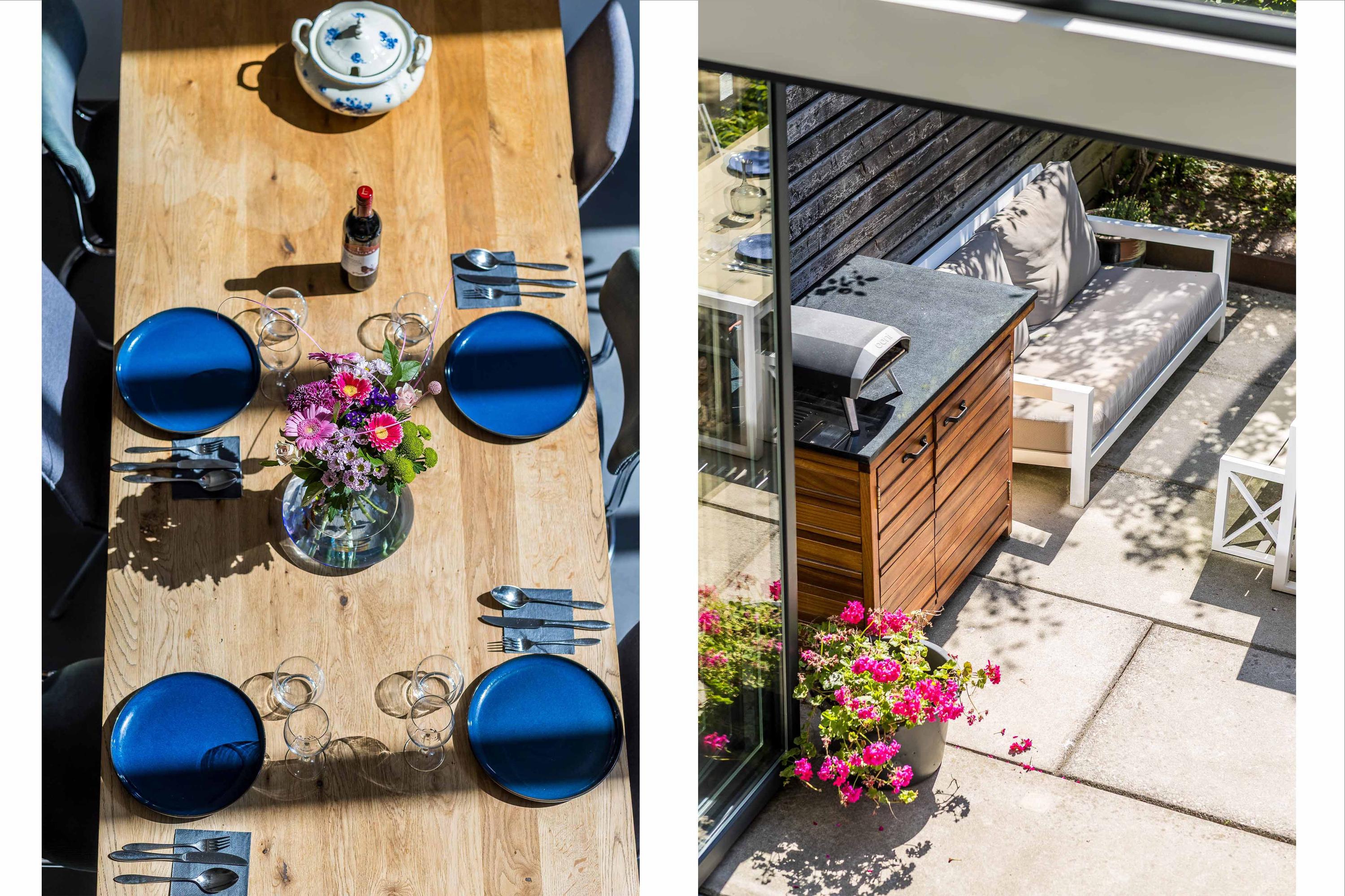 De bijzonder ruime en fraai aangelegde achtertuin van circa 81 m² beschikt over meerdere gezellige zitplekken en biedt het overgrote deel van de dag zon. Vanuit de tuin geniet je van een prachtig zicht op de stijlvolle woonkeuken.