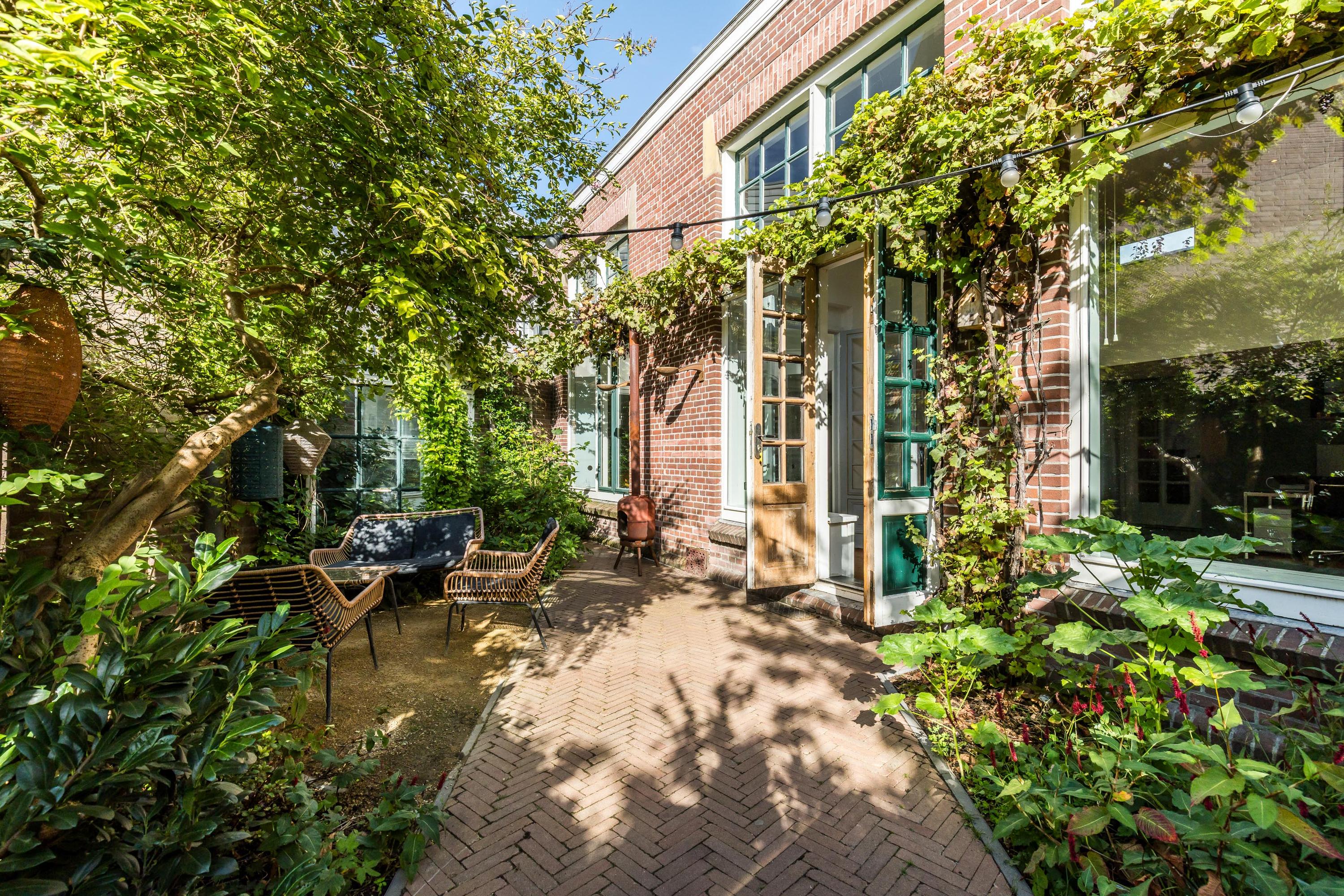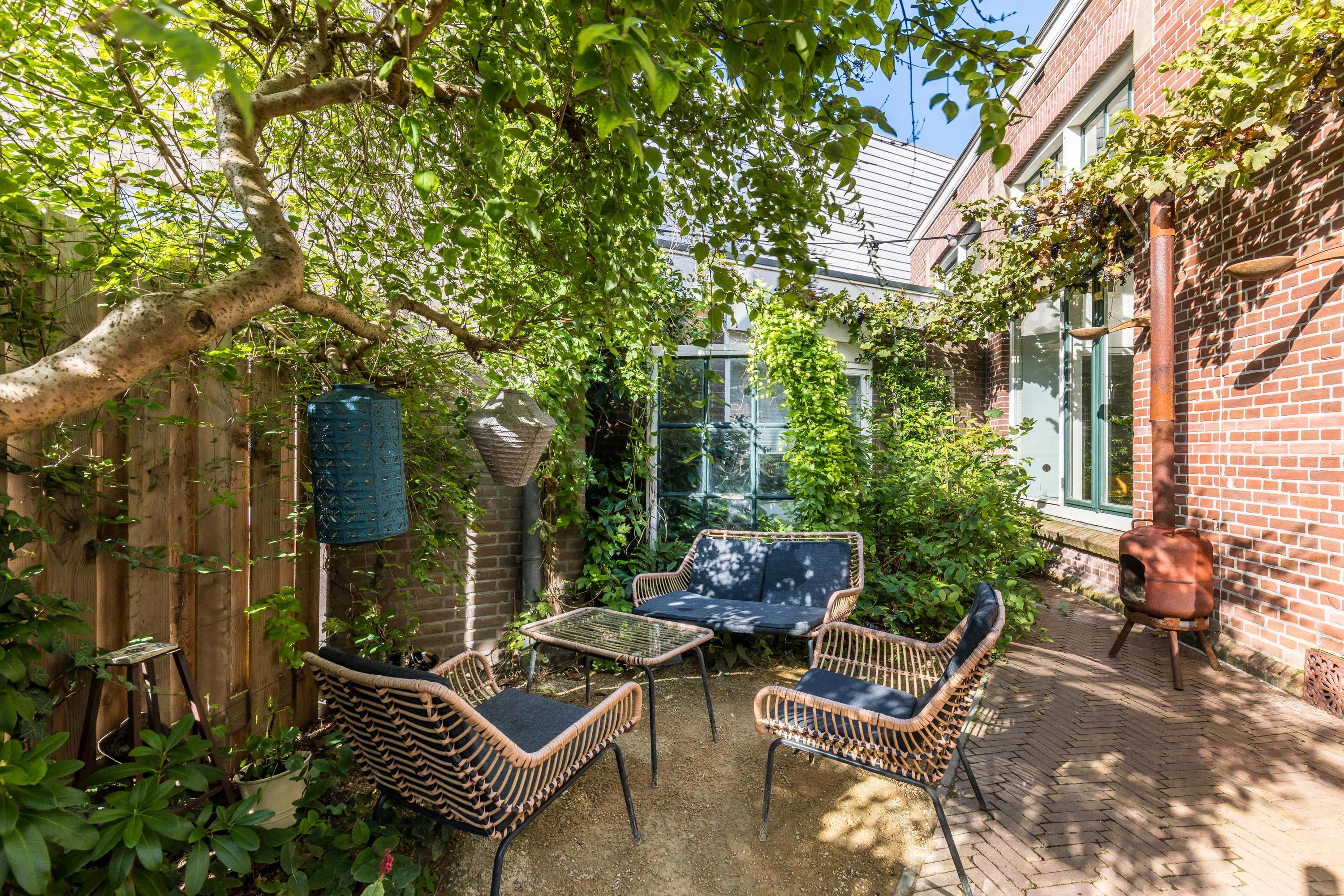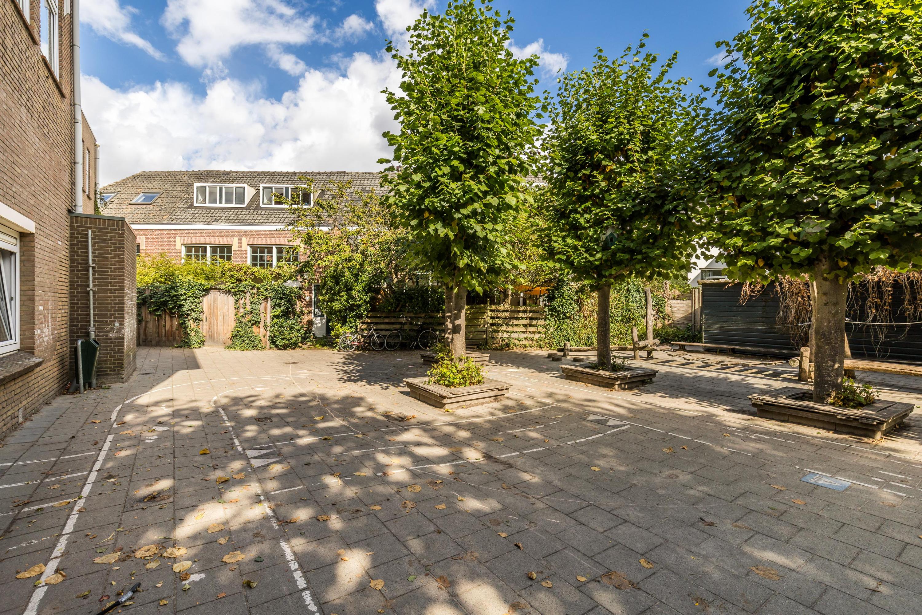 Aan de voorzijde ligt een groene, besloten tuin waar u in de ochtend- en middagzon kunt genieten van rust en privacy. Via een poort is er toegang tot het aangrenzende schoolplein, dat door de bewoners gebruikt mag worden als speelplek voor kinderen of voor gezellige borrels en barbecues met vrienden.