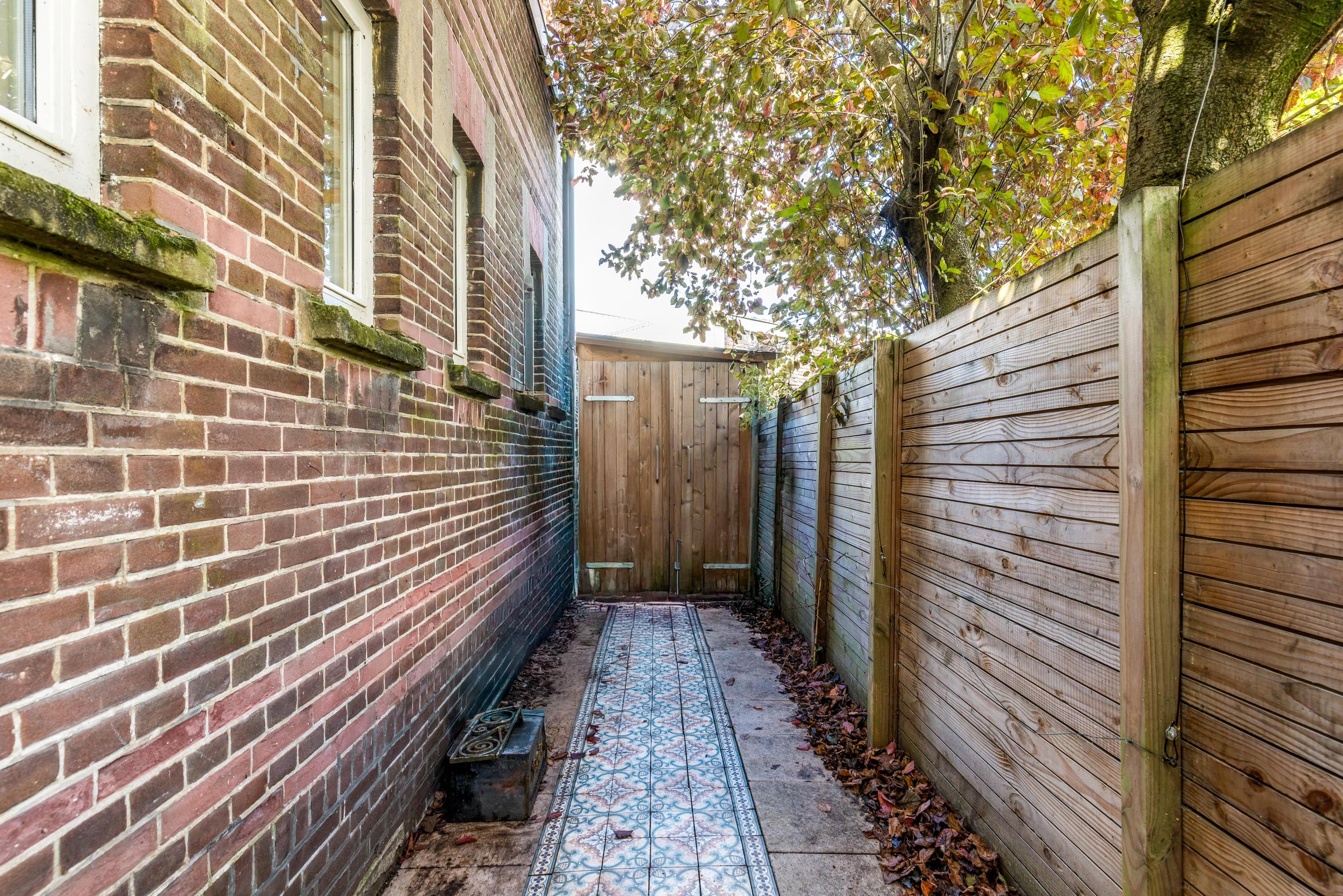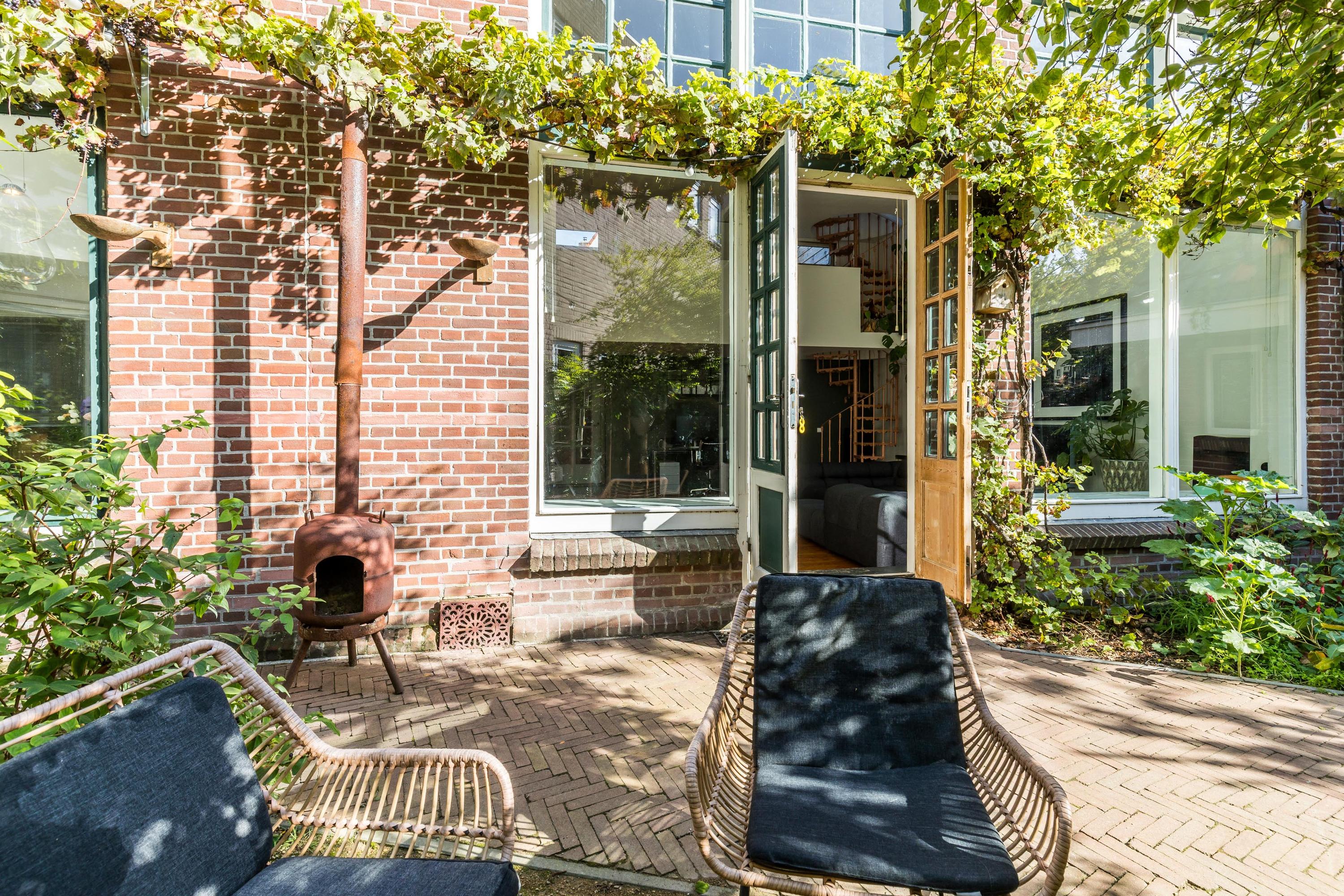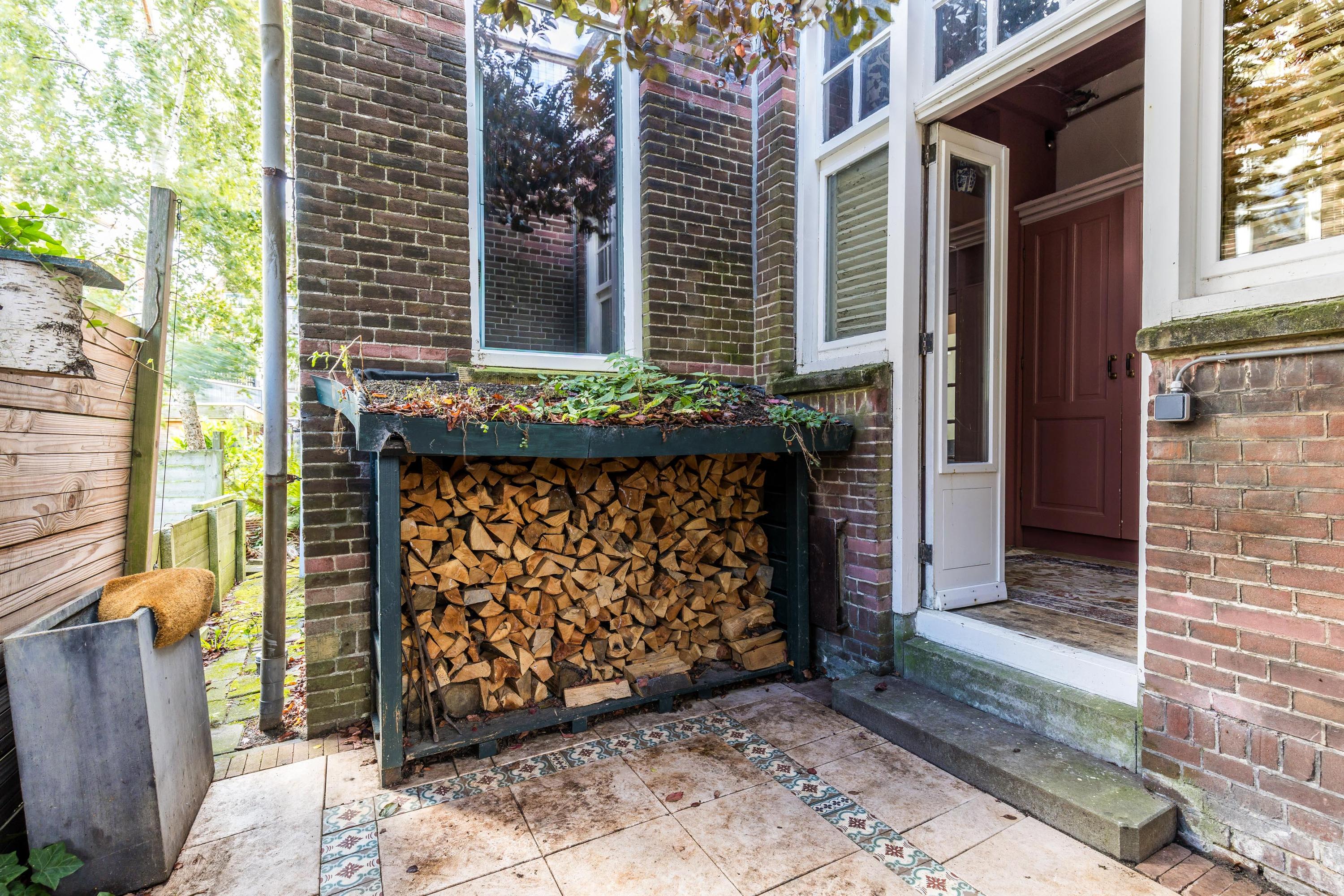 Aan de voorzijde ligt een groene, besloten tuin waar u in de ochtend- en middagzon kunt genieten van rust en privacy. Via een poort is er toegang tot het aangrenzende schoolplein, dat door de bewoners gebruikt mag worden als speelplek voor kinderen of voor gezellige borrels en barbecues met vrienden.