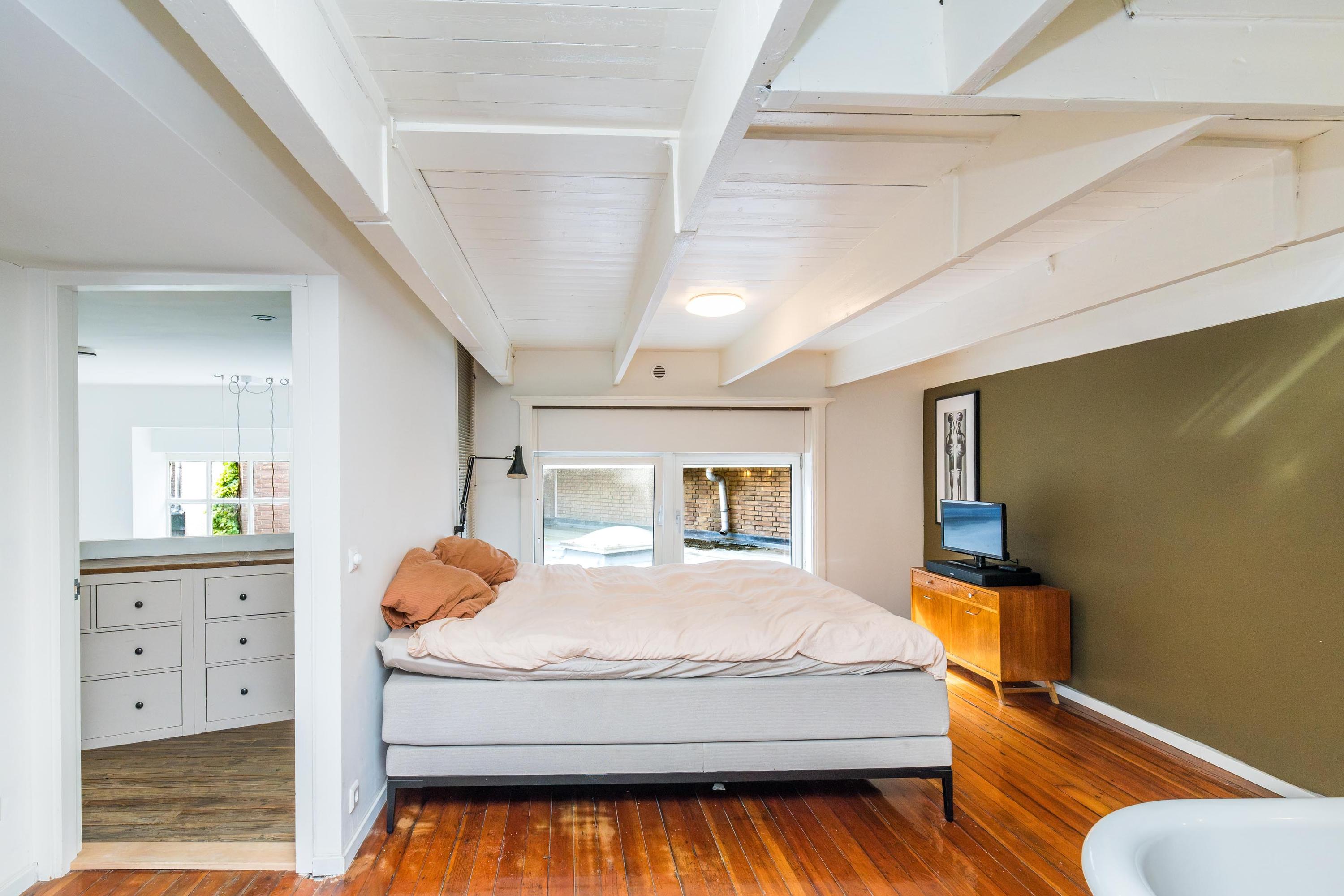 Op de eerste verdieping bevindt zich een royale slaapkamer met grote kasten, een apart toilet en een comfortabele badkamer met ligbad en dubbele douche.