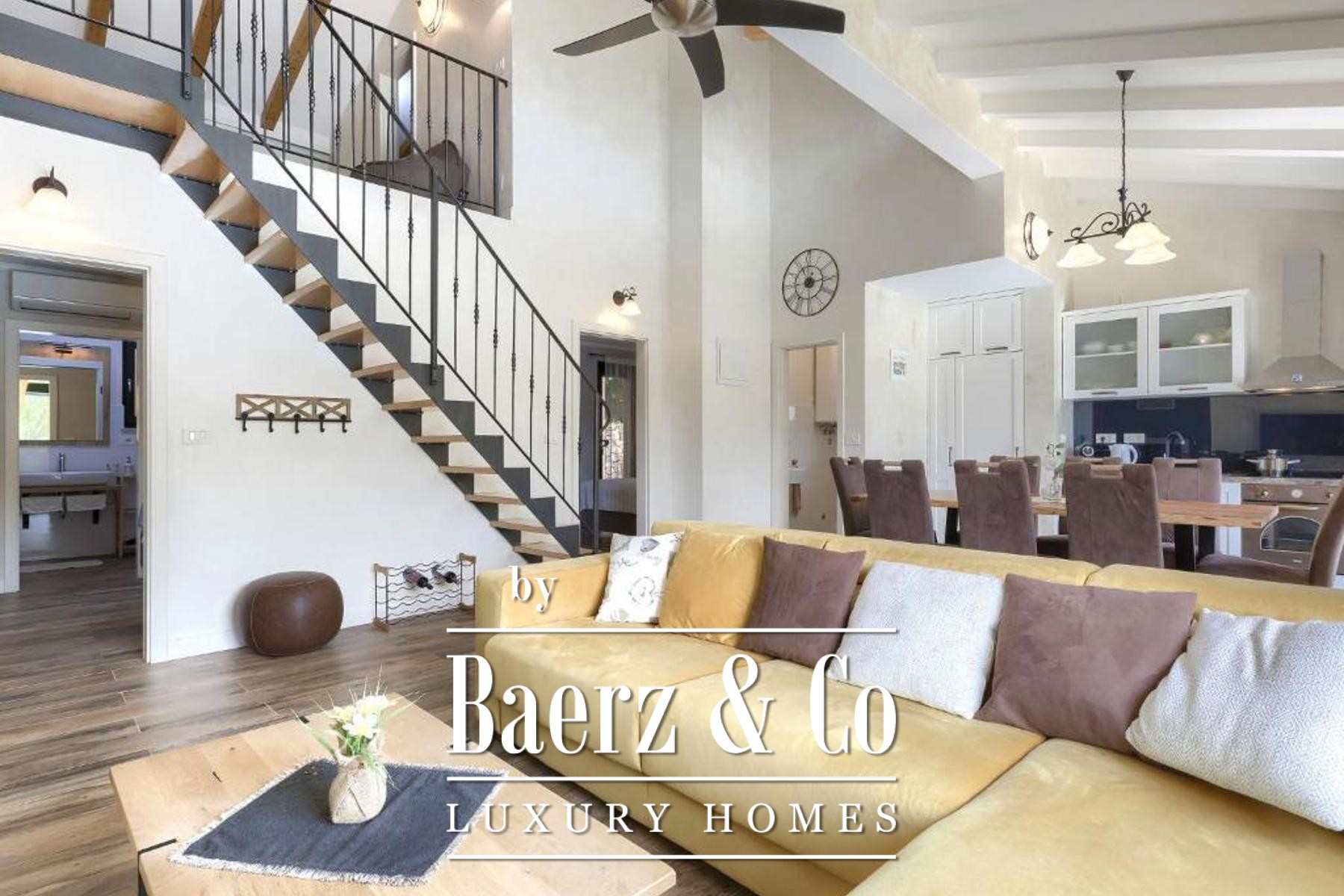 Het gastenverblijf beschikt over een eigen woonkamer met keuken, een aparte slaapkamer en badkamer, waardoor er binnen het landgoed volledige zelfstandigheid is. Buiten is er een zoutwaterzwembad van 32 m² omgeven door zonneterrassen. Een overdekte eetruimte met pergola en een grote open haard nodigen uit tot samenkomen, terwijl het volledig omheinde, fraai aangelegde terrein is voorzien van een automatisch irrigatiesysteem met eigen bron.