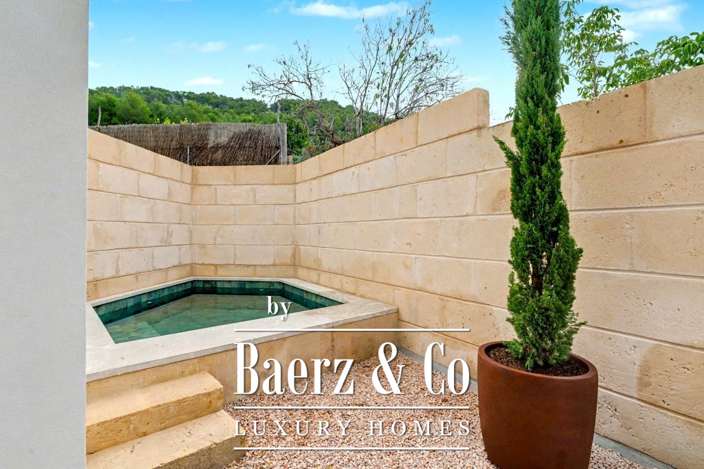 Deze vrijstaande woning in S'Arracó biedt een verfijnde interpretatie van hedendaagse mediterrane architectuur, met volledige onafhankelijkheid in de rustige dorpskern. De woning omvat 177 m² woonoppervlak verdeeld over drie zorgvuldig vormgegeven verdiepingen, met twee slaapkamers en drie badkamers, waardoor privacy en licht optimaal benut worden. Elk detail van de gevel en de markante entree getuigen van duurzame kwaliteit binnenshuis.