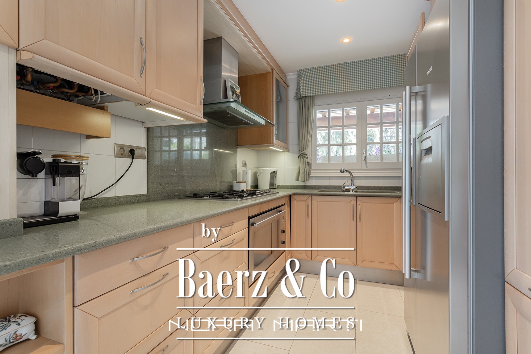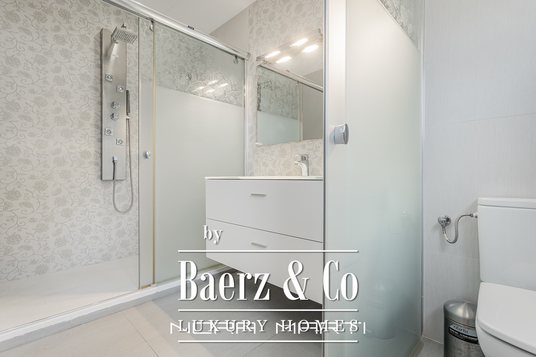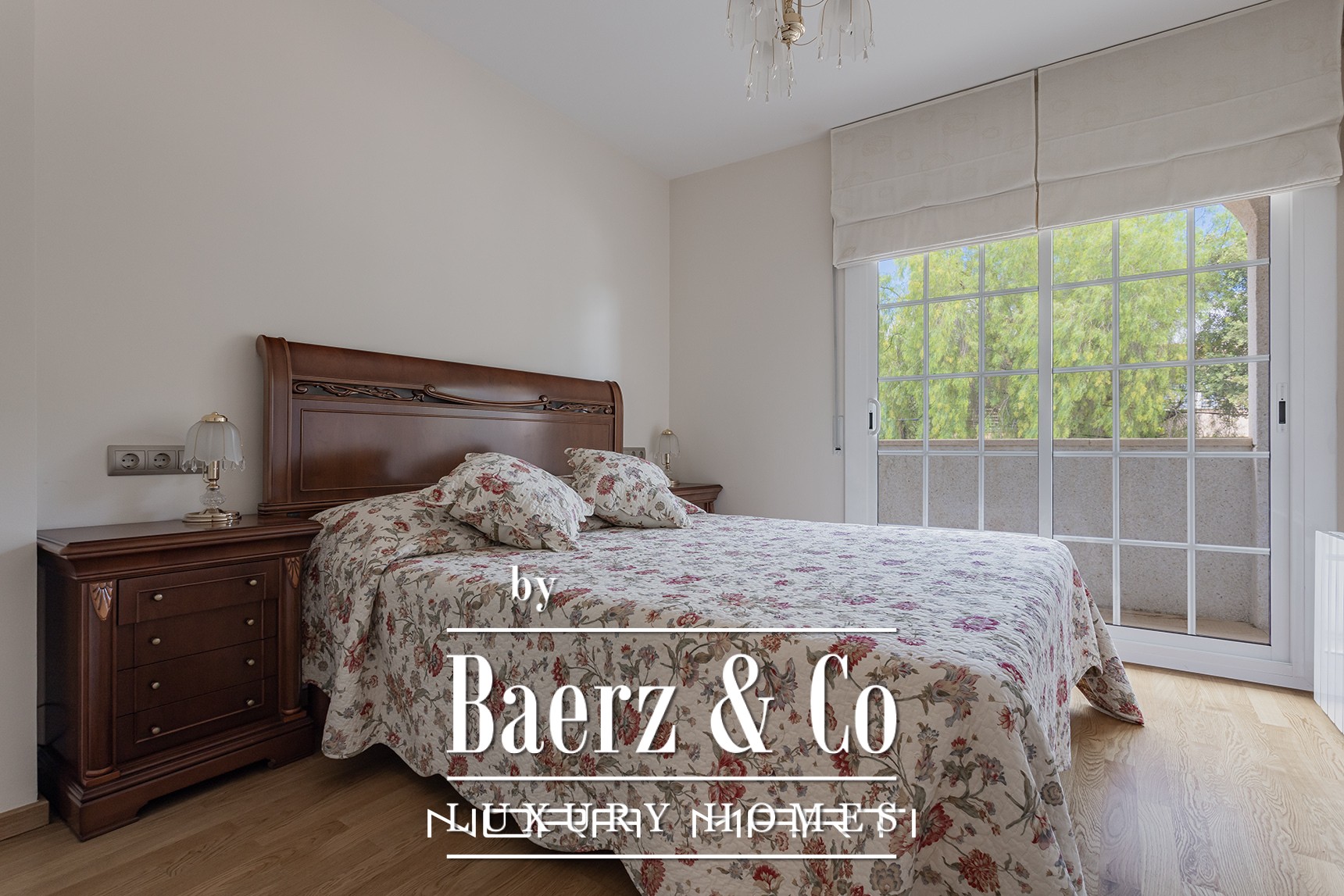 Met een woonoppervlak van 346 m² verdeeld over vier niveaus, biedt de begane grond een zit- en eetkamer die naadloos aansluit op een overdekte veranda van 40 m², een tuin met barbecue en het uitnodigende zwembad. De aparte keuken is volledig uitgerust en er is een eenpersoonskamer en een badkamer met douche, waardoor er een logische en prettige indeling ontstaat.