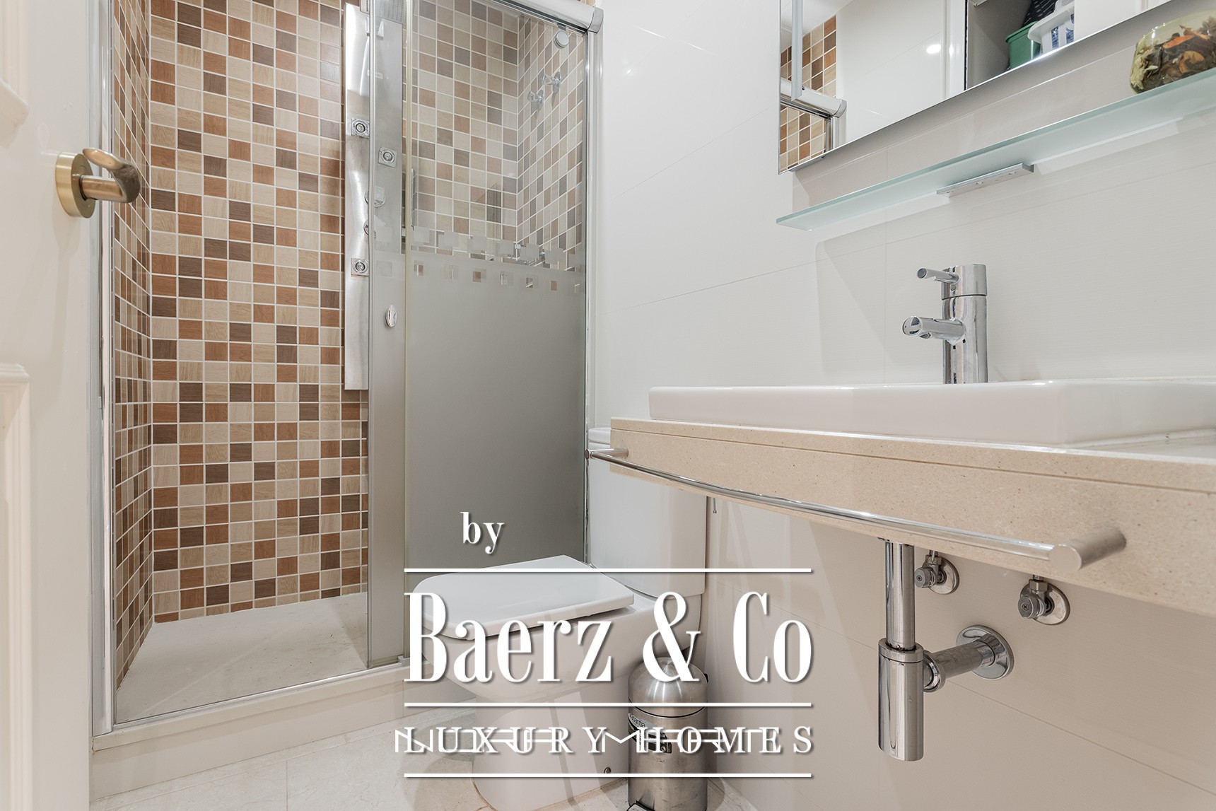 Op de tweede verdieping bevindt zich een tweepersoonskamer met open haard en toegang tot een privéterras van 20 m² met uitzicht op zee. In het souterrain zijn er parkeermogelijkheden voor drie auto's en een wasruimte. Praktische voorzieningen zoals automatische rolluiken, ramen met dubbele luchtkamer, alarmsysteem, split airconditioning en centrale verwarming via radiatoren benadrukken het comfort en het gebruiksgemak van deze woning.
