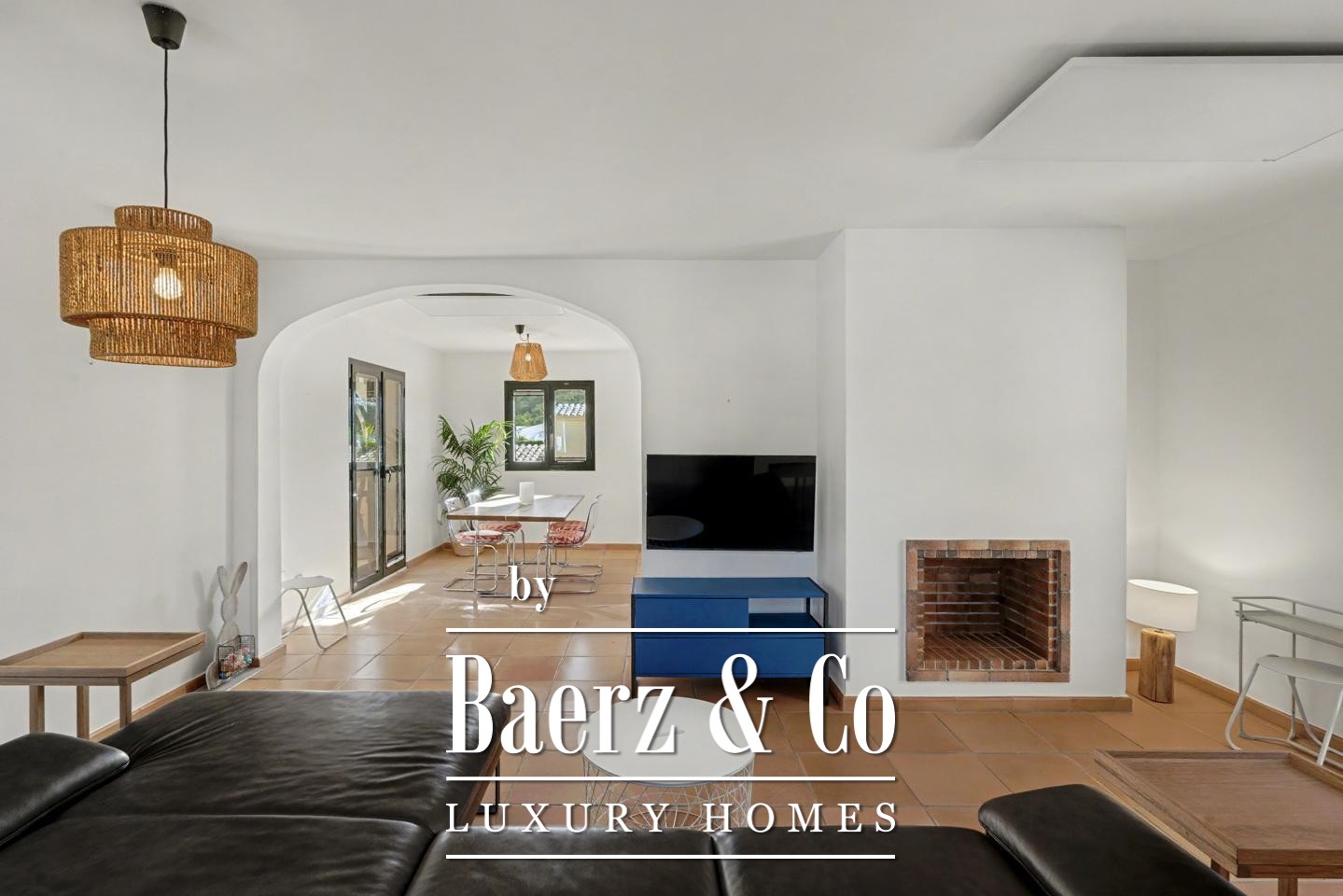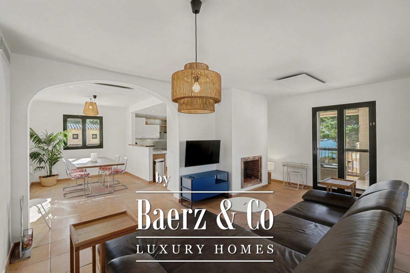 Een royale entree leidt naar verfijnde, lichte interieurs. De woonkamer met open haard geeft toegang tot een terras waar de zee altijd dichtbij is. De open keuken en eetruimte komen uit op een tweede terras voor gezellige diners in de buitenlucht; een buitentrap verbindt deze ruimte met de gezamenlijke mediterrane tuinen en het zwembad.