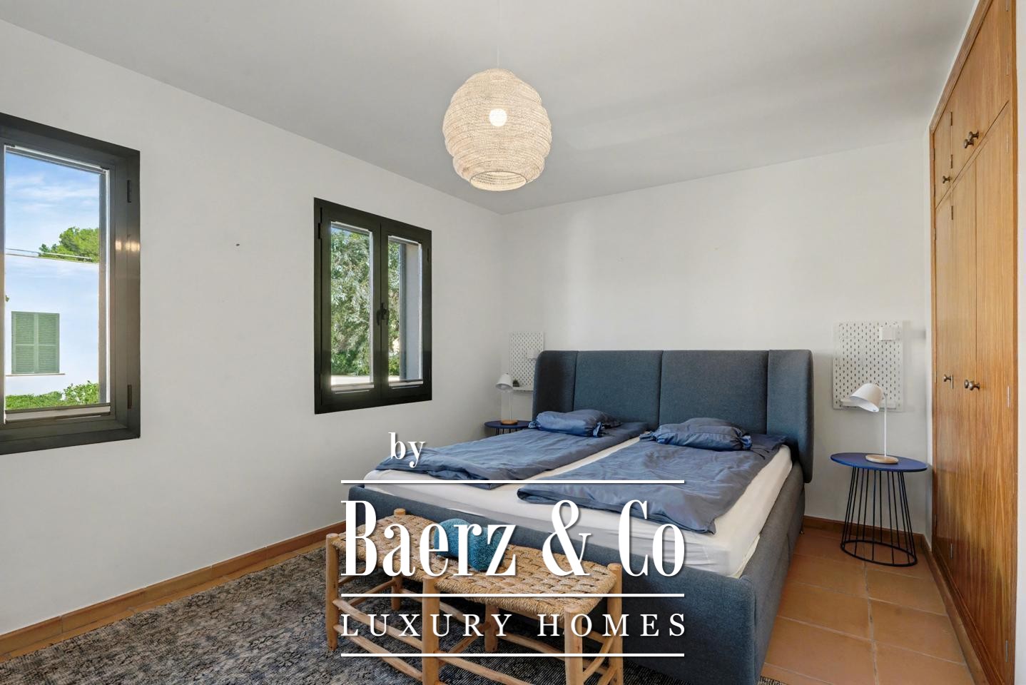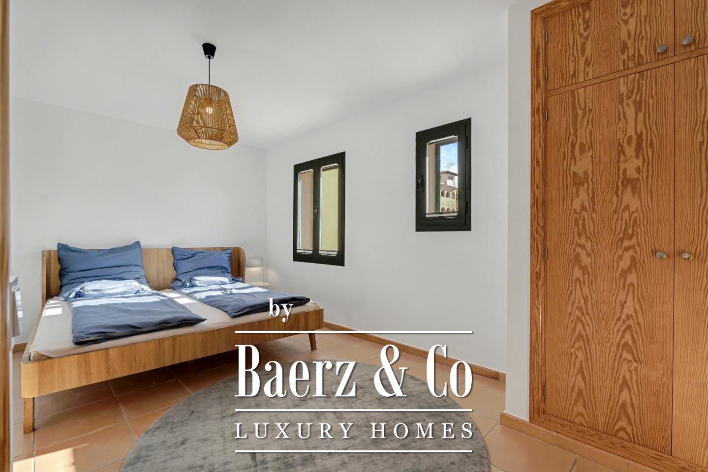 De hoofdslaapkamer beschikt over een en-suite badkamer, terwijl de gastenslaapkamer en de aparte complete badkamer comfort en rust waarborgen. Via de torentrap bereikt u het privé dakterras voor zonuren en een adembenemend uitzicht over de baai. Airconditioning, een alarmsysteem en gezamenlijke parkeergelegenheid bieden extra comfort en veiligheid.