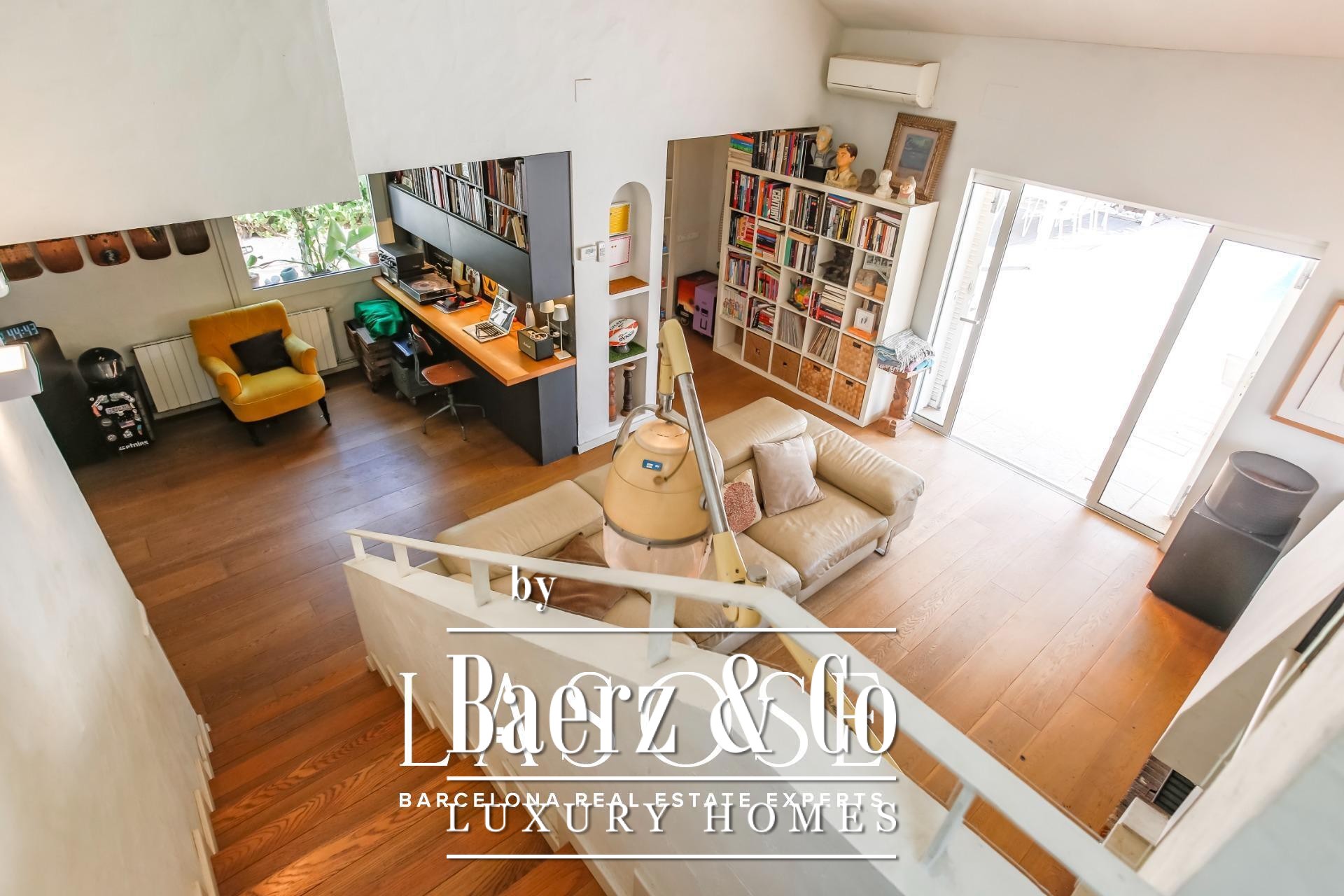 Het interieur ontvouwt zich in een harmonisch ritme. Een elegante living met open haard loopt over in de tuin en de compleet uitgeruste keuken met centraal werkeiland grenst aan een privépatio en parkeergelegenheid. Op de begane grond zorgt een gastenverblijf of werkplek voor extra flexibiliteit, terwijl de bovenverdieping drie lichte tweepersoons slaapkamers biedt met uitzicht op de tuin en plafonds van dubbele hoogte. Verfijnde afwerkingen en neutrale tinten onderstrepen overal de natuurlijke elegantie van de architectuur.