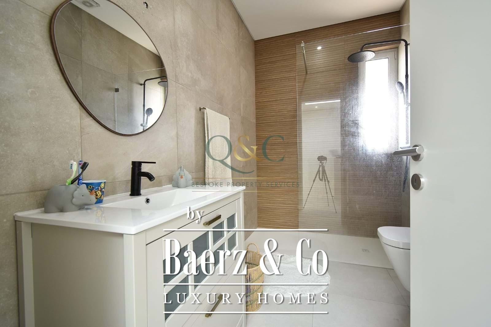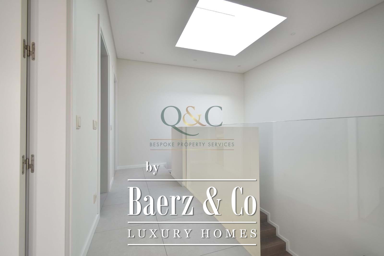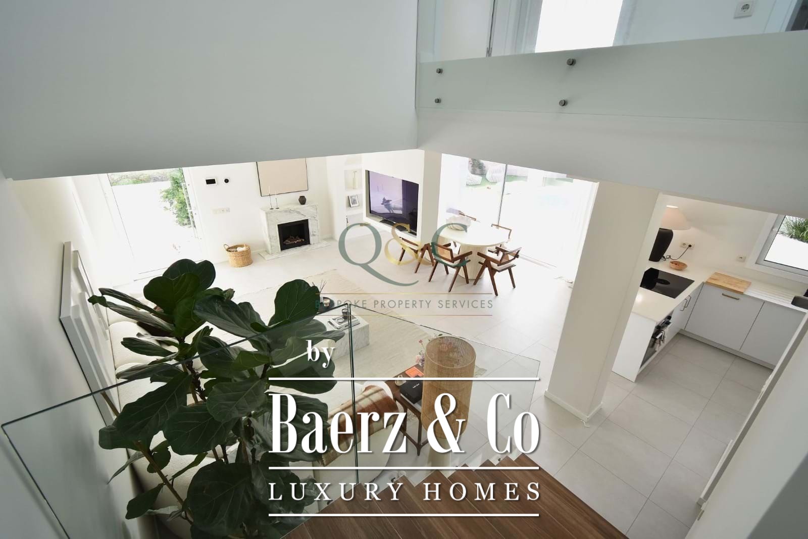 De eerste verdieping beschikt over twee slaapkamers, een complete badkamer en een master suite van 28 m² die uitkomt op een balkon van 23 m². Daikin klimaatregeling, elektrische rolluiken, een geïntegreerde geluidsinstallatie en vloerverwarming in de badkamers verhogen het comfort. Gebouwd in 2023 in een cluster van vier woningen, deelt dit huis slechts een achterzijde, waardoor uitzonderlijke privacy wordt gewaarborgd, vooral op het zuidperceel. Tags duiden op een gunstige ligging ten opzichte van luchthaven en strand.