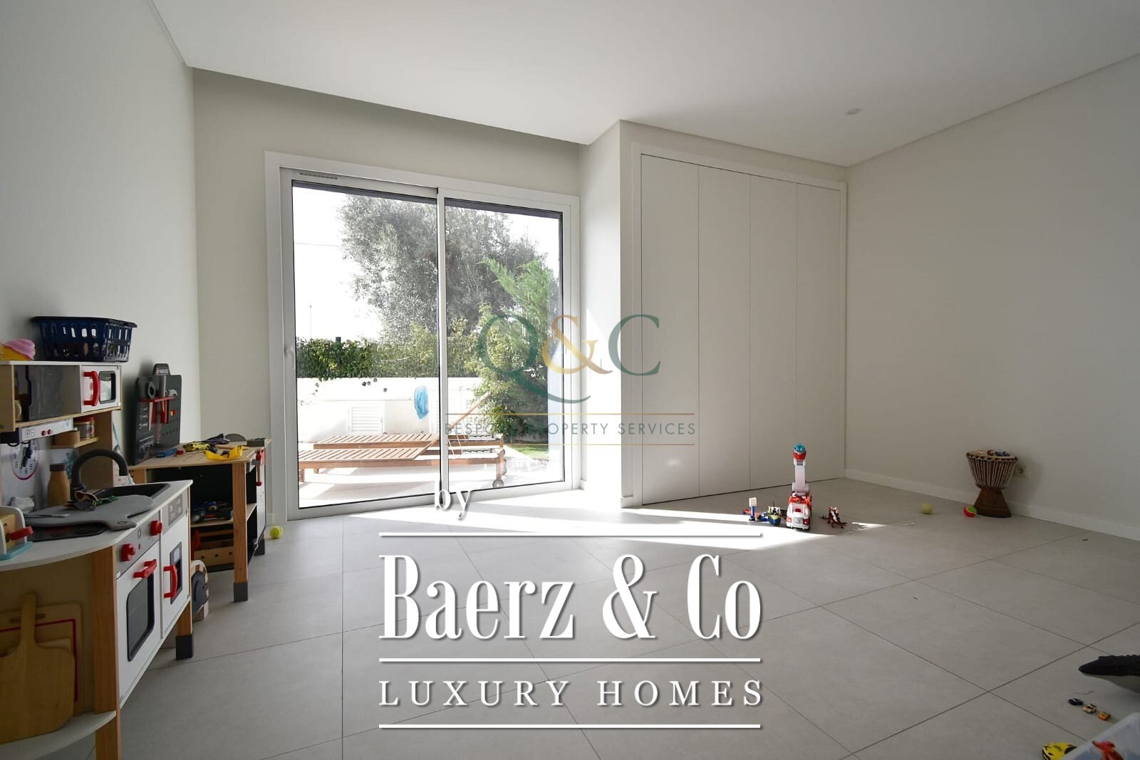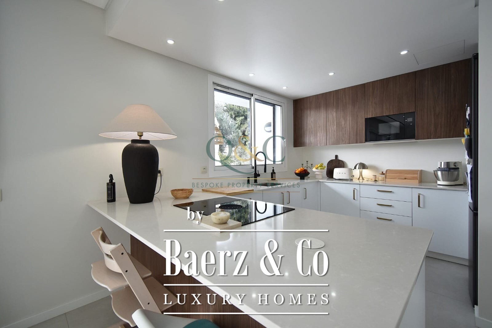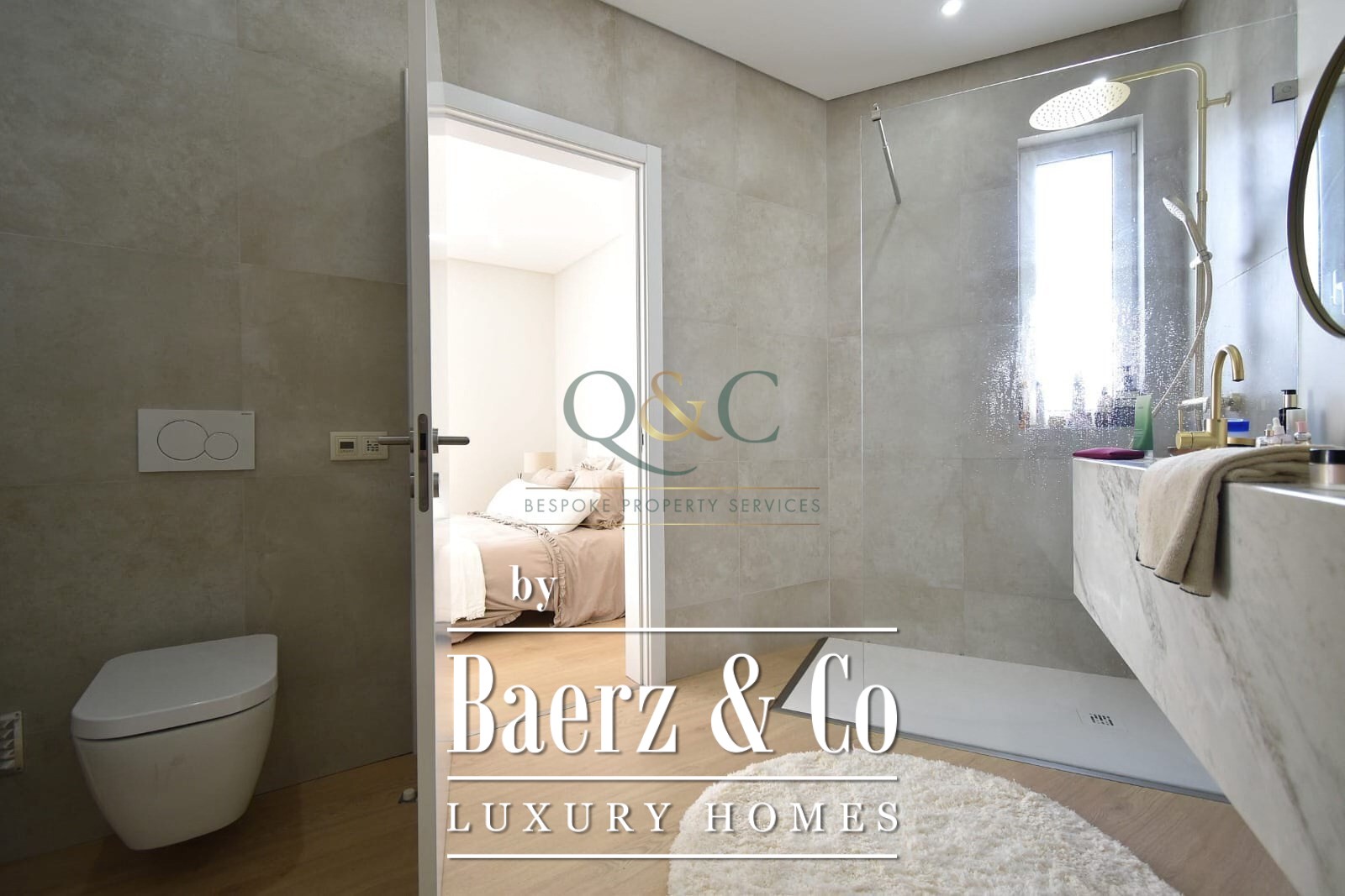 Op de begane grond zorgen de open woon- en eetkamer met marmeren ethanolhaard voor een subtiele balans tussen het binnenleven en zonlicht, ondersteund door centrale airconditioning. De open keuken, wasruimte en bijkeuken ondersteunen het dagelijks comfort, terwijl het terras uitnodigt tot ontspanning aan het chloorzwembad en de tuin, ontworpen voor stilte en rust. Vrijwel elke kamer is op het zuiden georiënteerd en baadt in overvloedig natuurlijk licht.