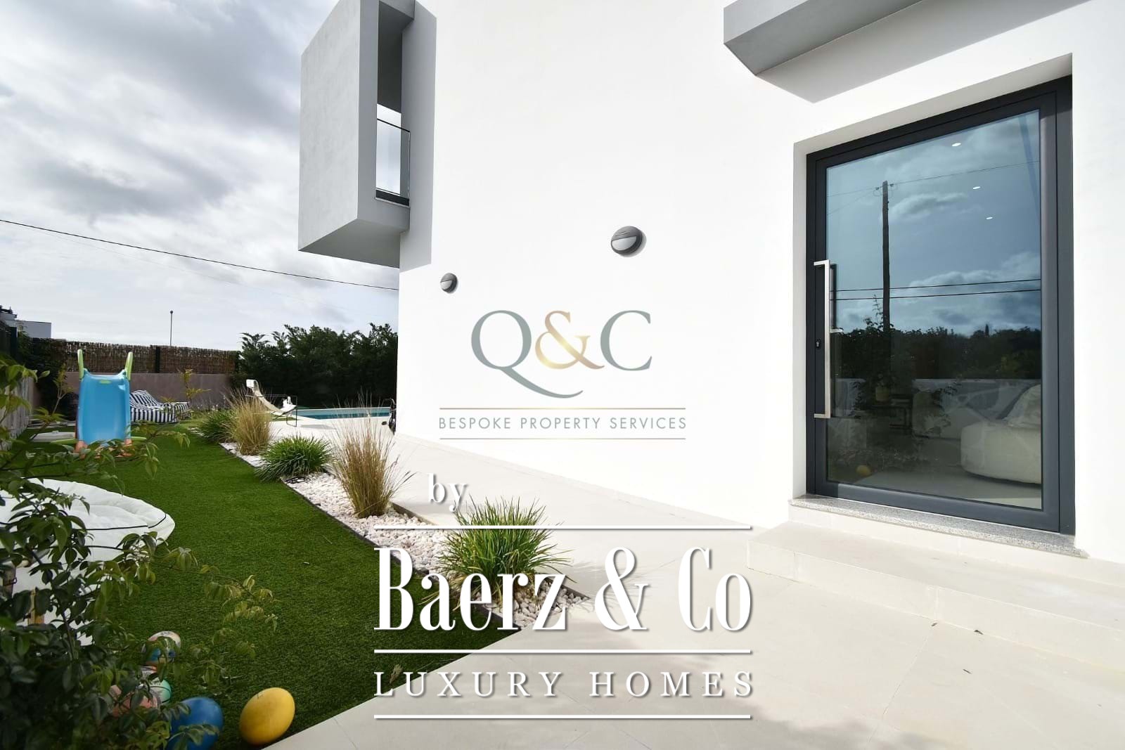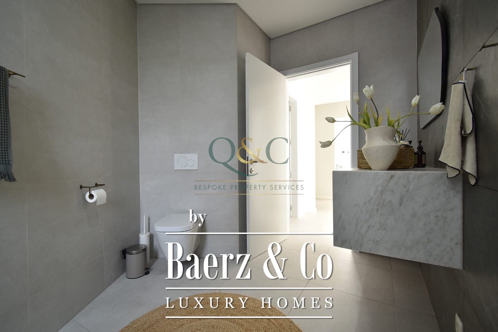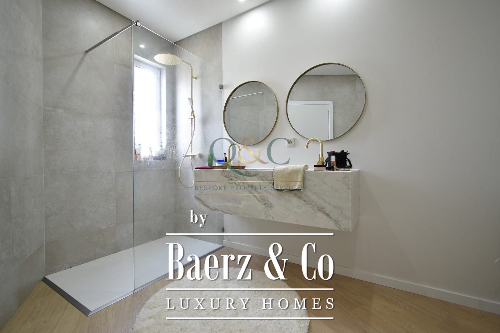 Op de begane grond zorgen de open woon- en eetkamer met marmeren ethanolhaard voor een subtiele balans tussen het binnenleven en zonlicht, ondersteund door centrale airconditioning. De open keuken, wasruimte en bijkeuken ondersteunen het dagelijks comfort, terwijl het terras uitnodigt tot ontspanning aan het chloorzwembad en de tuin, ontworpen voor stilte en rust. Vrijwel elke kamer is op het zuiden georiënteerd en baadt in overvloedig natuurlijk licht.