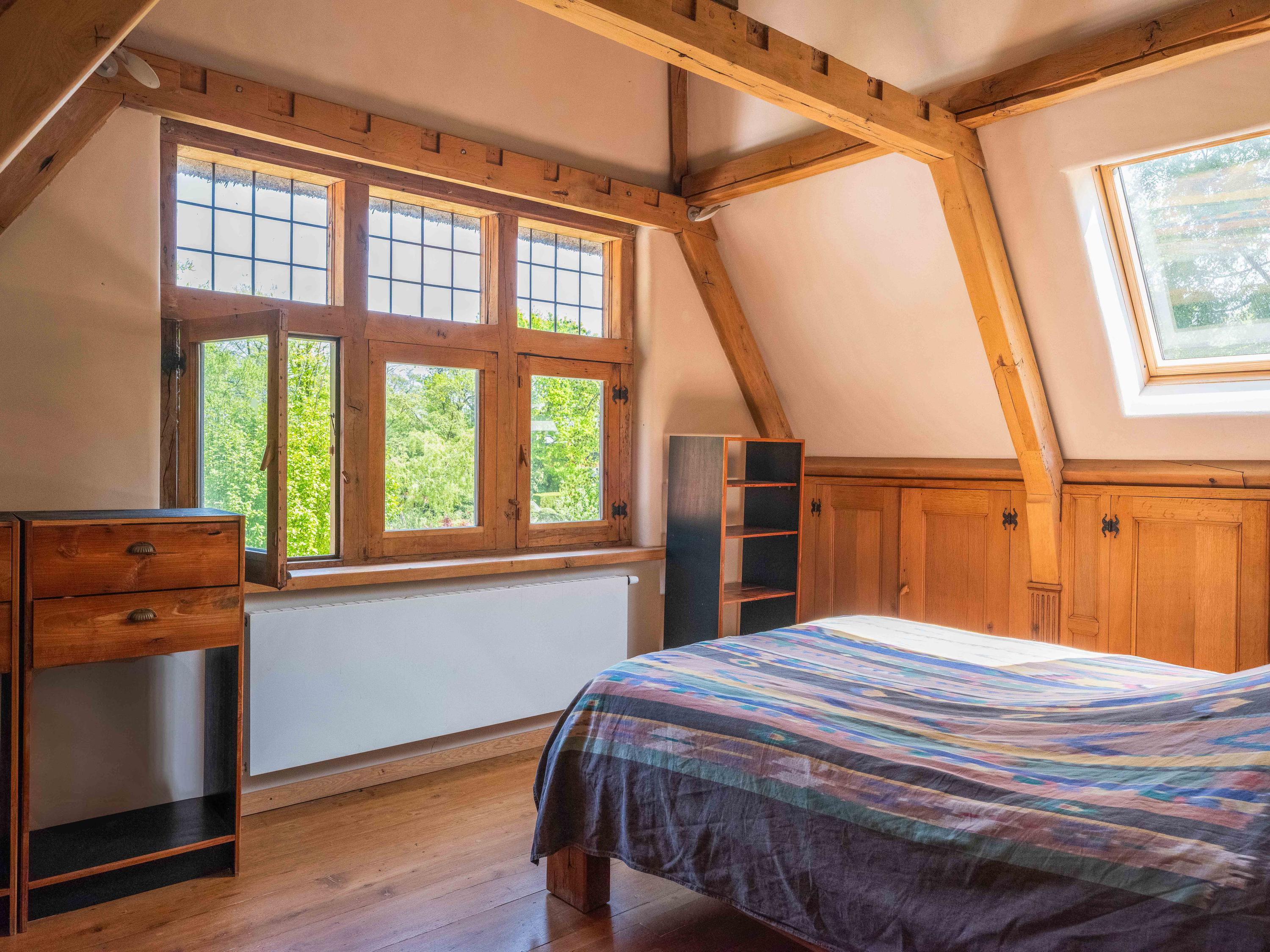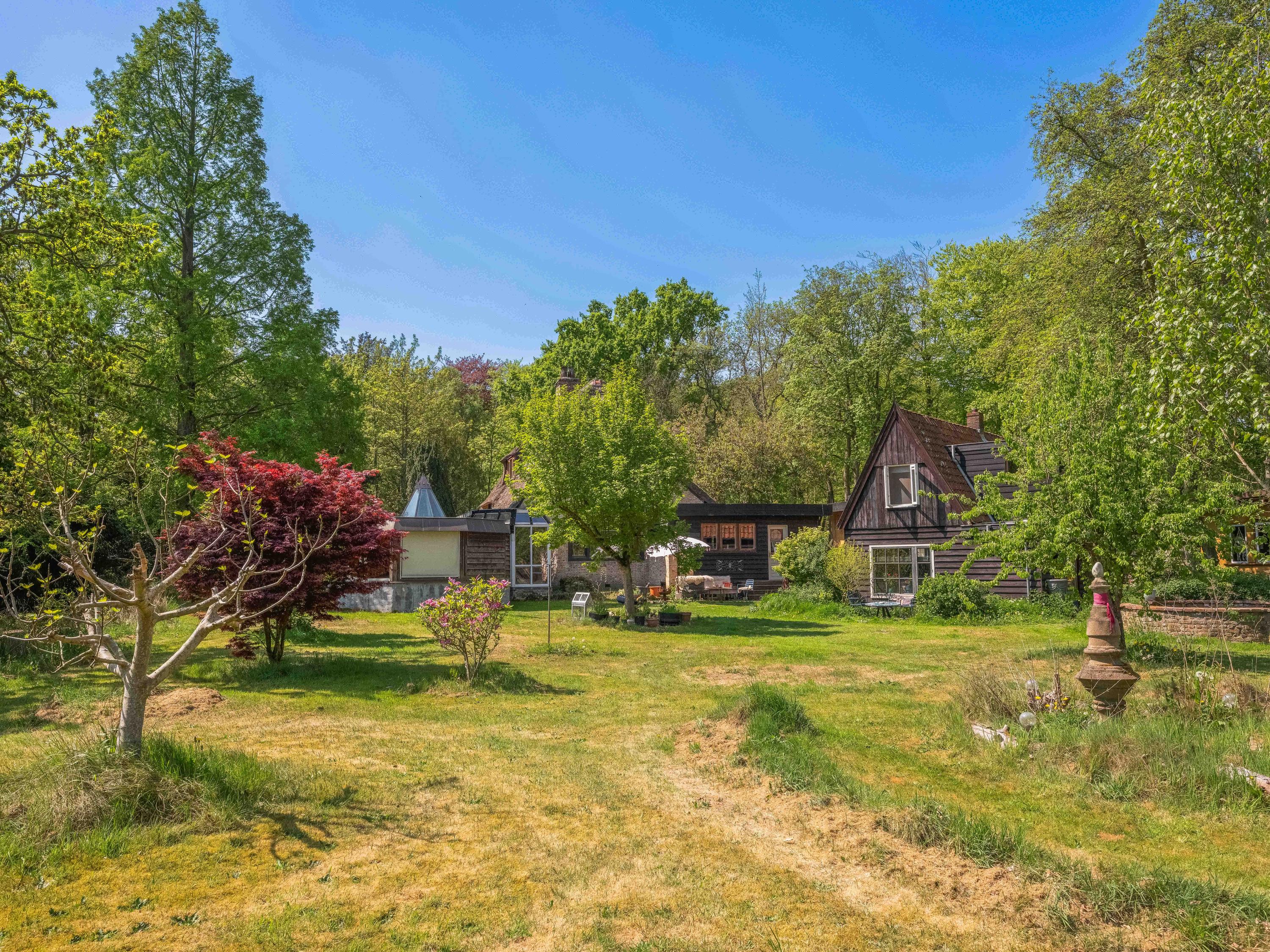 Via een langgerekt bospad bereikt u dit markante pand, gebouwd in 1935 met 17e-eeuwse bouwmaterialen naar een ontwerp van architect Royaards. Het huis ademt karakter en historie: robuuste open haarden, die momenteel niet functioneel zijn maar verbouwd mogen worden, antieke elementen zoals robuuste eikenhouten balken en vloeren, en lemen muren die zorgen voor een behaaglijk woonklimaat en een weldadige nachtrust. Hier ervaart u de luxe van stilte, ruimte en privacy, omgeven door de geur van het bos, het zachte ruisen van de bomen én het gezang van talloze vogels – dit is werkelijk een vogelparadijs.
