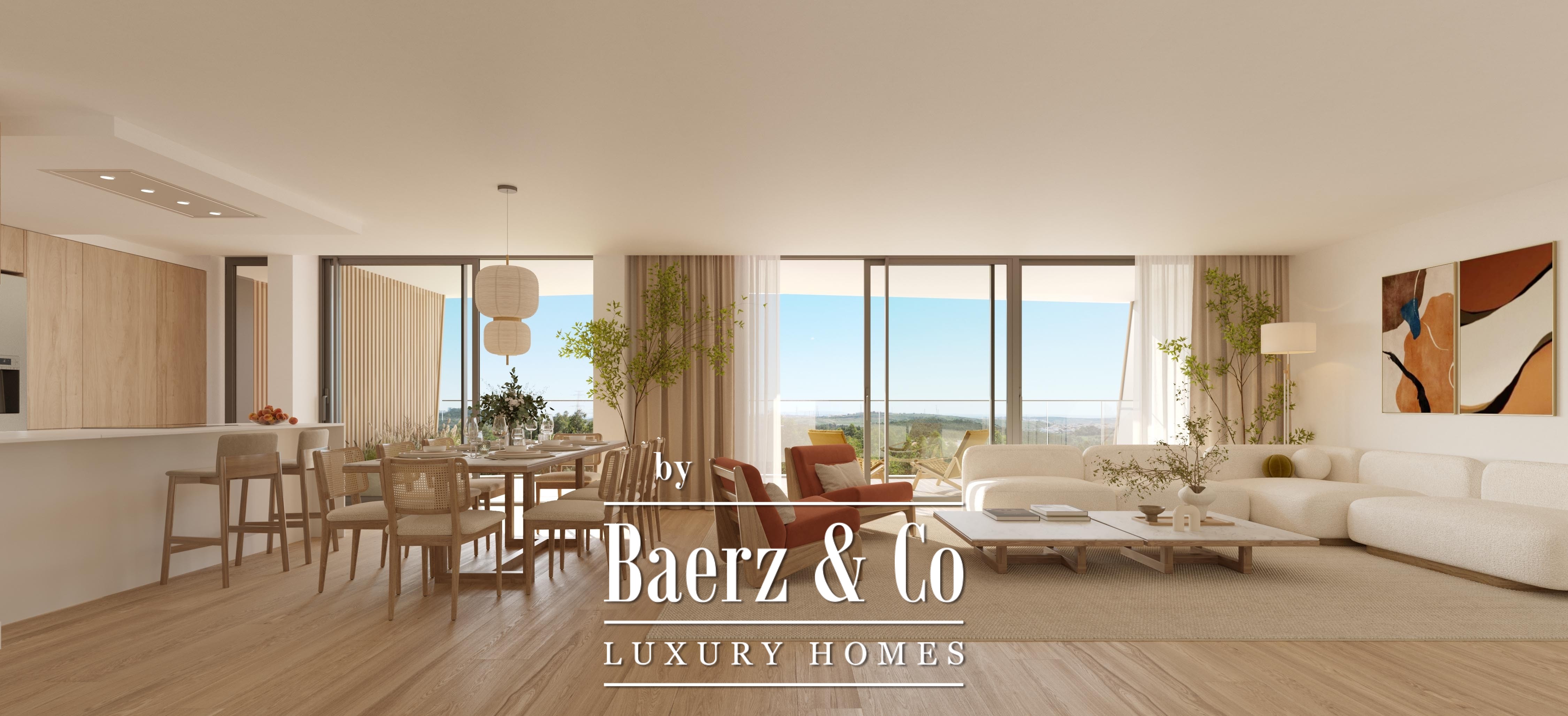 This one-bedroom apartment, under construction, located on the ground floor of a building at Belas Clube de Campo GOLF, Sintra, presents an excellent opportunity for those seeking comfort and functionality. The interior is characterized by its natural light, provided by large windows facing west and south. With individual air conditioning that ensures maximum well-being year-round, this space is ideal for both quiet moments and entertaining. The kitchen is fully equipped with modern appliances—a ceramic hob, built-in oven, and efficient extractor fan—and also features a microwave and refrigerator, along with a practical water heater. Lacquered cabinetry lends a contemporary feel, while the living areas feature vinyl flooring that combines aesthetics with durability.
