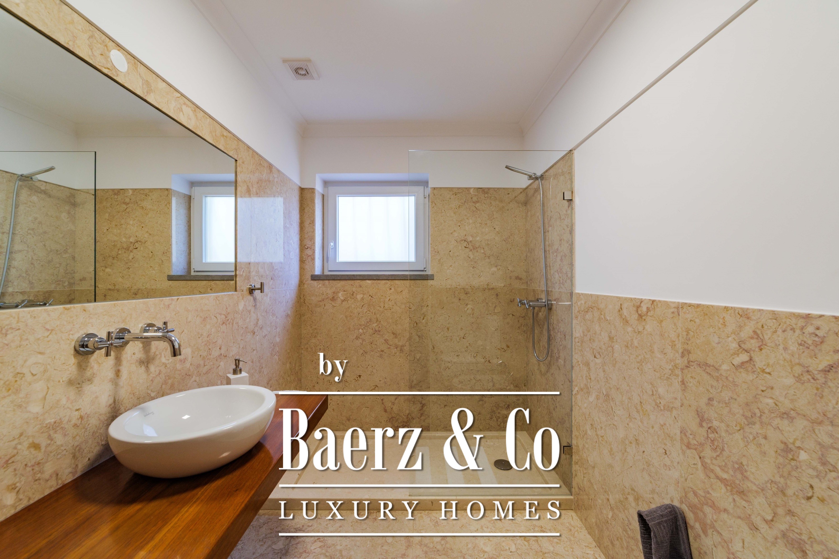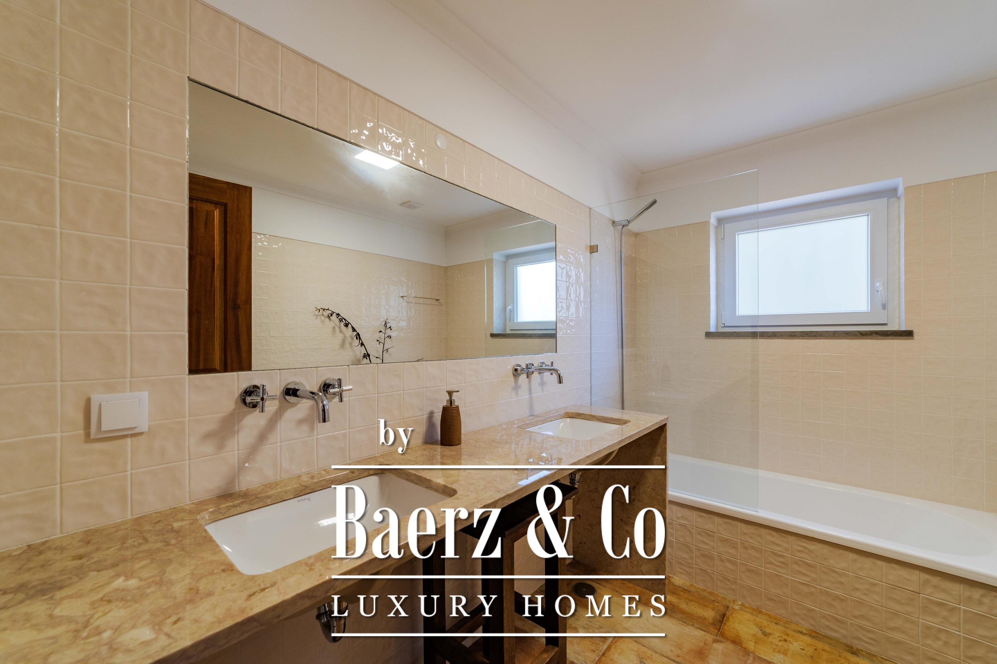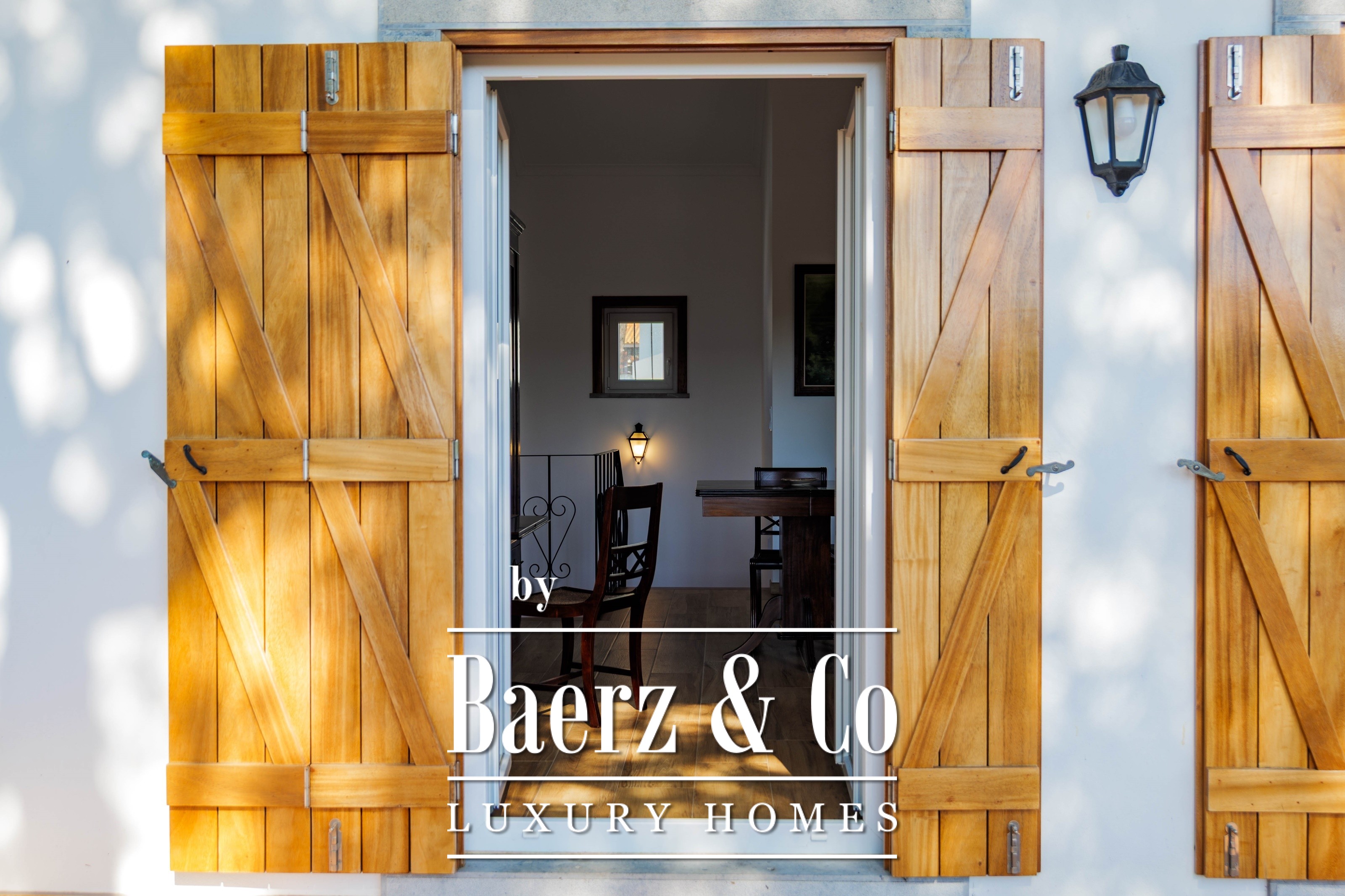 De hoofdresidentie beslaat twee woonlagen en 302 m², voltooid in 2023 met bijzondere aandacht voor authentieke materialen: exotische houtsoorten, natuursteen, traditionele dakpannen van gebakken klei en met de hand vervaardigd smeedijzeren details. Zonlicht van oost tot west vult harmonieus de royaal ingedeelde kamers—ruime woonvertrekken met open haard, een volledig uitgeruste keuken met directe toegang tot de tuin, privé-suites en terrassen georiënteerd op het rustgevende uitzicht over de heuvels van Sintra en de Atlantische Oceaan.