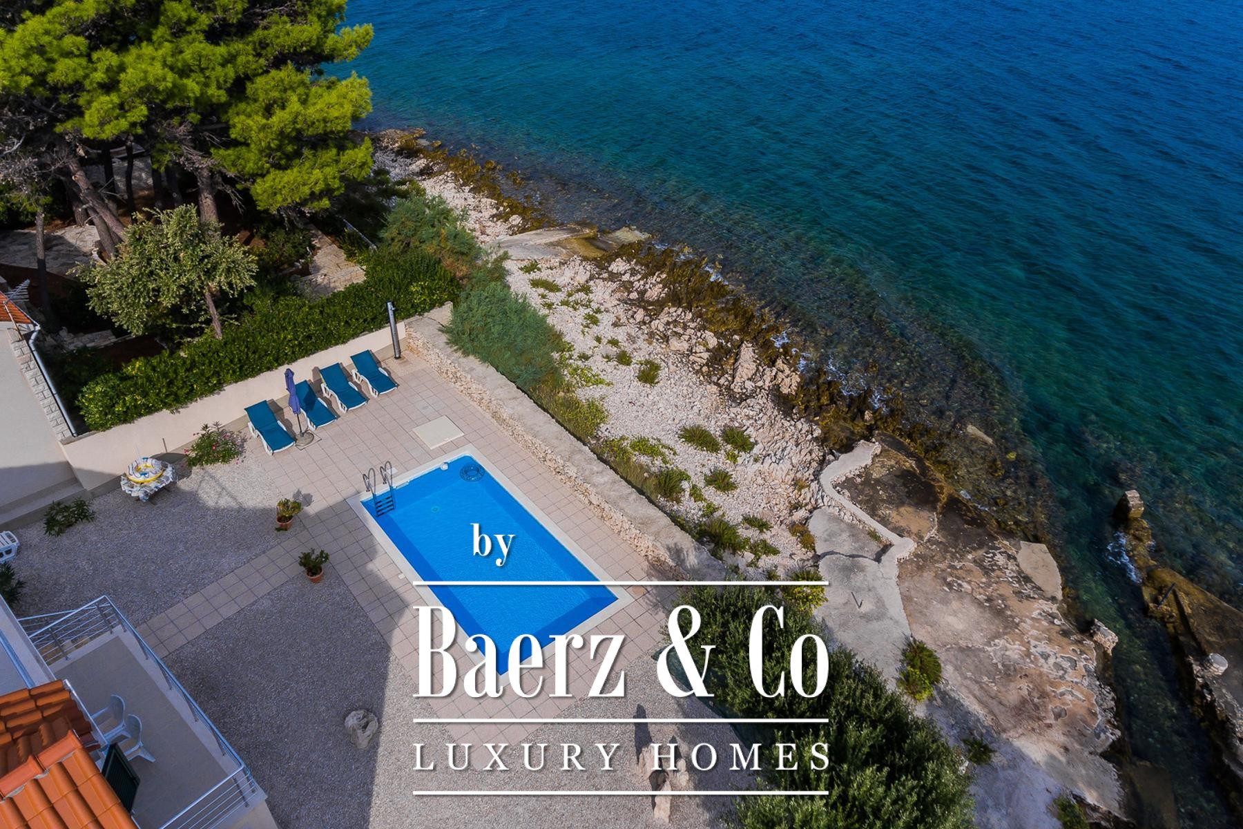 Villa Supetar met zwembad op de eerste rij aan zee is gelegen in het rustige dorp Splitska op Brač en biedt een zeldzame mix van privacy, directe toegang tot de Adriatische Zee en ingetogen architectonische helderheid. De villa staat op een perceel van 605 m² en beschikt over een netto woonoppervlak van 220 m², verdeeld over drie ruime verdiepingen.
