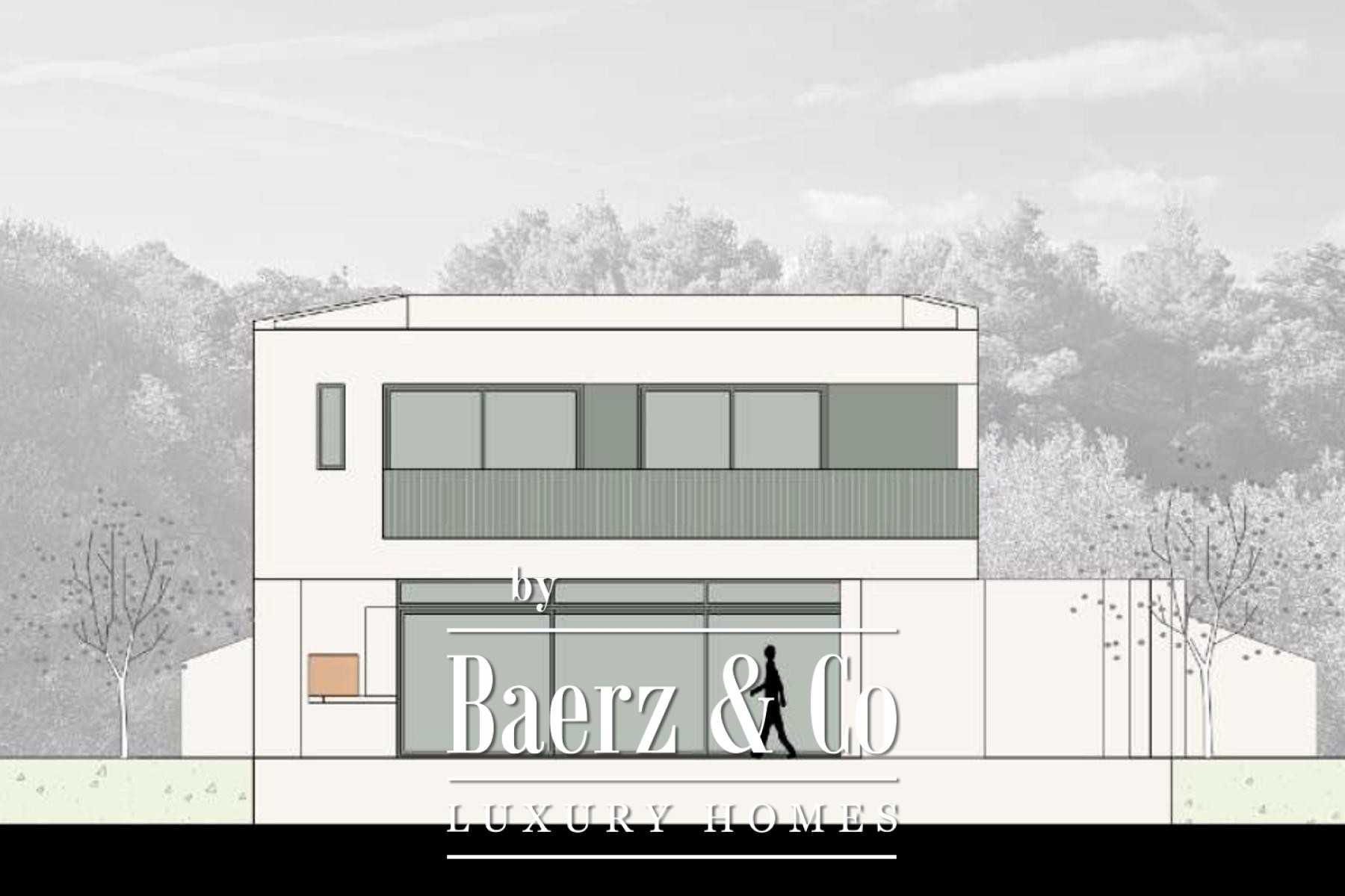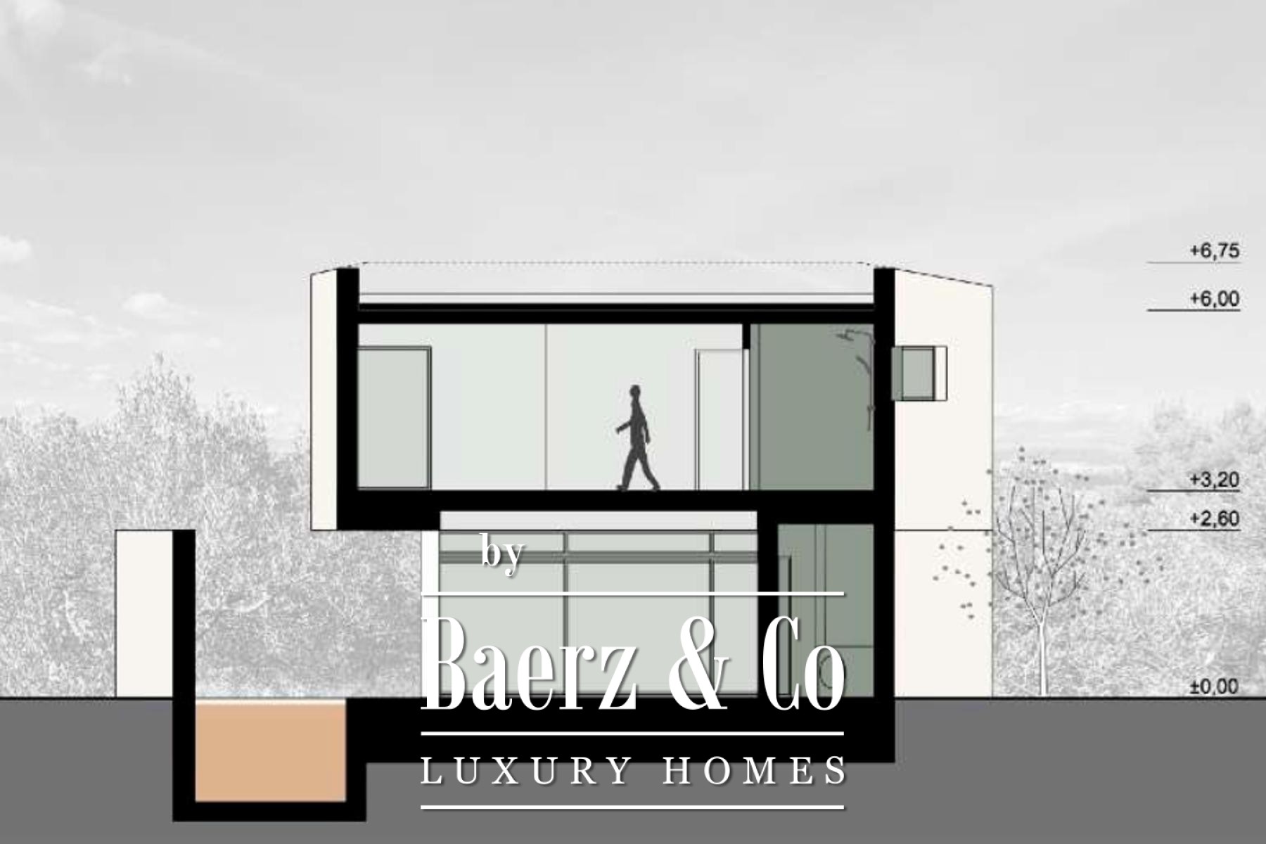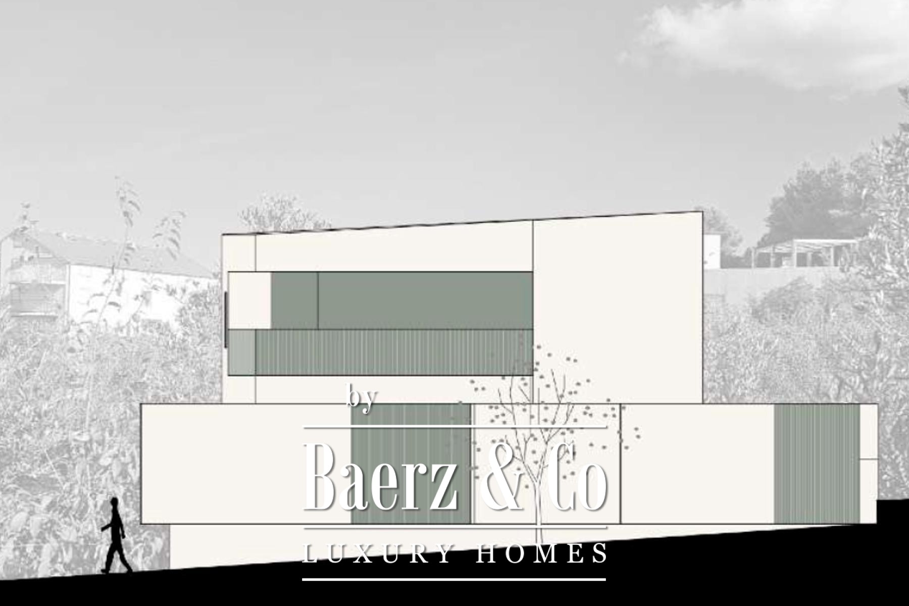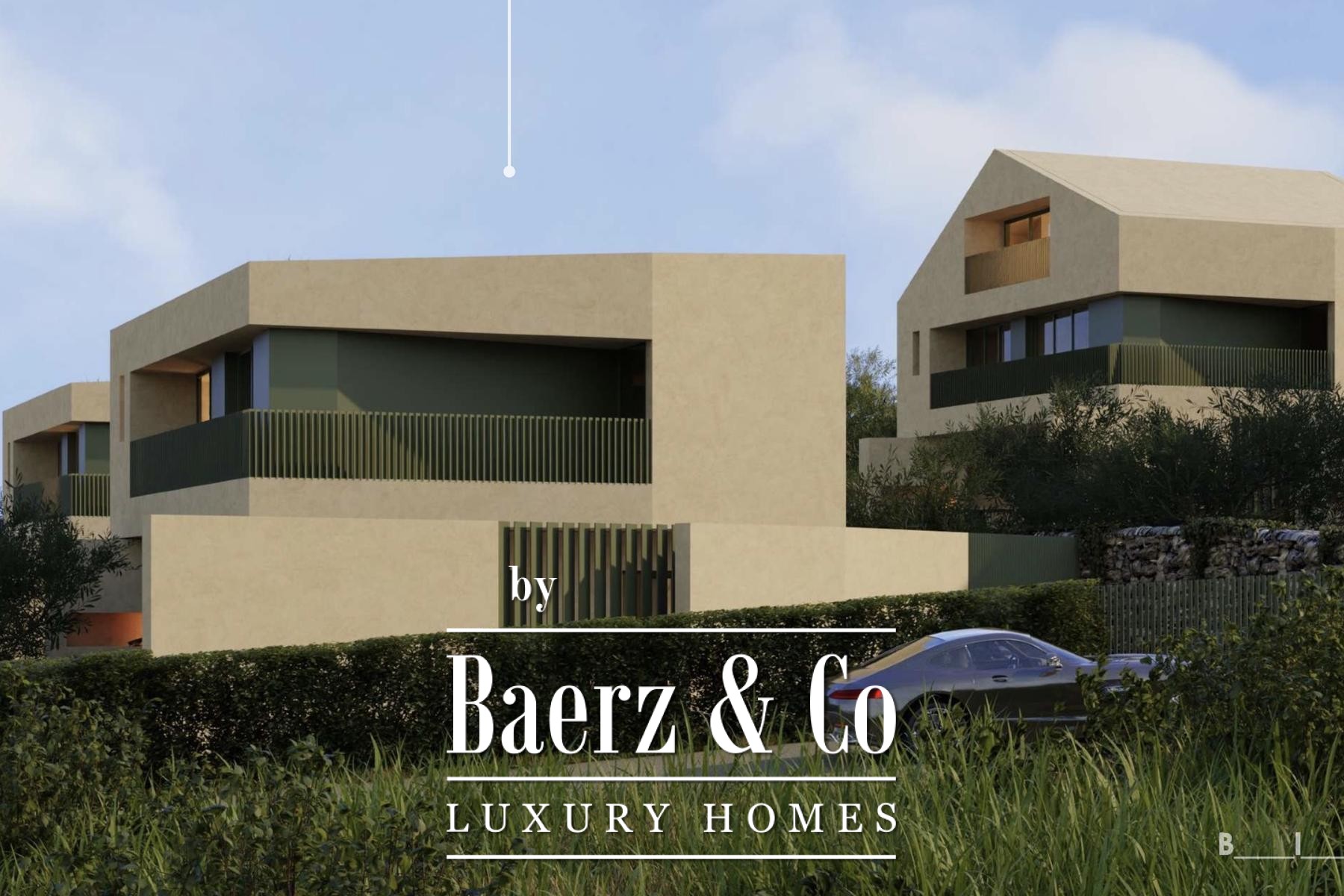 Op de bovenverdieping beschikken drie slaapkamers elk over een eigen badkamer en toegang tot een loggia, georiënteerd op het open zeezicht. De buitenruimte is ingericht met een mediterrane tuin, een buitenbarbecue, royale terrassen, balkons en meerdere buitenparkeerplaatsen die discreet aan de westzijde van het perceel van 286 m² zijn geplaatst.