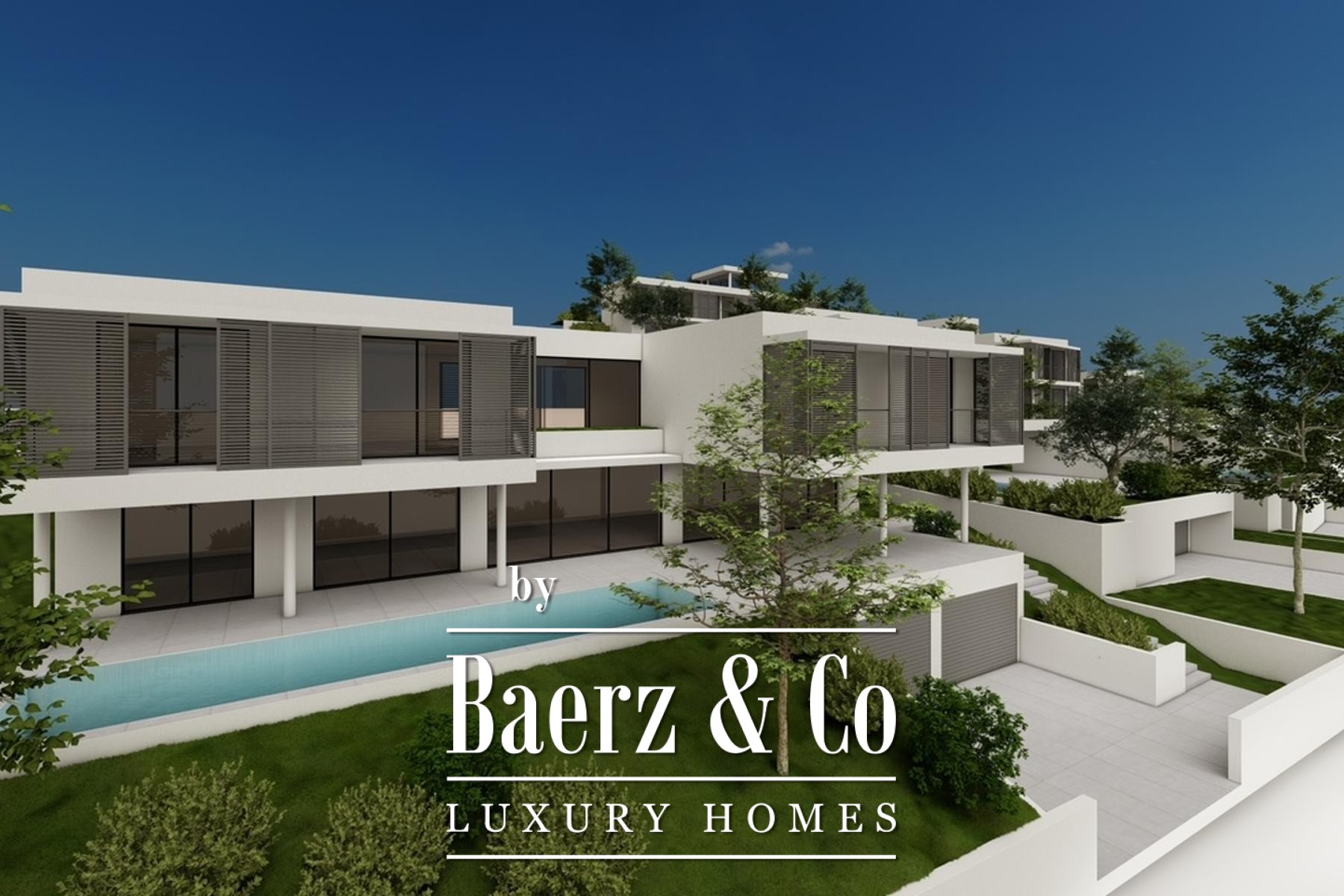 Het souterrain herbergt de garage en technische ruimtes, wat zorgt voor privacy en orde bij binnenkomst. Op de begane grond lopen de open keuken, eet- en woonkamer naadloos over in royale terrassen, waar een zwembad en vrij uitzicht op zee zorgen voor een vloeiende overgang tussen serene interieurs en het buitenlicht. Elk van de vier slaapkamers op de bovenverdieping heeft een eigen badkamer en direct toegang tot een terras, waardoor panoramische vergezichten en individuele privacy behouden blijven.