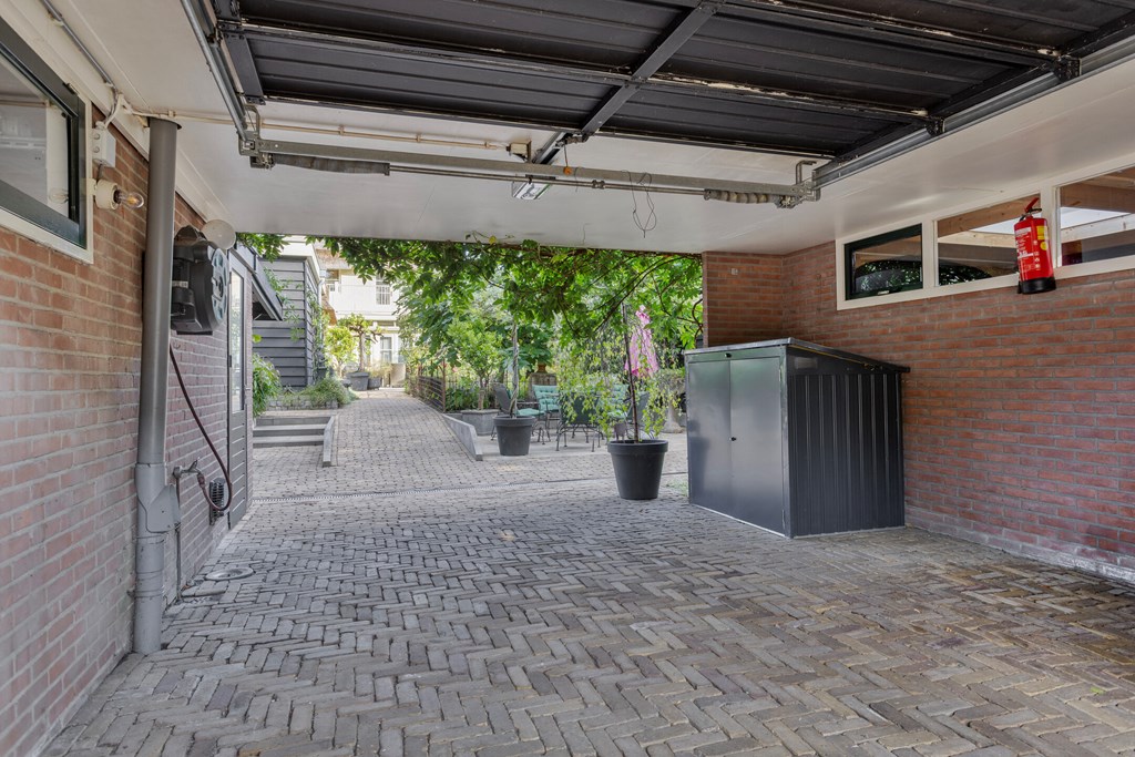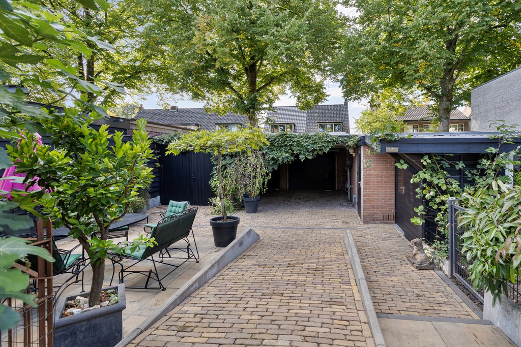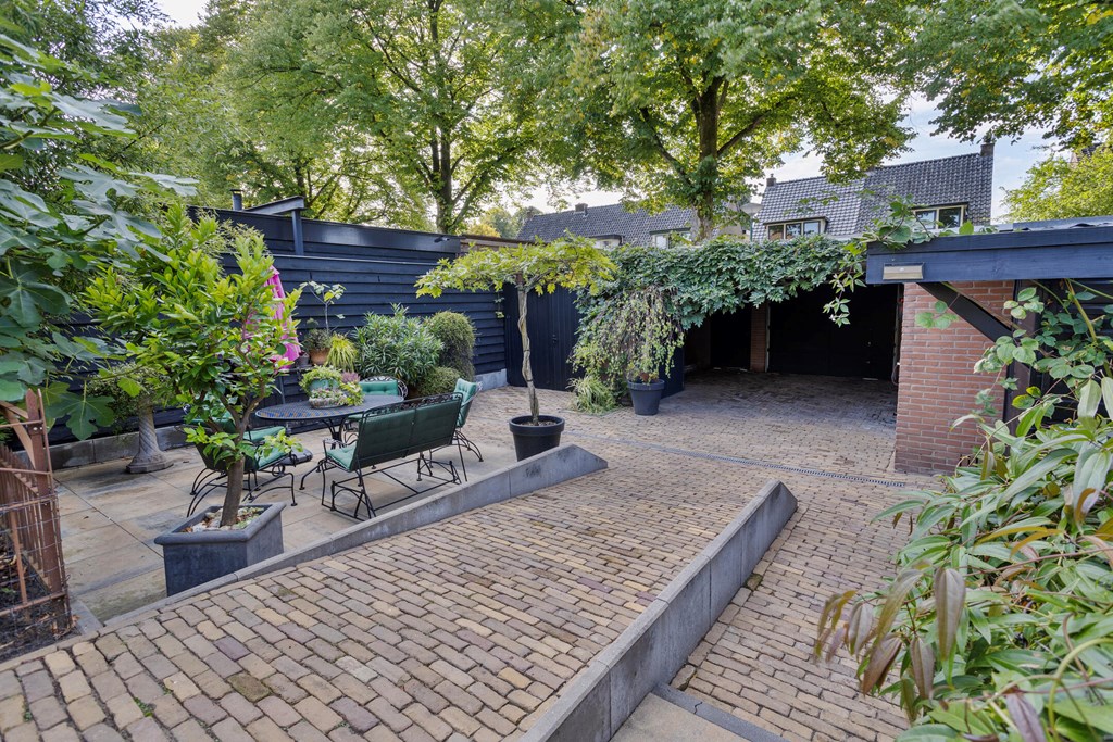De tuin is zonder twijfel een van de meest bijzondere elementen van deze villa. Op een perceel van 674 m² eigen grond heeft u hier genoeg ruimte, privacy en rust. De tuin strekt zich ver naar achteren uit en biedt meerdere terrassen, sierlijke beplanting en verrassende doorkijkjes. Achterin staat een grote vrijstaande garage met aangrenzend een afsluitbare carport en een berging met dubbele lichtkoepel. Als extra toevoeging is er een knus tuinkamertje, sfeervol afgewerkt en voorzien van een raam om lekker te ontsnappen of creatief bezig te zijn. De tuin is ontworpen om elk seizoen tot zijn recht te laten komen: van het eerste voorjaarzonnetje tot de warme zomeravonden. Het is een plek waar u kunt eten, loungen, tuinieren en ontspannen — alles in uw eigen groene omgeving.