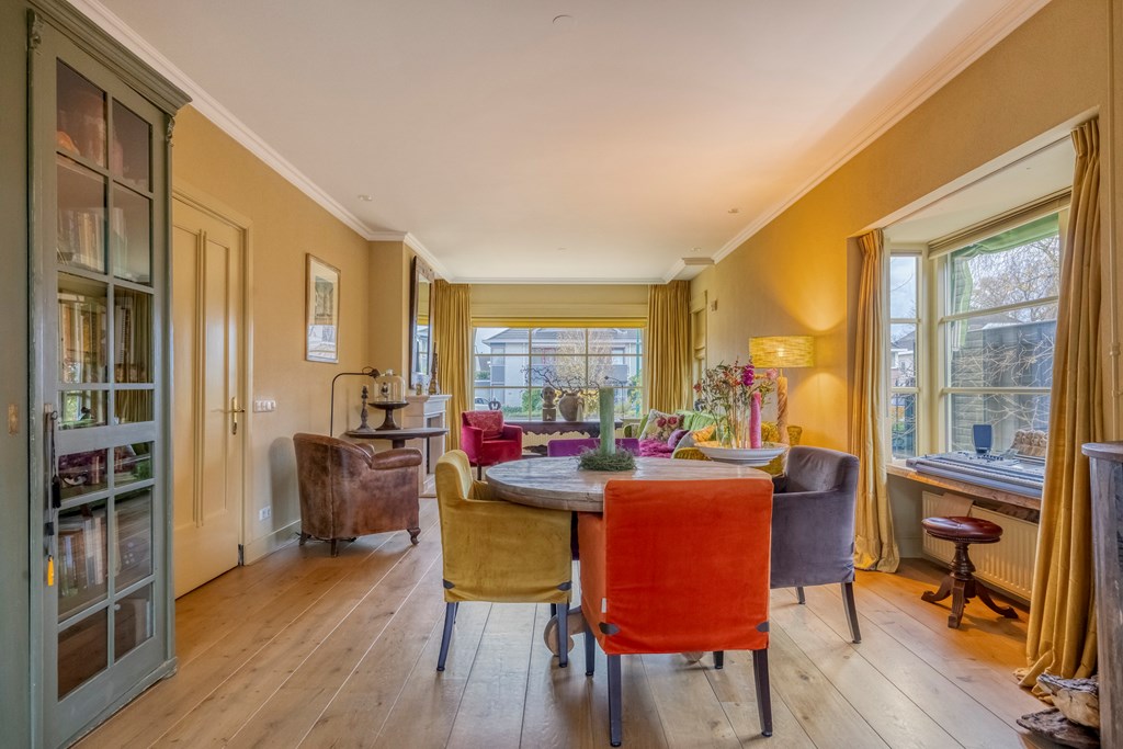 In deze statige jaren ’20 villa ervaart u direct hoe authentieke charme en hedendaagse luxe elkaar kunnen versterken. De woning telt circa 212 m² woonoppervlakte en biedt u royale leefruimtes, een sfeervolle woonkamer met meerdere zithoeken, een prachtige woonkeuken, vier slaapkamers, twee badkamers en een royale tuin die als verlengstuk van het wooncomfort voelt. Het rieten dak en de warme kleurstelling van de gevel geven de villa zijn herkenbare, bijna romantische uitstraling, terwijl binnen alles is gemoderniseerd met oog voor kwaliteit en sfeer. Van de slaapkamer op de begane grond tot het ruime dakterras en de grote vrijstaande garage achter in de tuin: iedere plek vertelt hetzelfde verhaal. Dit is een woning die met zorg is bewoond en door de jaren heen met liefde is onderhouden en verbeterd. Een huis dat groots aanvoelt zonder afstandelijk te zijn en dat u uitnodigt om hier écht te gaan wonen.