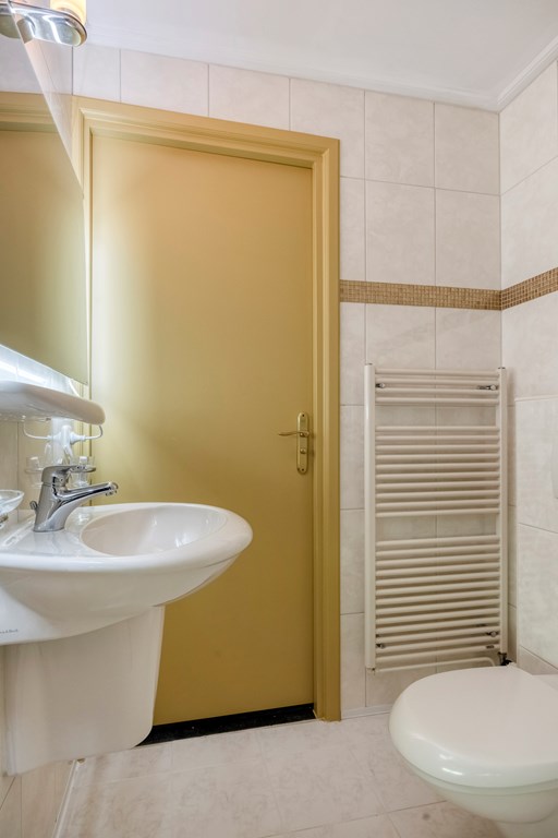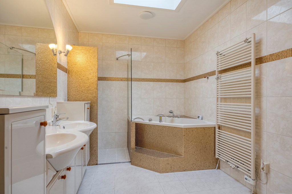 De eerste verdieping brengt u op de lichte overloop met airconditioning, en grenst aan drie ruime slaapkamers en een tweede badkamer. Elke kamer heeft zijn eigen charme en een handig wastafelmeubel. De grootste kamer is eveneens voorzien van airconditioning en biedt toegang tot het royale balkon middels openslaande deuren, vanwaar u uitkijkt over de diepe tuin. De badkamer op deze verdieping is functioneel ingedeeld met een wastafel, douche en toilet. De verdieping voelt luchtig door de ruimte en de hoeveelheid daglicht die overal naar binnen valt.