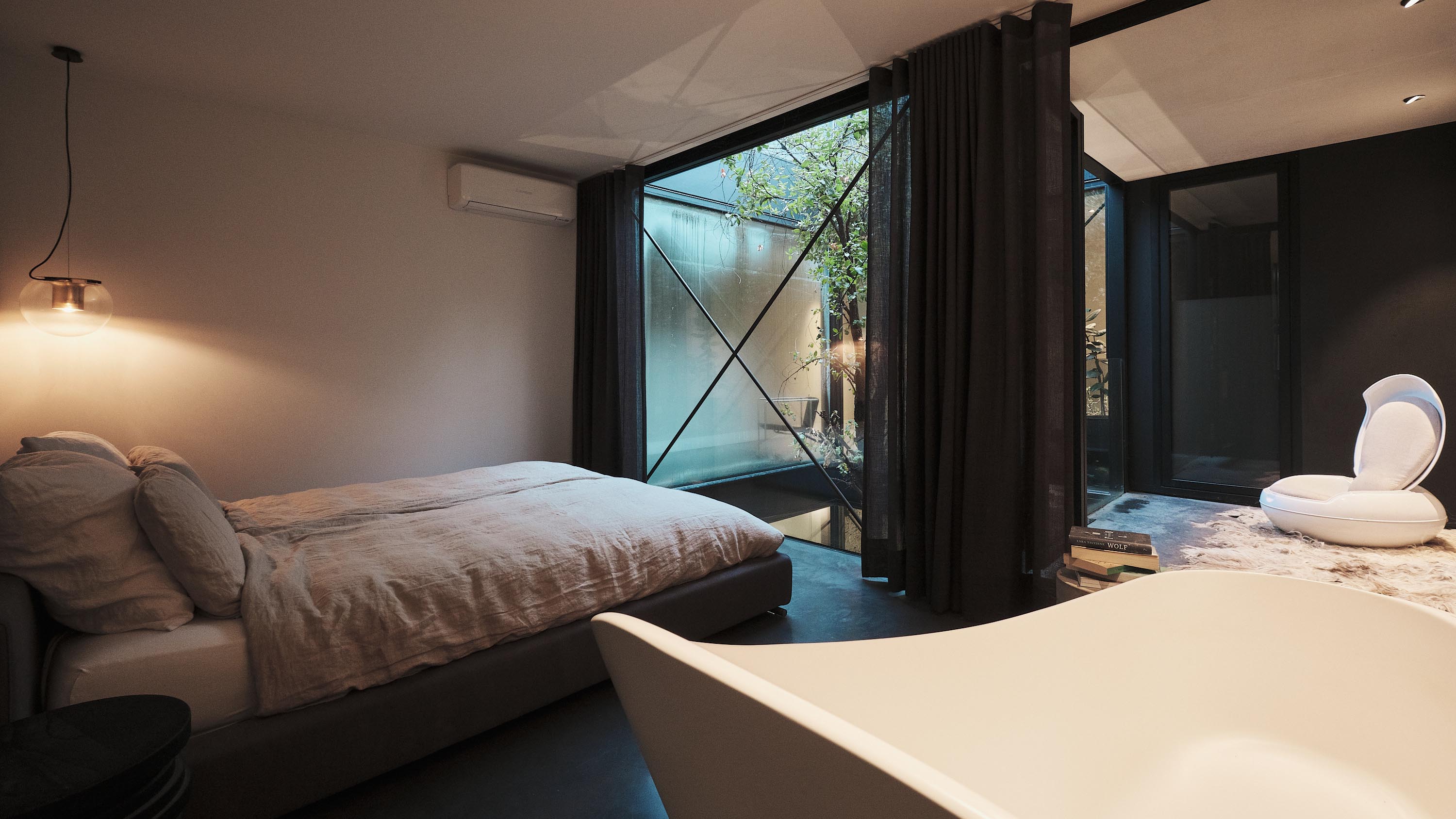 Wat dit project bijzonder maakt, is dat woning en presentatieruimte weliswaar dezelfde ontwerpmentaliteit delen, maar bewust zijn ontworpen als twee zelfstandige entiteiten. Ze functioneren volledig onafhankelijk van elkaar, met elk hun eigen karakter, ritme en rol.