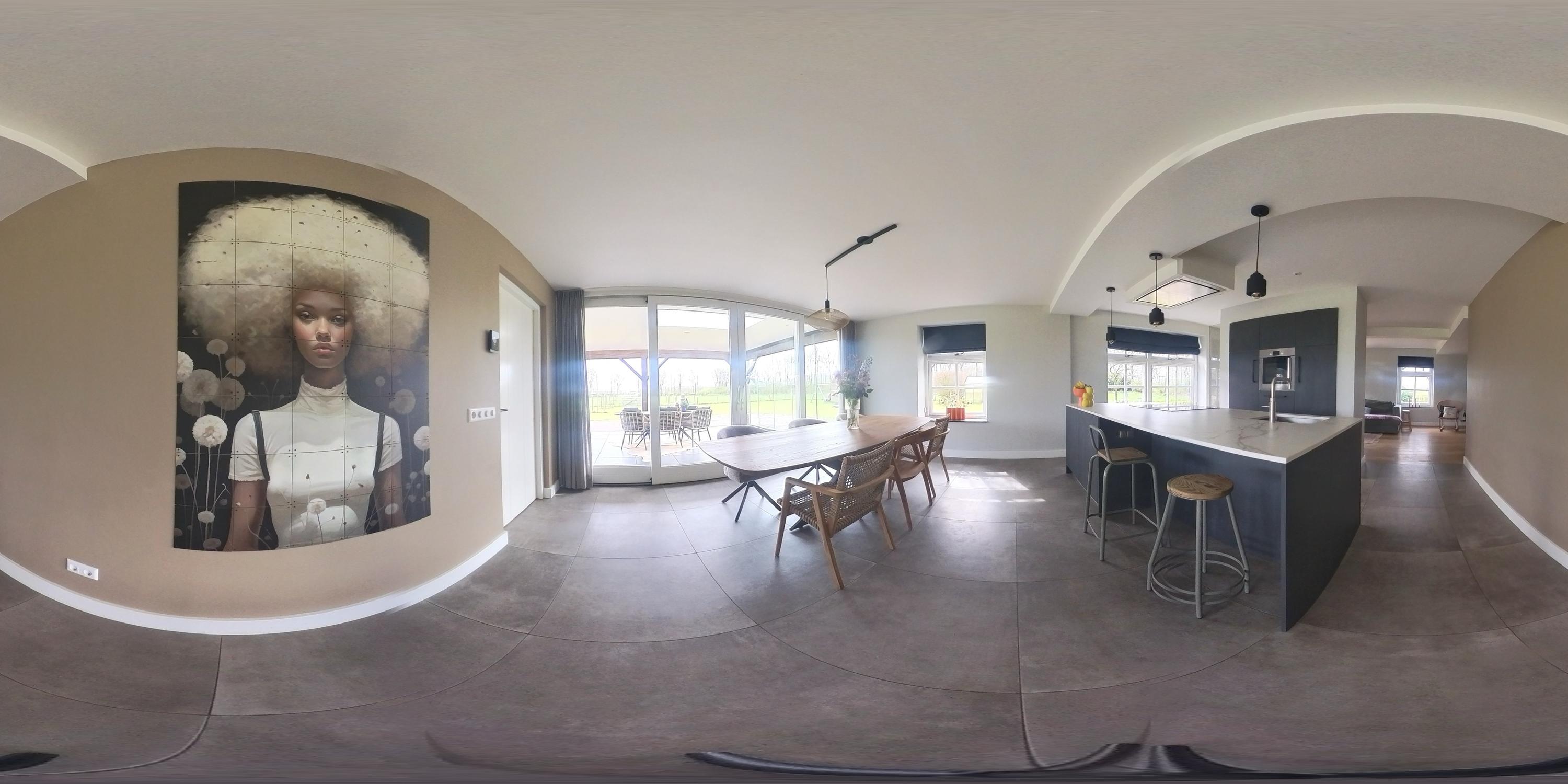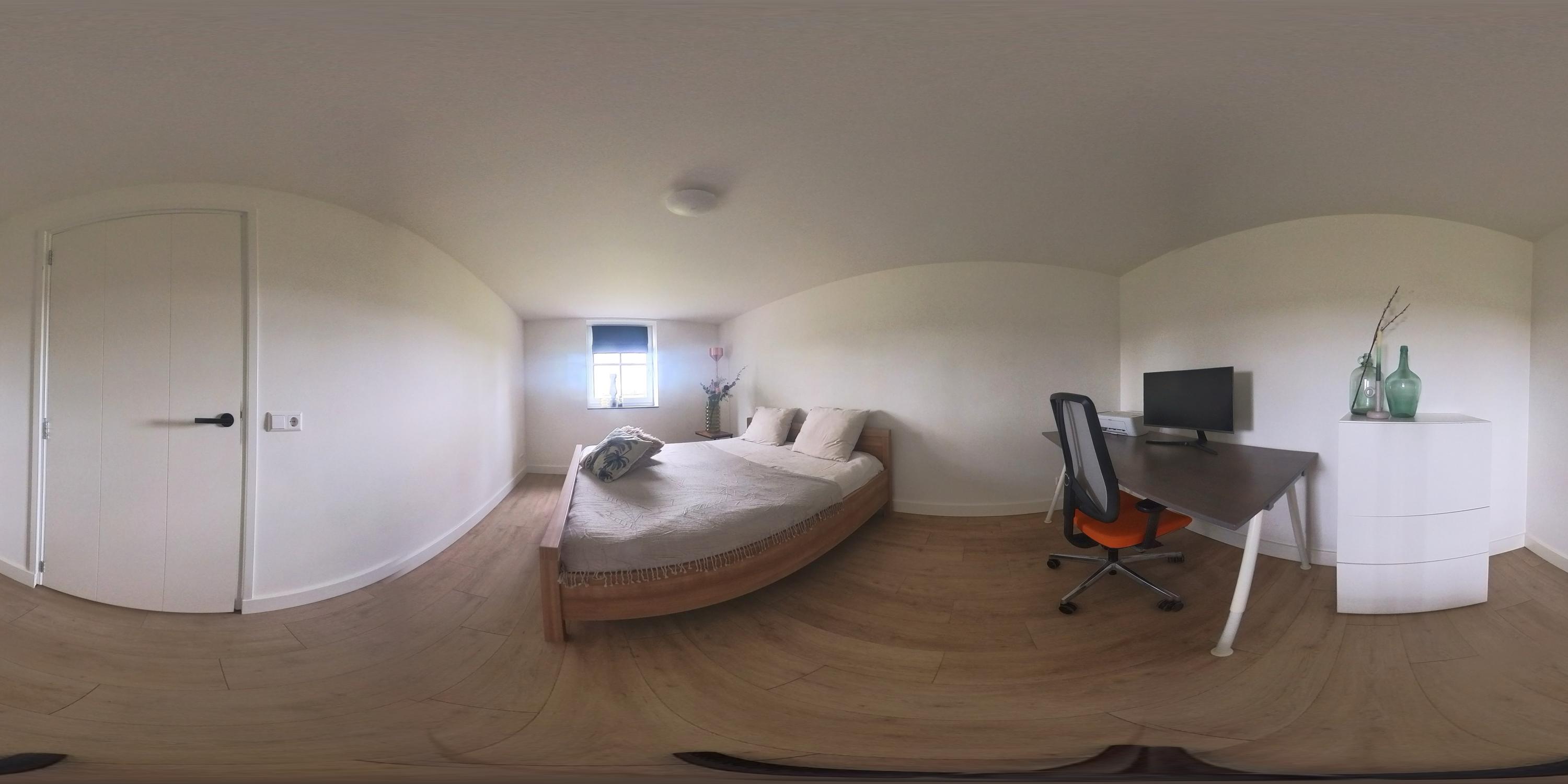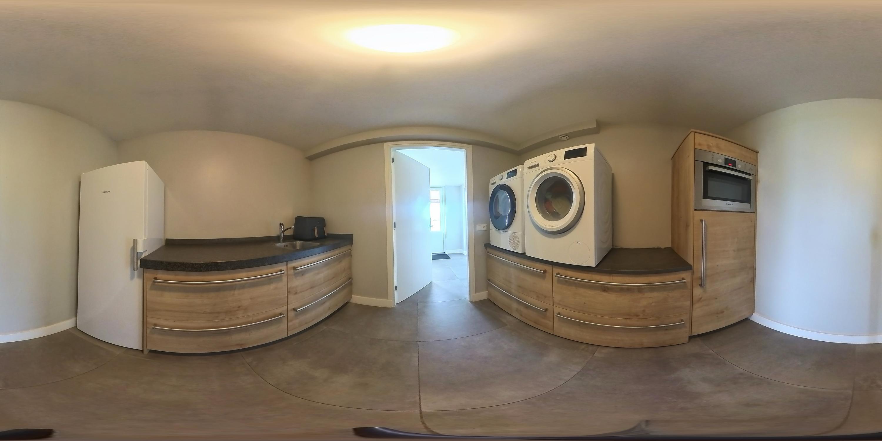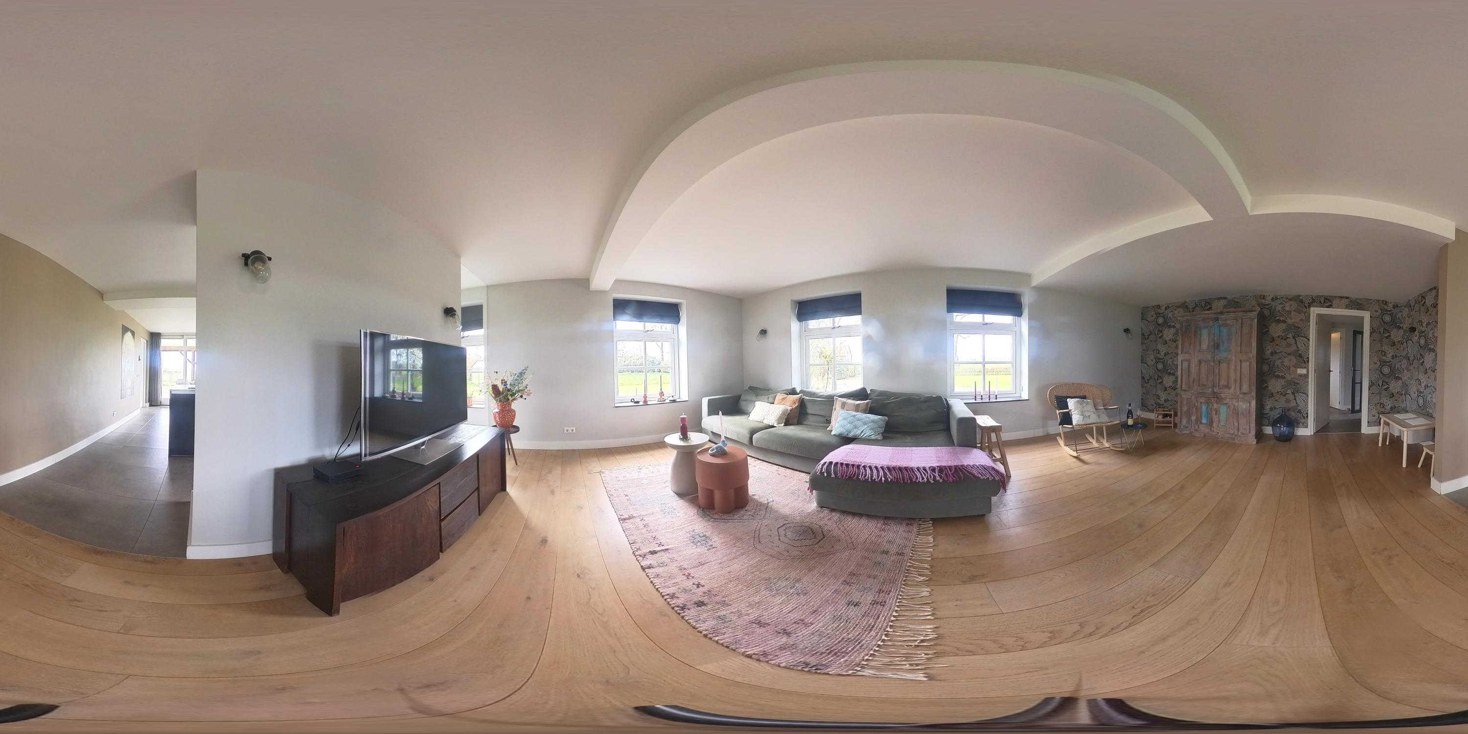 De hal is afgewerkt met een tegelvloer en biedt toegang tot de woonkamer, de slaapkamer en de centrale corridor. In de hal is tevens de vernieuwde meterkast gesitueerd. De slaapkamer is afgewerkt met PVC vloer en geniet volop lichtinval. Er zijn mogelijkheden tot het eenvoudig realiseren van een badkamer-en-suite. De sfeervolle woonkamer met warme houten parketvloer en stucwerk wanden is een heerlijke ruimte met veel lichtinval. De woonkamer staat in directe verbinding met de leefkeuken. De leefkeuken is ingericht met een kookeiland en een wandopstelling en beschikt over alle benodigde apparatuur, waaronder een Quooker, vaatwasser, inductiekookplaat, oven en koelkast. De moderne tegelvloer met vloerverwarming en de schuifpui die toegang biedt tot het overdekte terras, maken deze keuken tot een prettige en praktische leefruimte met uitzicht op het omliggende landschap. Via de corridor zijn de bijkeuken, toiletruimte en berging bereikbaar. De bijkeuken is praktisch ingericht met wasapparatuur op hoogte, bergruimte en extra voorzieningen zoals een koelkast en combi-oven. De toiletruimte is voorzien van een zwevend toilet en fonteintje. De berging beschikt over aansluitingen voor het realiseren van een badkamer, waarmee een levensloopbestendige invulling eenvoudig mogelijk is.