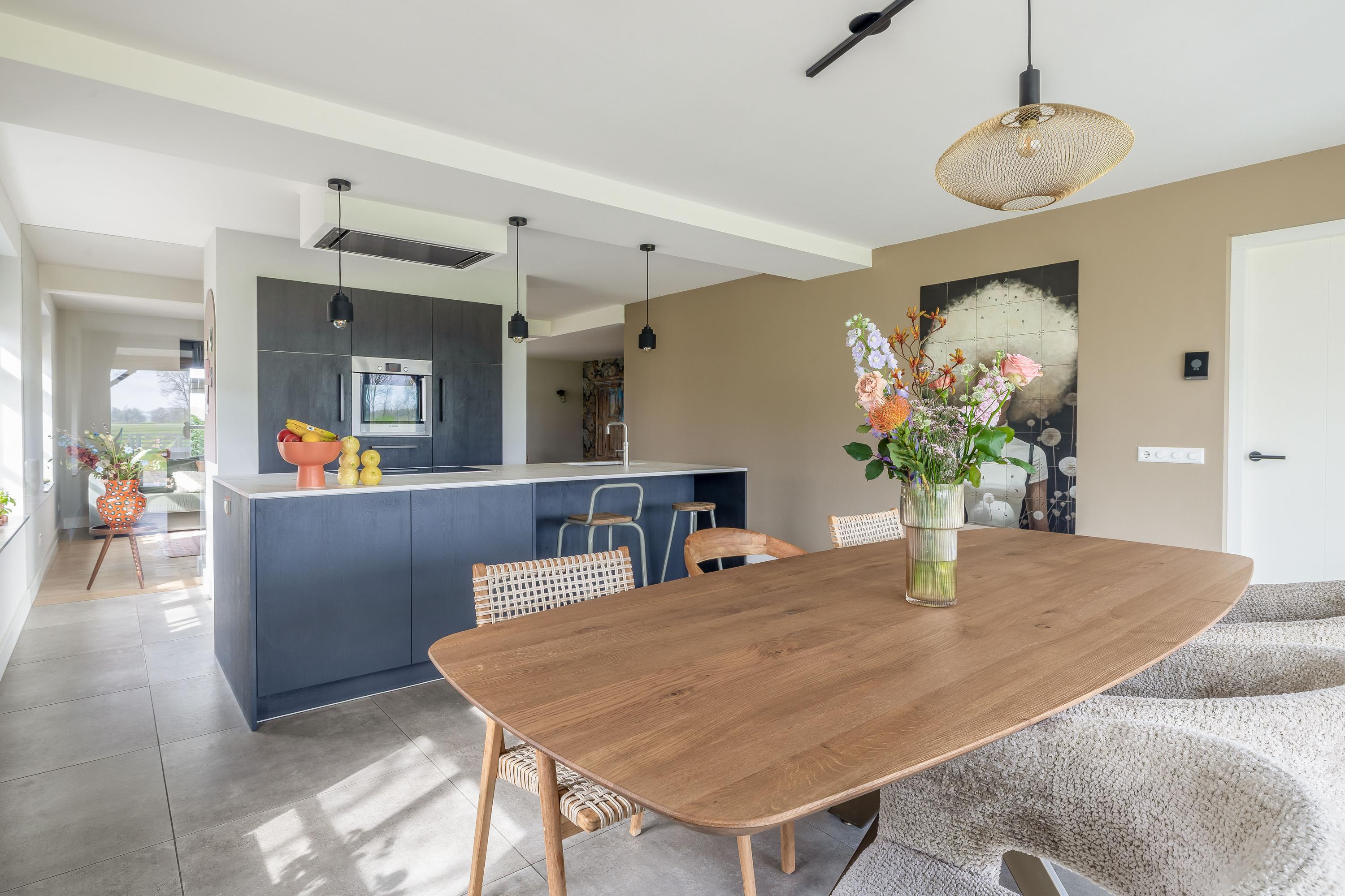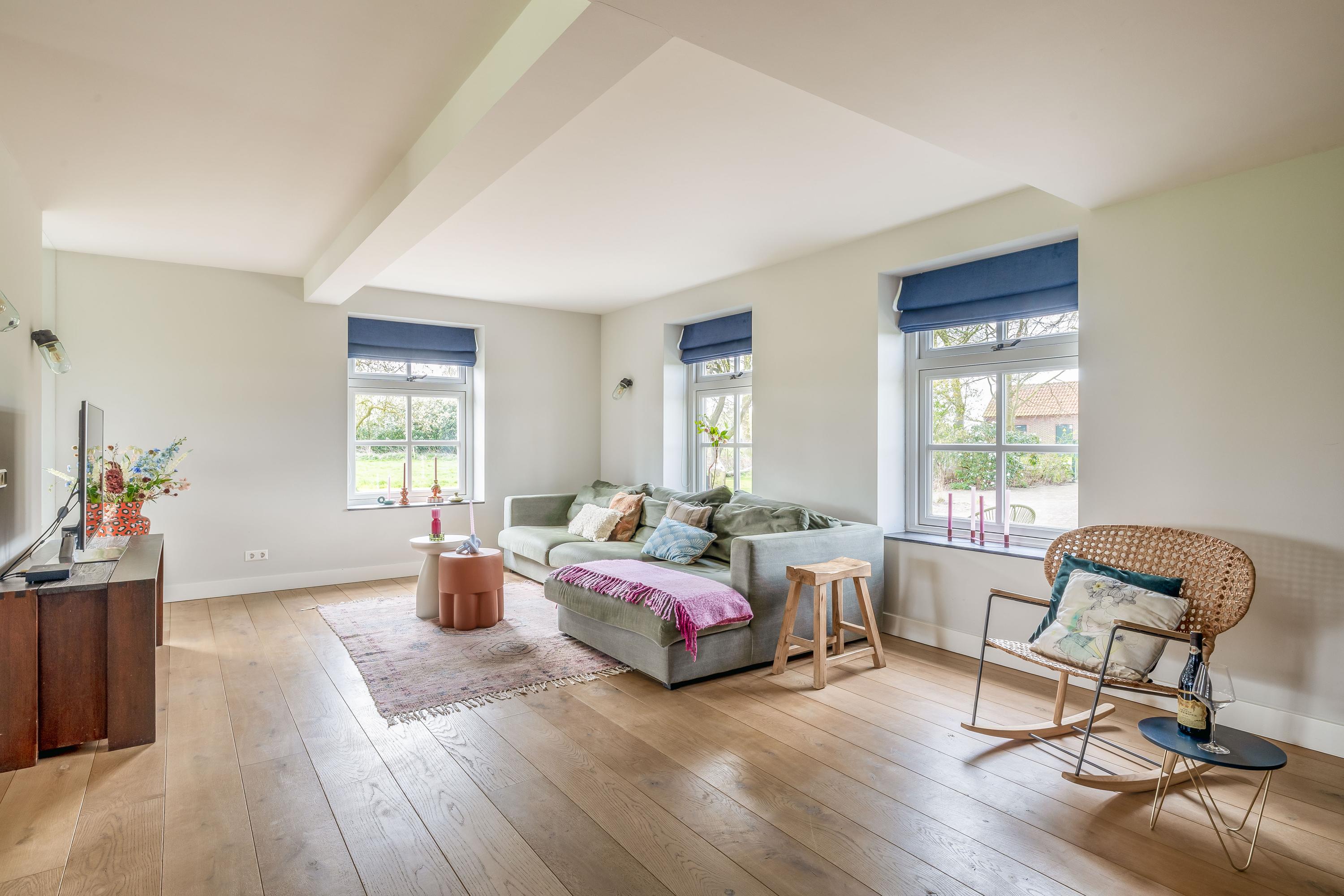 Met een woonoppervlakte van ca. 226 m² biedt de woning een comfortabel en instapklaar woonniveau. De leefruimtes zijn ruim en licht opgezet en sluiten logisch op elkaar aan. De indeling is doordacht, met onder meer een leefkeuken en een slaapkamer op de begane grond. Op de verdieping bevinden zich drie royale slaapkamers en een moderne badkamer, waarbij zichtbare houten constructies bijdragen aan de sfeer en authentieke uitstraling van het geheel.