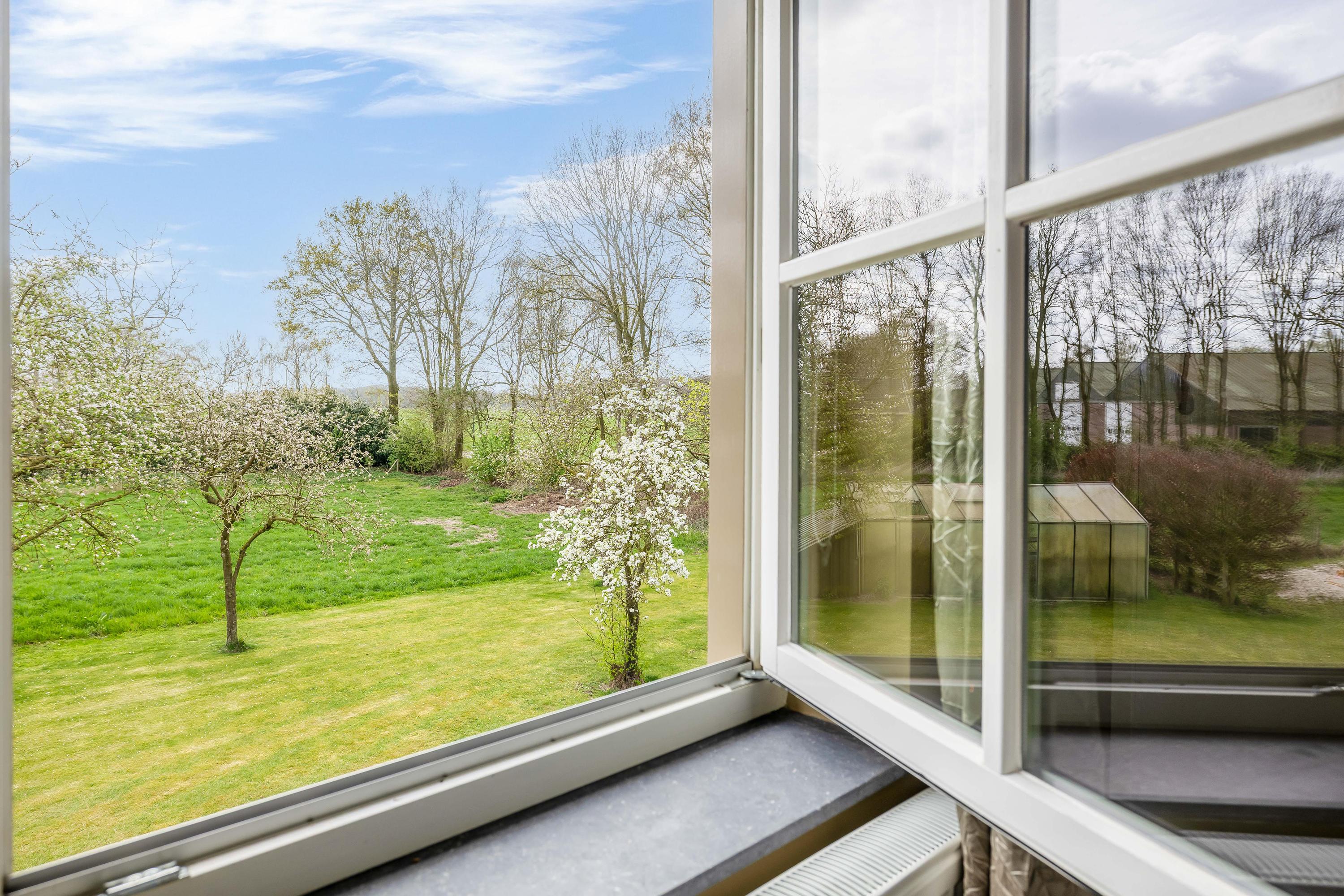 Voor liefhebbers van het buitenleven vormt het perceel een essentieel onderdeel van de beleving. De tuin rondom de woning beschikt over een overdekt terras, een royaal gazon en een boomgaard met diverse fruitbomen. Het aangrenzende weiland maakt deze locatie bovendien bijzonder geschikt voor het houden van (hobby)dieren. Een deel van het perceel is landschappelijk ingericht met bomenrijen en natuurlijke beplanting, wat bijdraagt aan de kwaliteit en biodiversiteit van het geheel. Voor dit deel is landschapsbeheer van toepassing (STILA-regeling, tot en met oktober 2027, met subsidie).