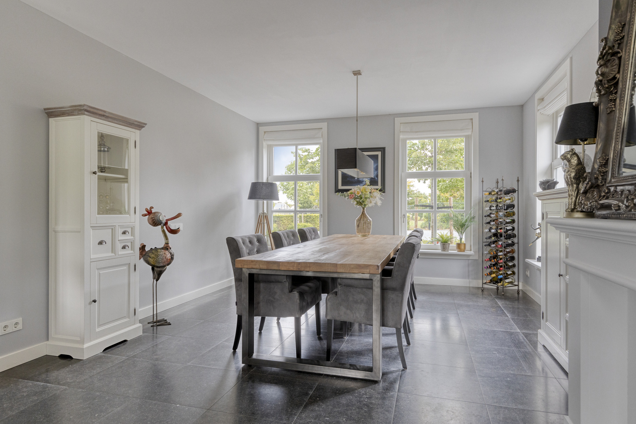 Het buitenleven is goed verzorgd. De tuin is fraai aangelegd en uitstekend onderhouden, met natuurstenen terrassen, veel groen en een automatische beregeningsinstallatie. De zonnige ligging, de dubbele garage met gepolijste en gecoate betonvloer en de royale oprit – bereikbaar via een tweedelige elektrische toegangspoort die klasse en kwaliteit uitstraalt. Prachtig uitzicht op landerijen en de molen van Wouw.