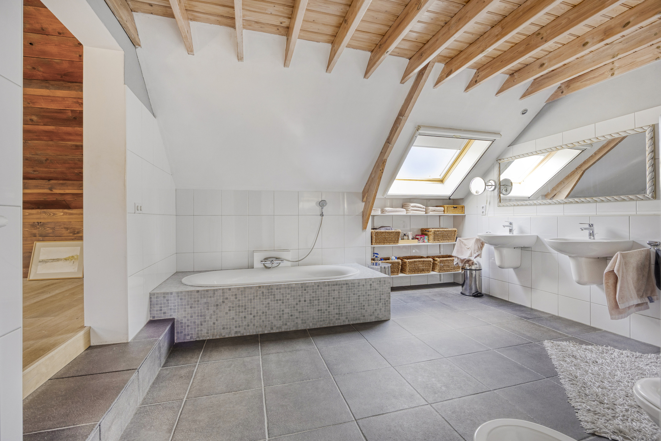 betegelde badkamer en-suite voorzien van een ligbad, douchecabine, 2e wandcloset, bidet, een dubbele wastafel en vloerverwarming als gestuurd vanuit de CV;